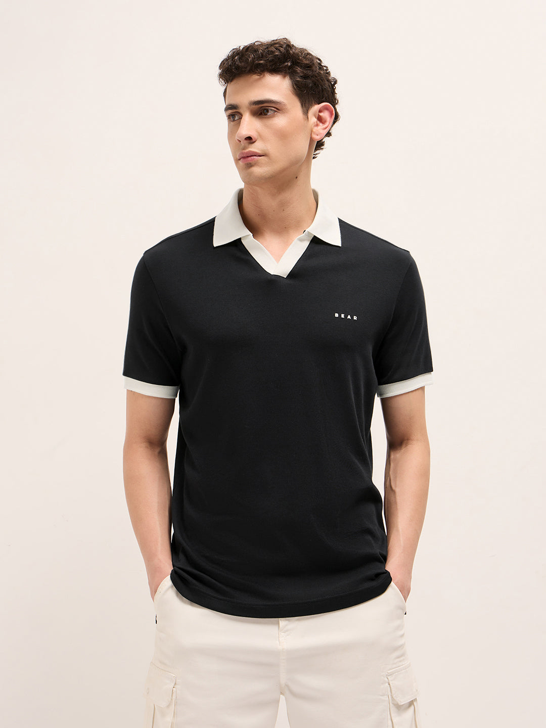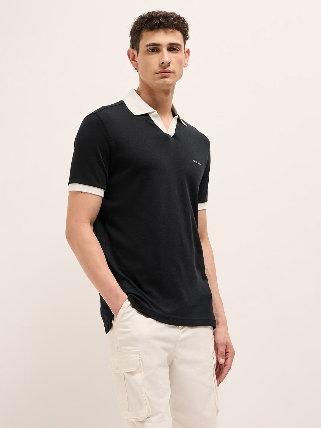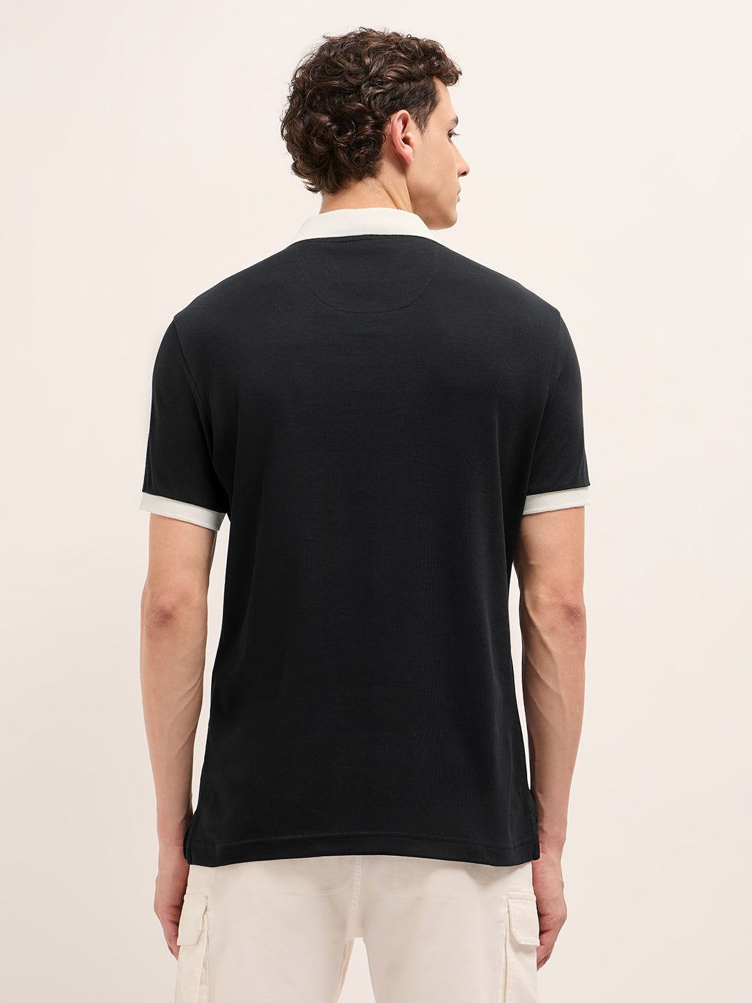 Black Solid Regular Fit Polo with Contrast Collar