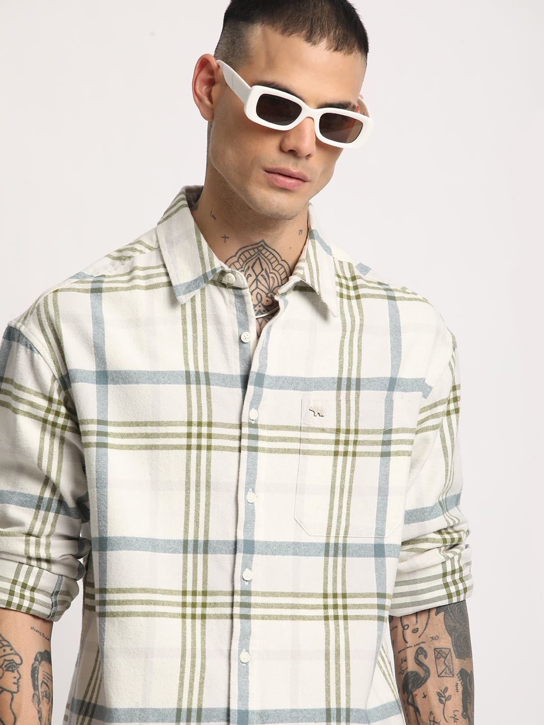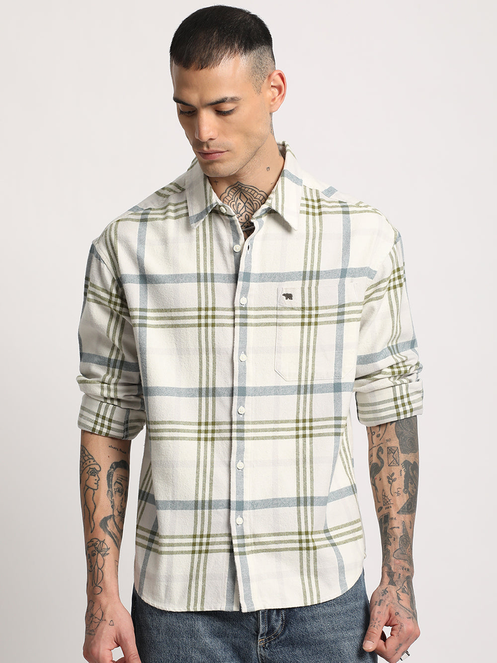 Men White Checked Relaxed Fit Cotton Casual Shirt