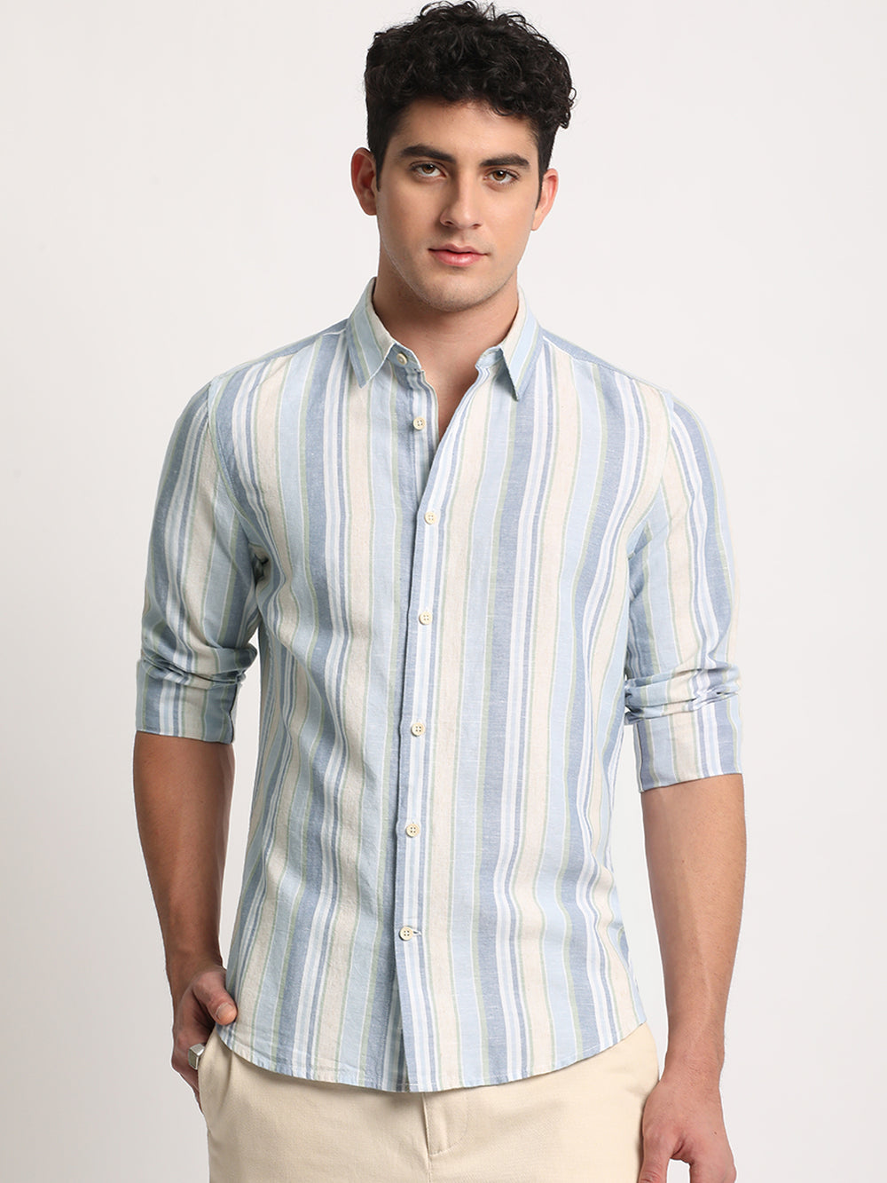 Men Multi Striped Slim Fit Cotton Linen Casual Shirt