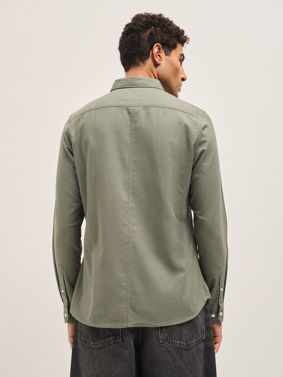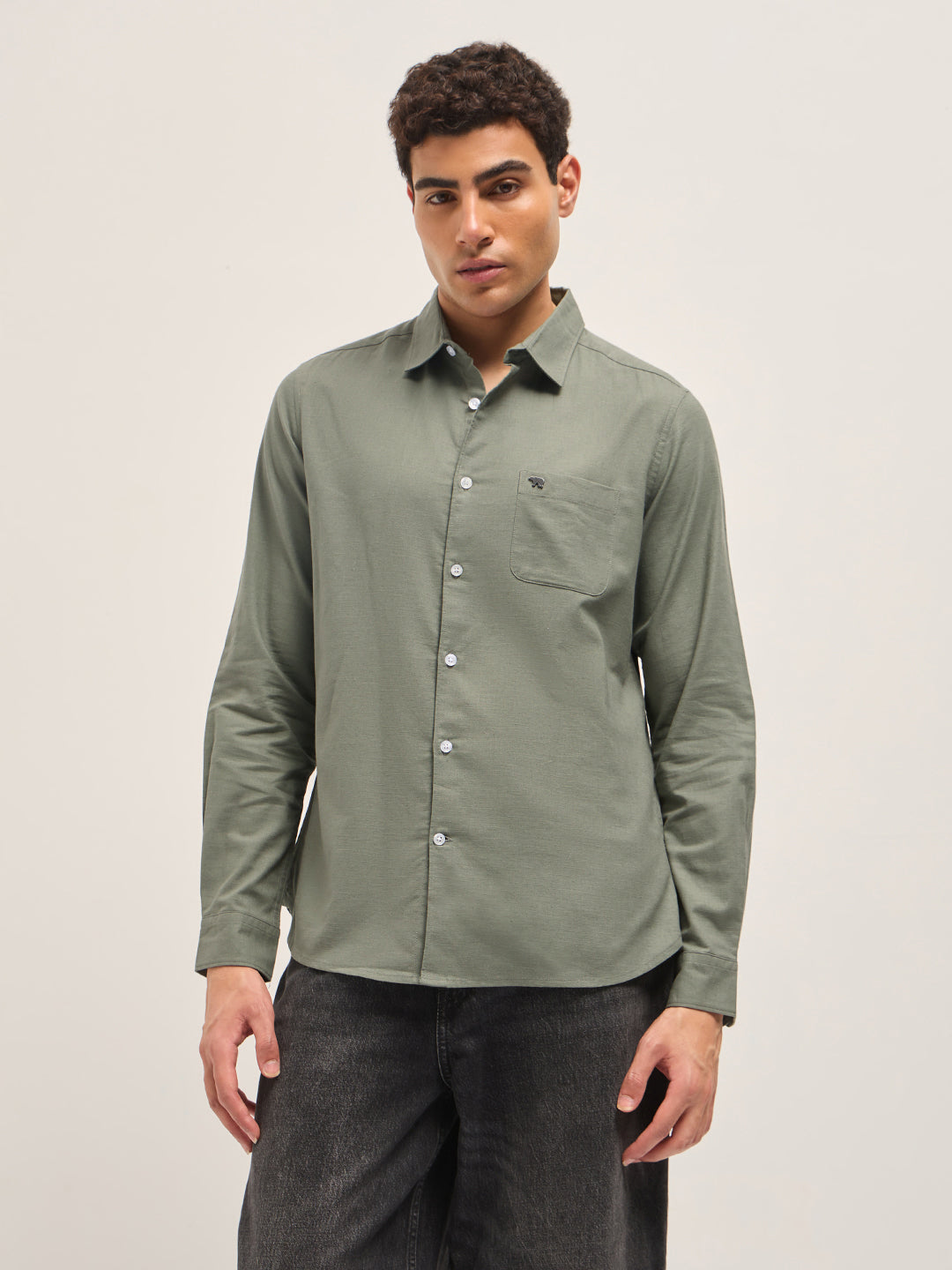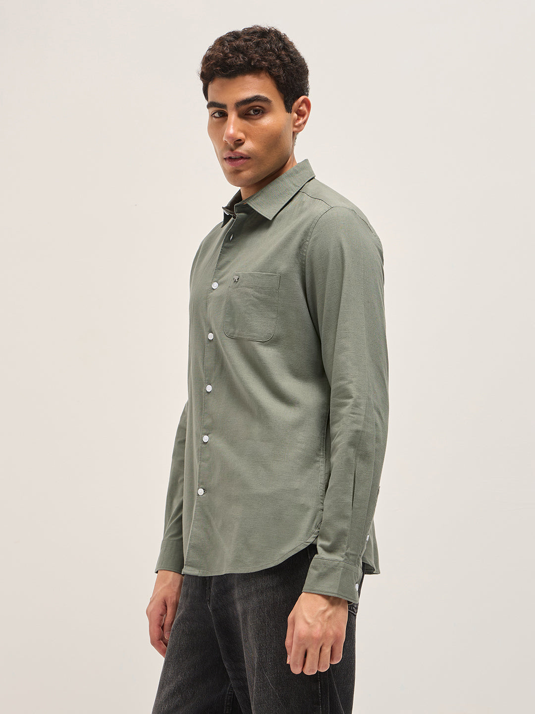 Shop Olive Cotton Linen Slim Fit Solid Casual Shirt Online.