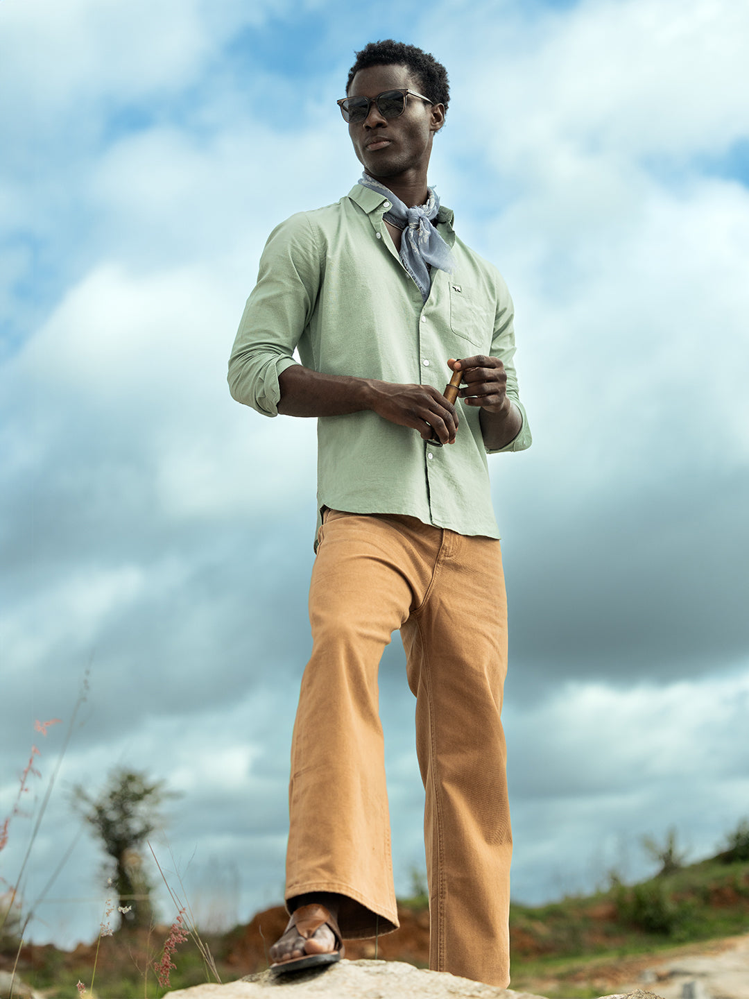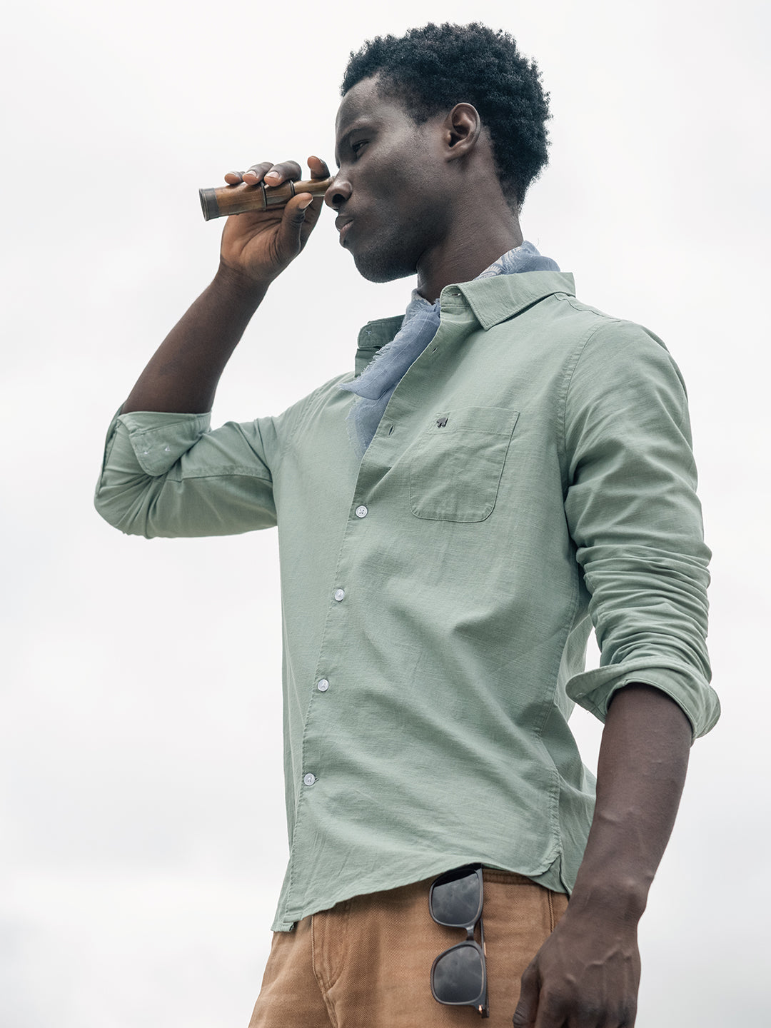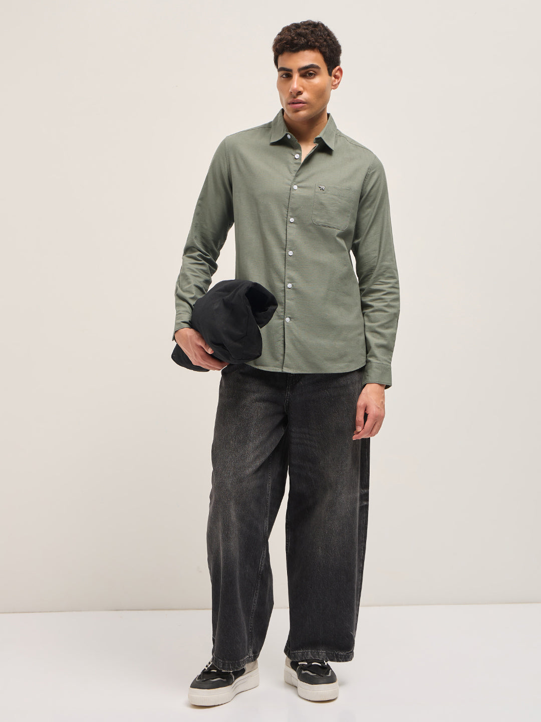 Shop Olive Cotton Linen Slim Fit Solid Casual Shirt Online.