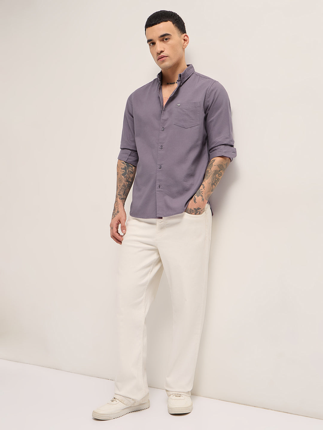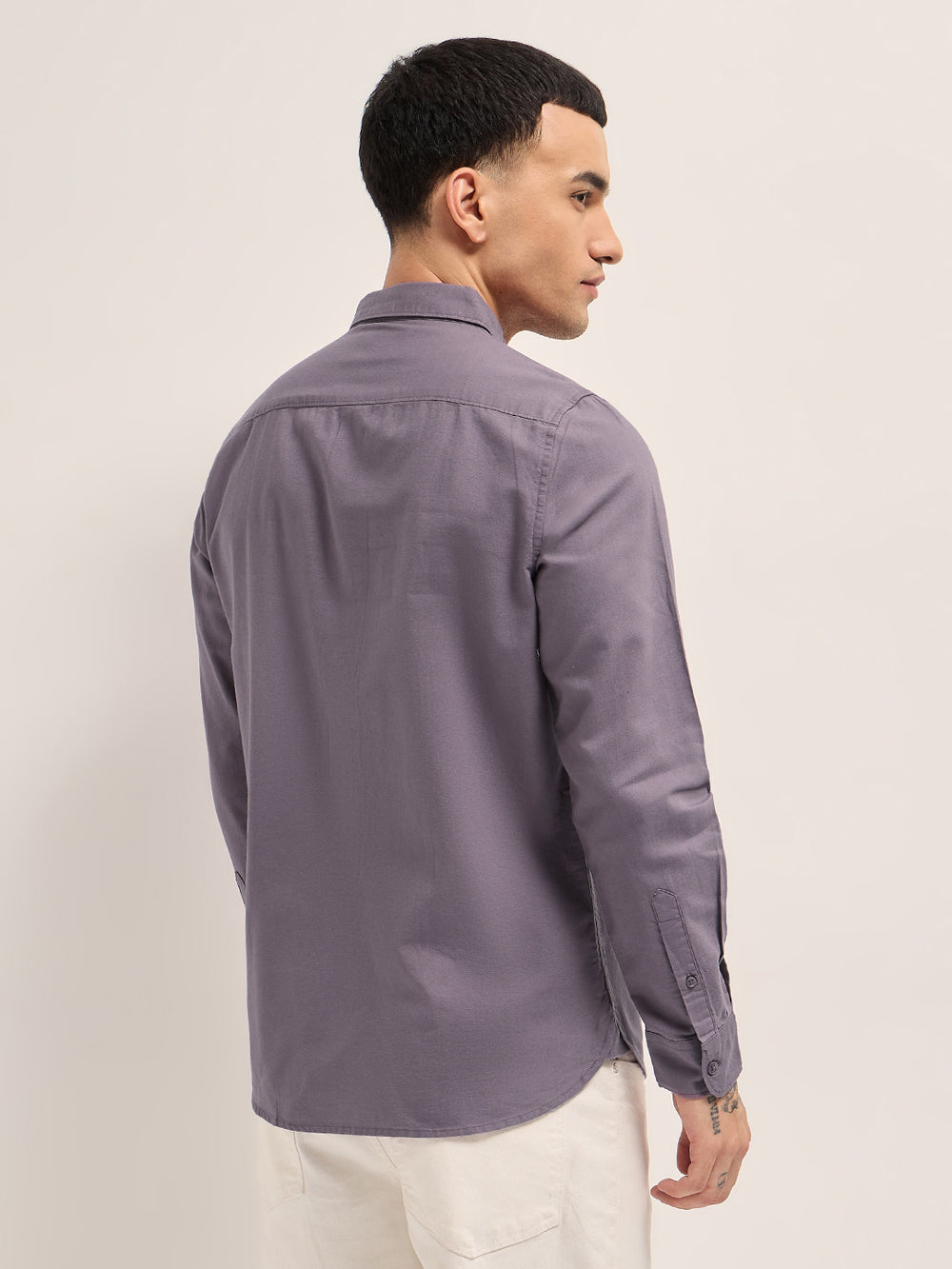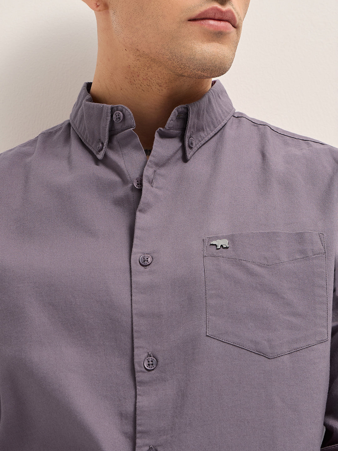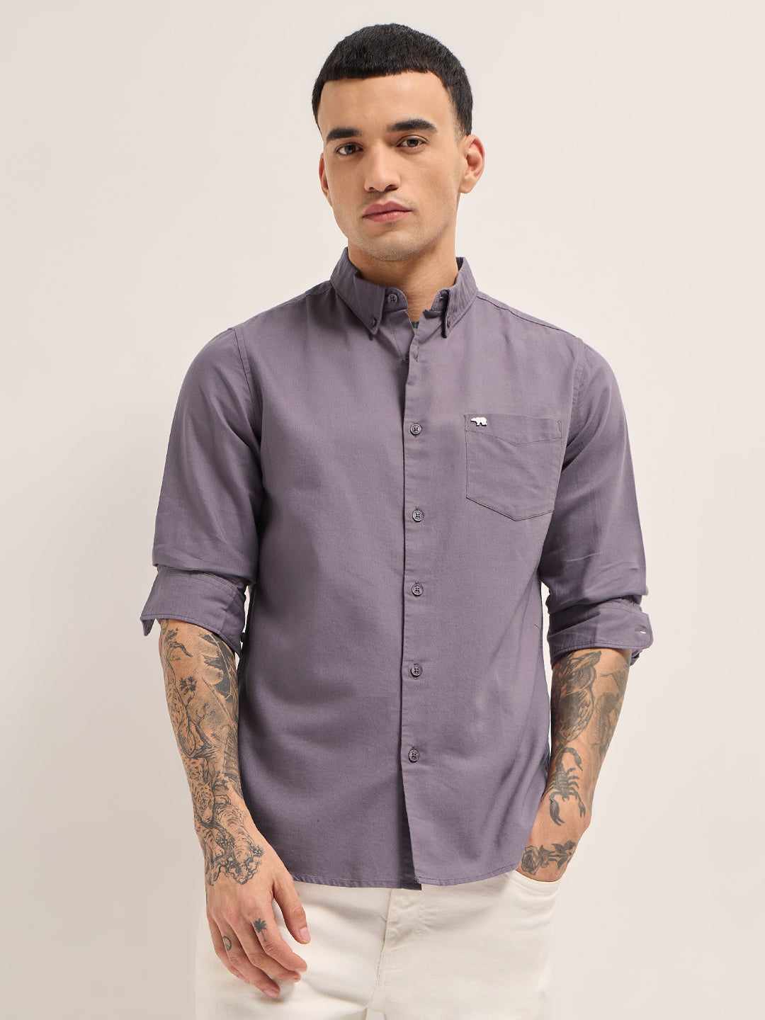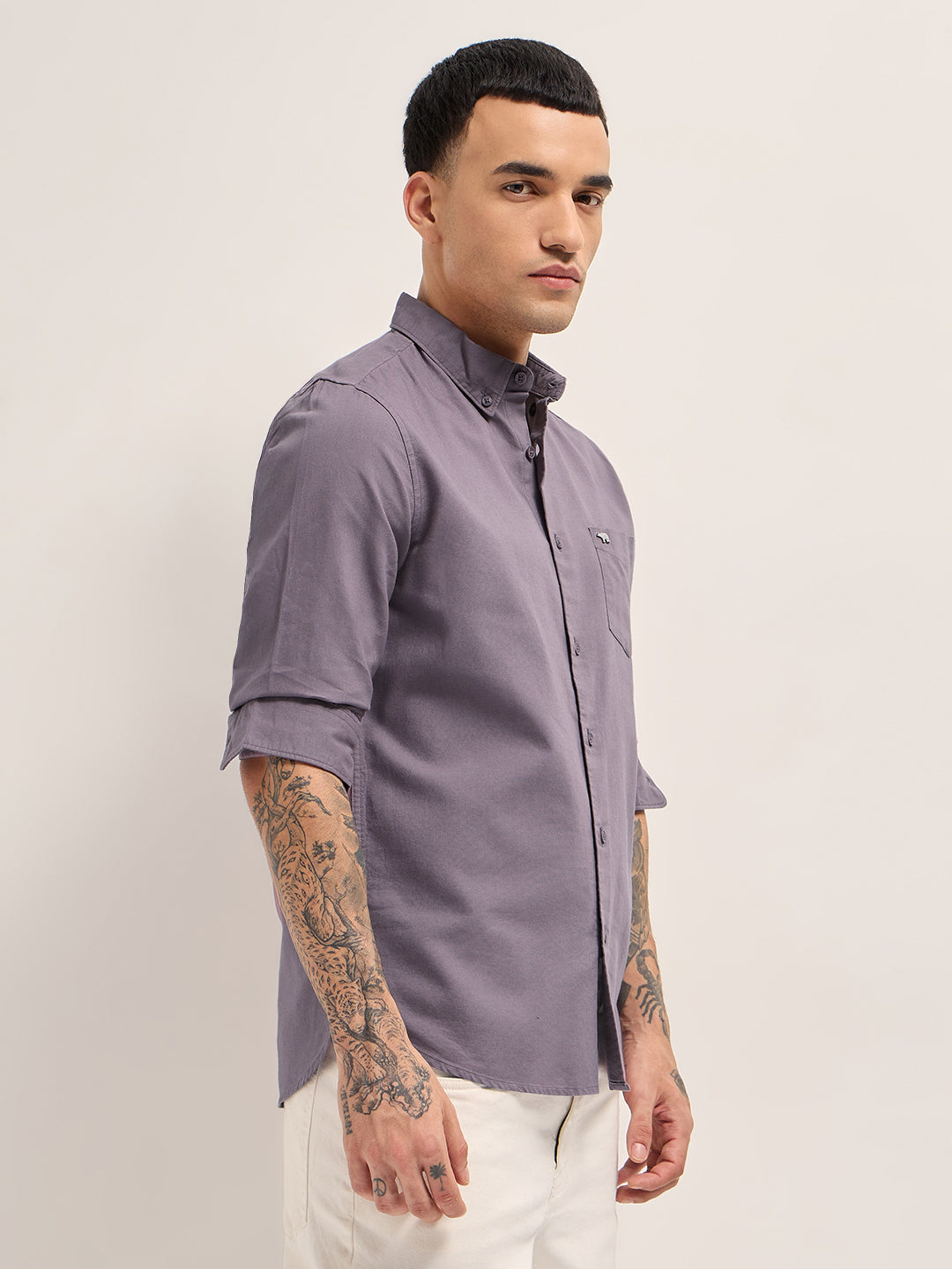 Purple Solid Slim Fit Casual Shirt with Button-Down Collar