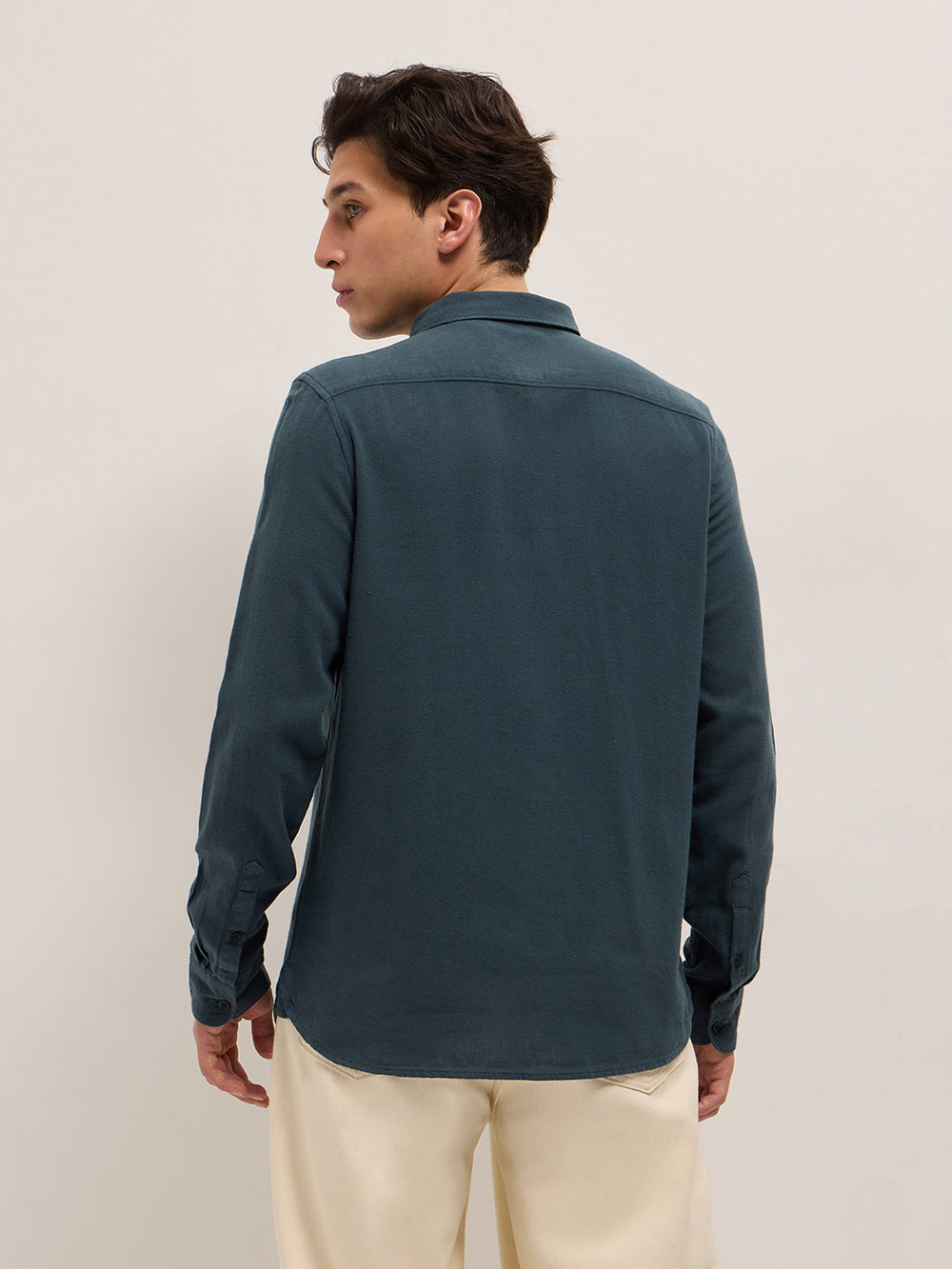 Teal Blue Cotton Solid Slim Fit Casual Shirt