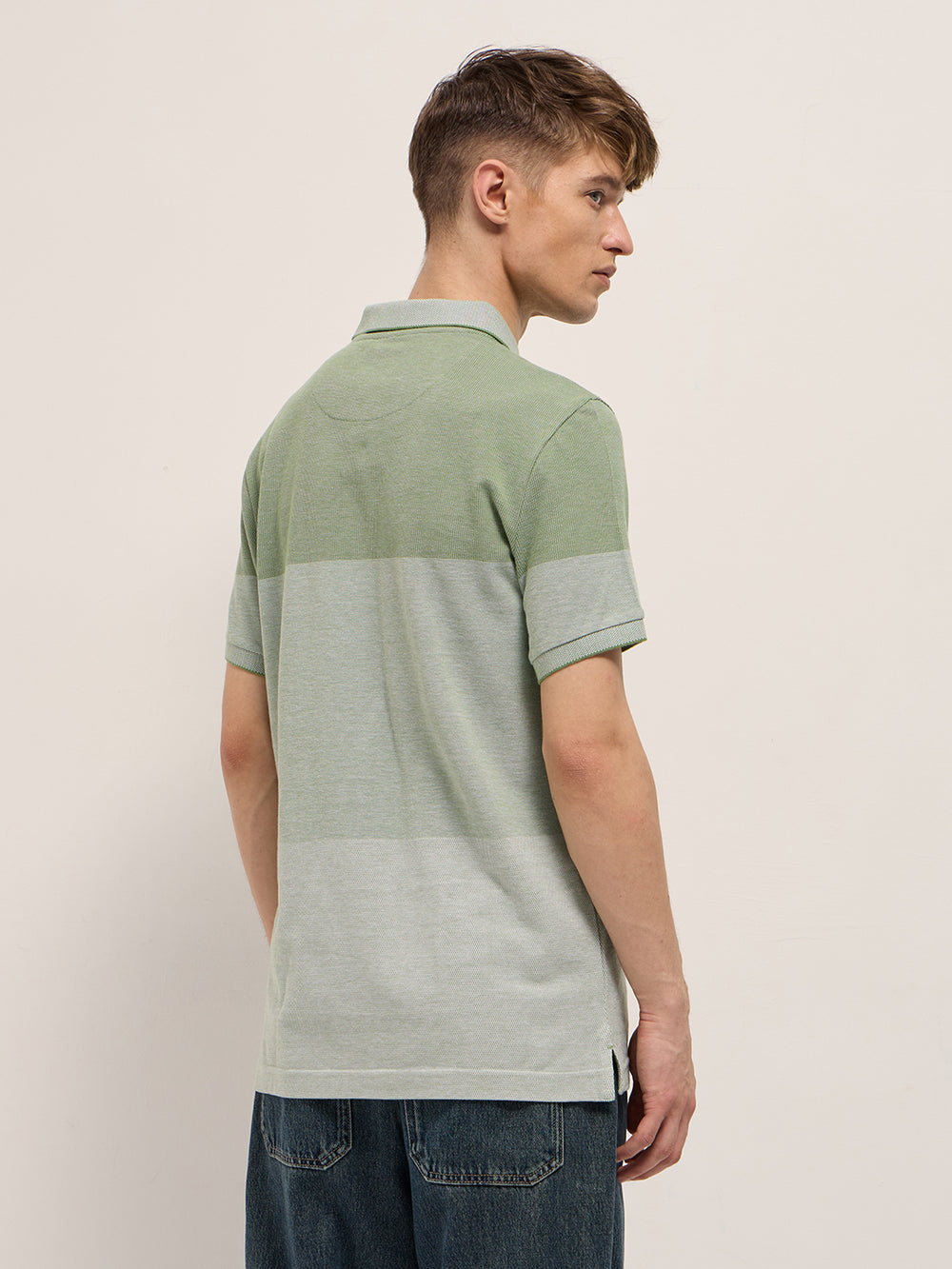- Pattern: Tonal color-block pattern with horizontal paneling