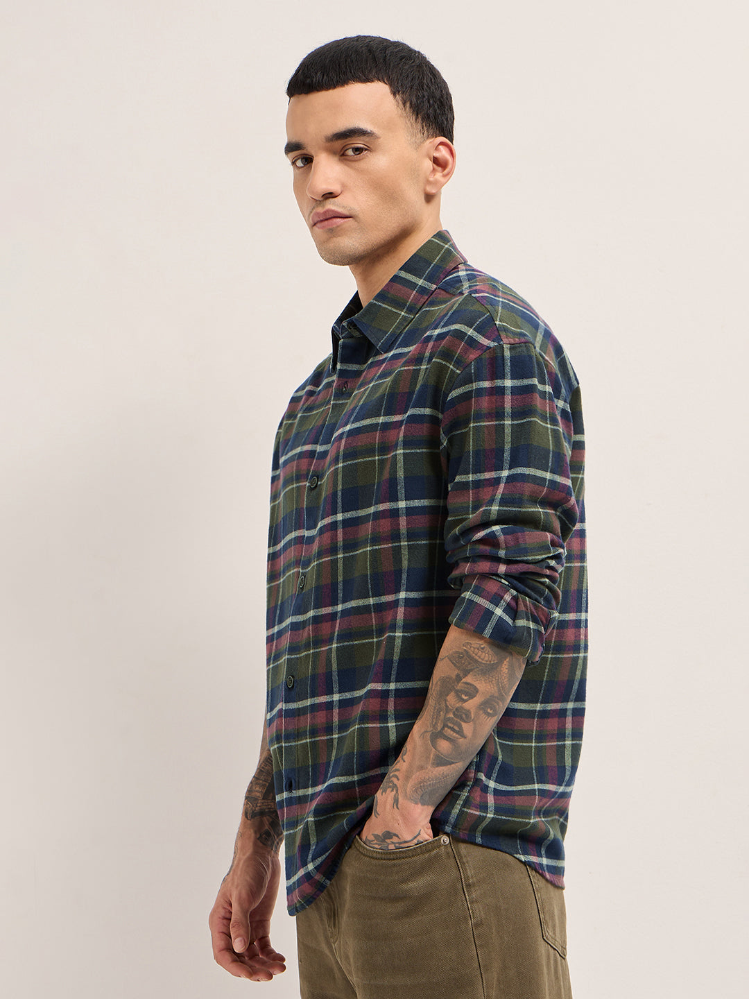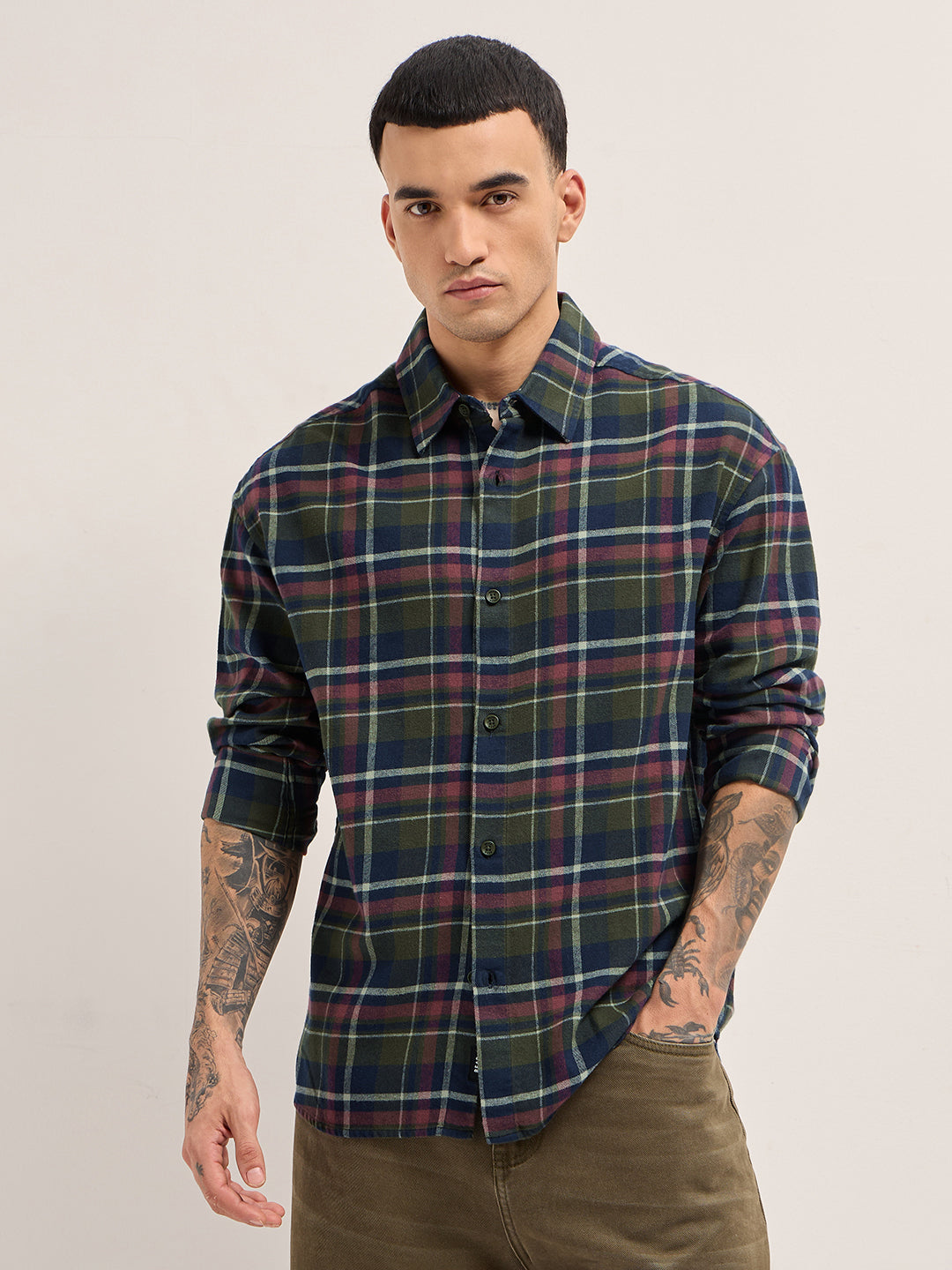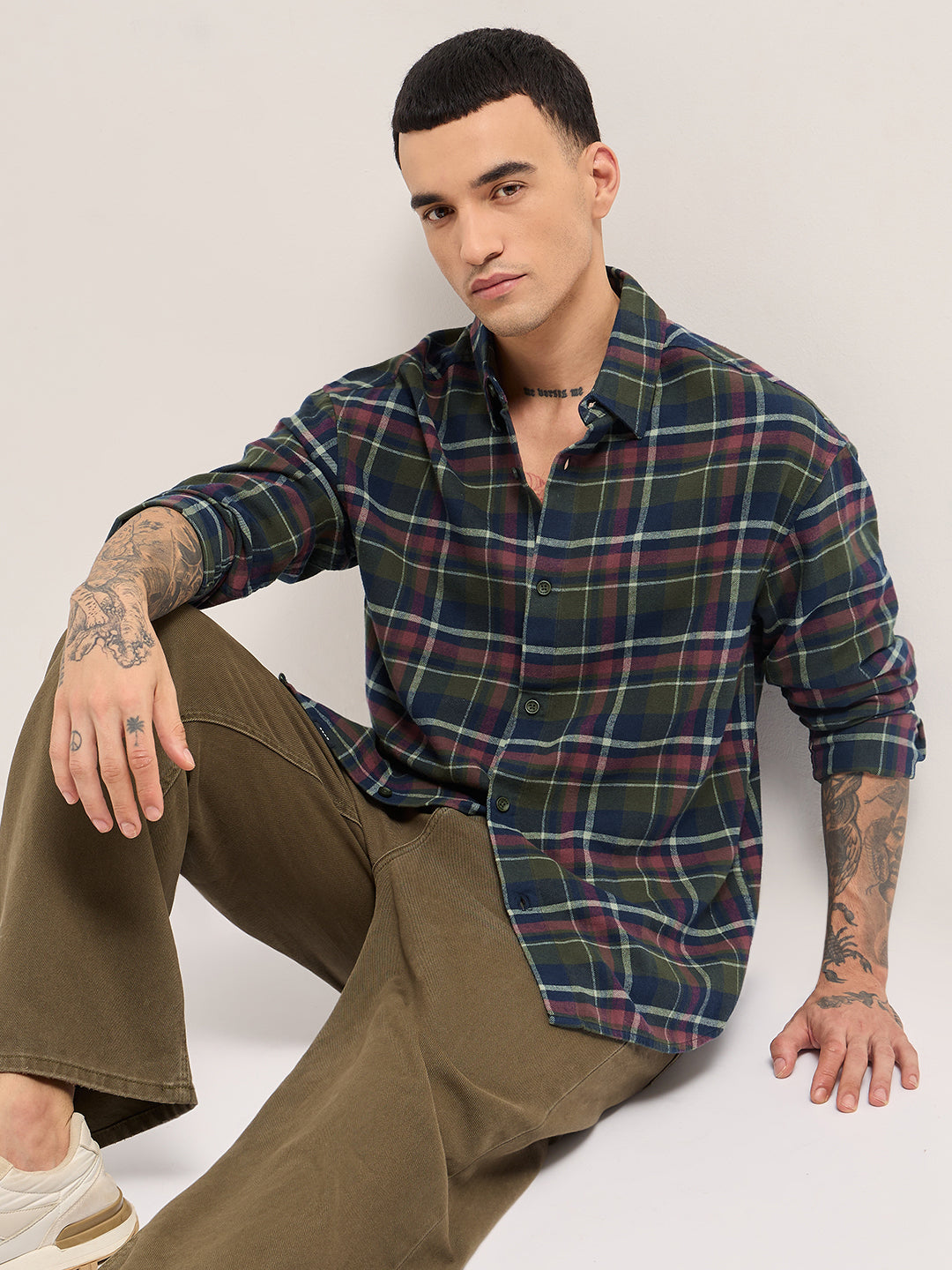 Multicolor Tartan Check Relaxed Fit Overshirt
