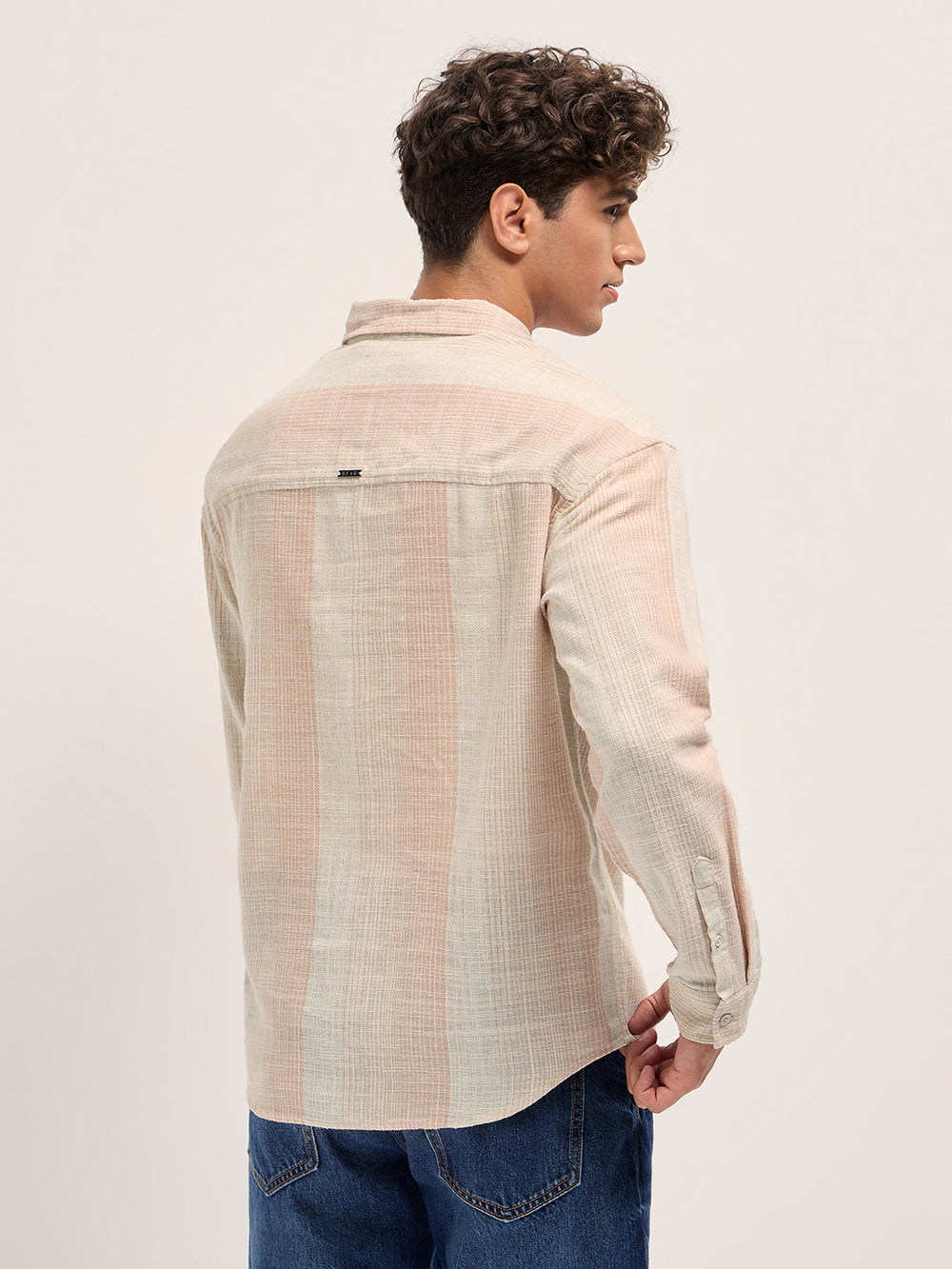 Peach Relaxed Fit Overshirt with Woven Pinstripe Design