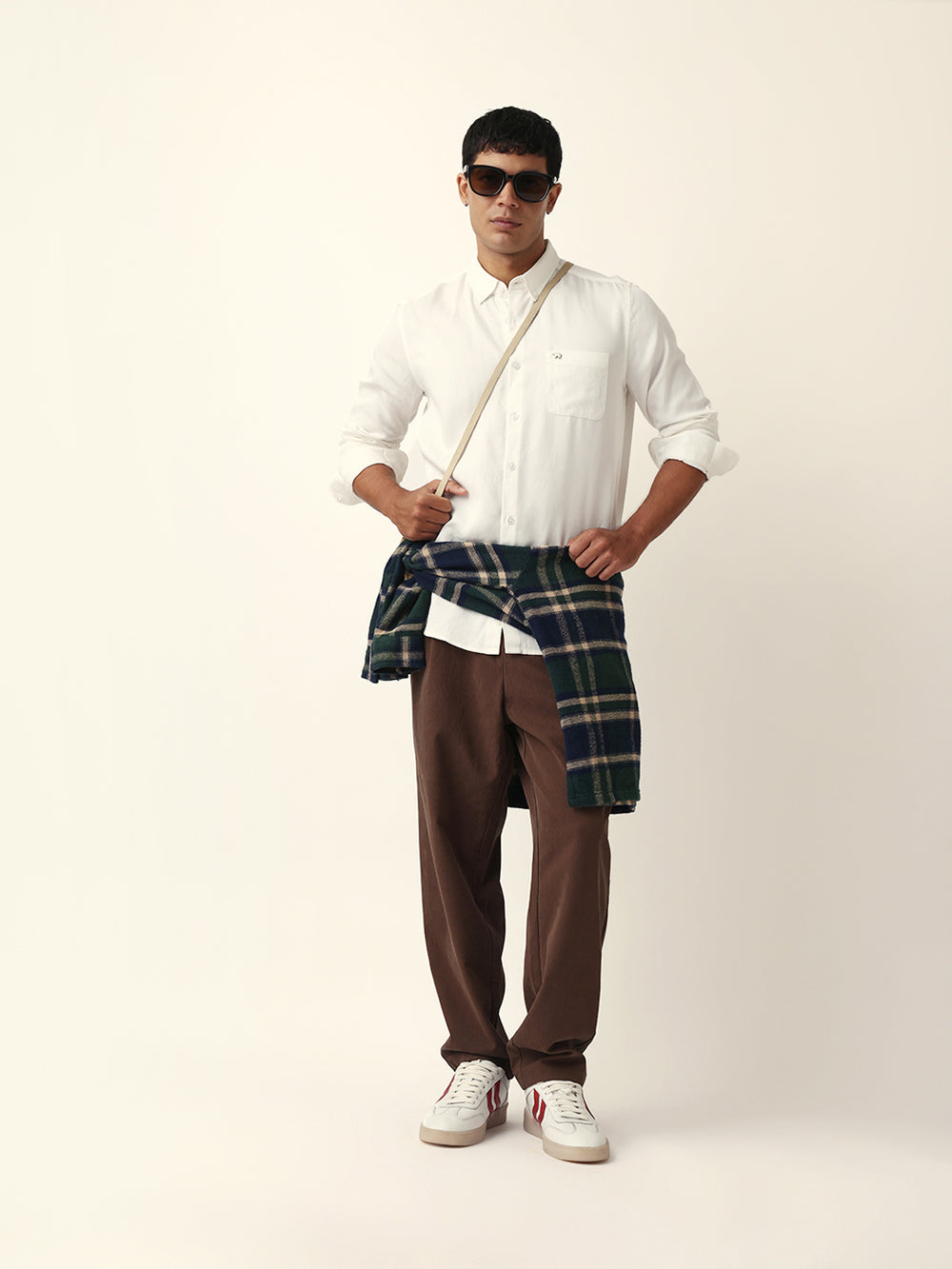 Shop White Solid Slim-Fit Casual Shirt with Button-Down Collar Online.