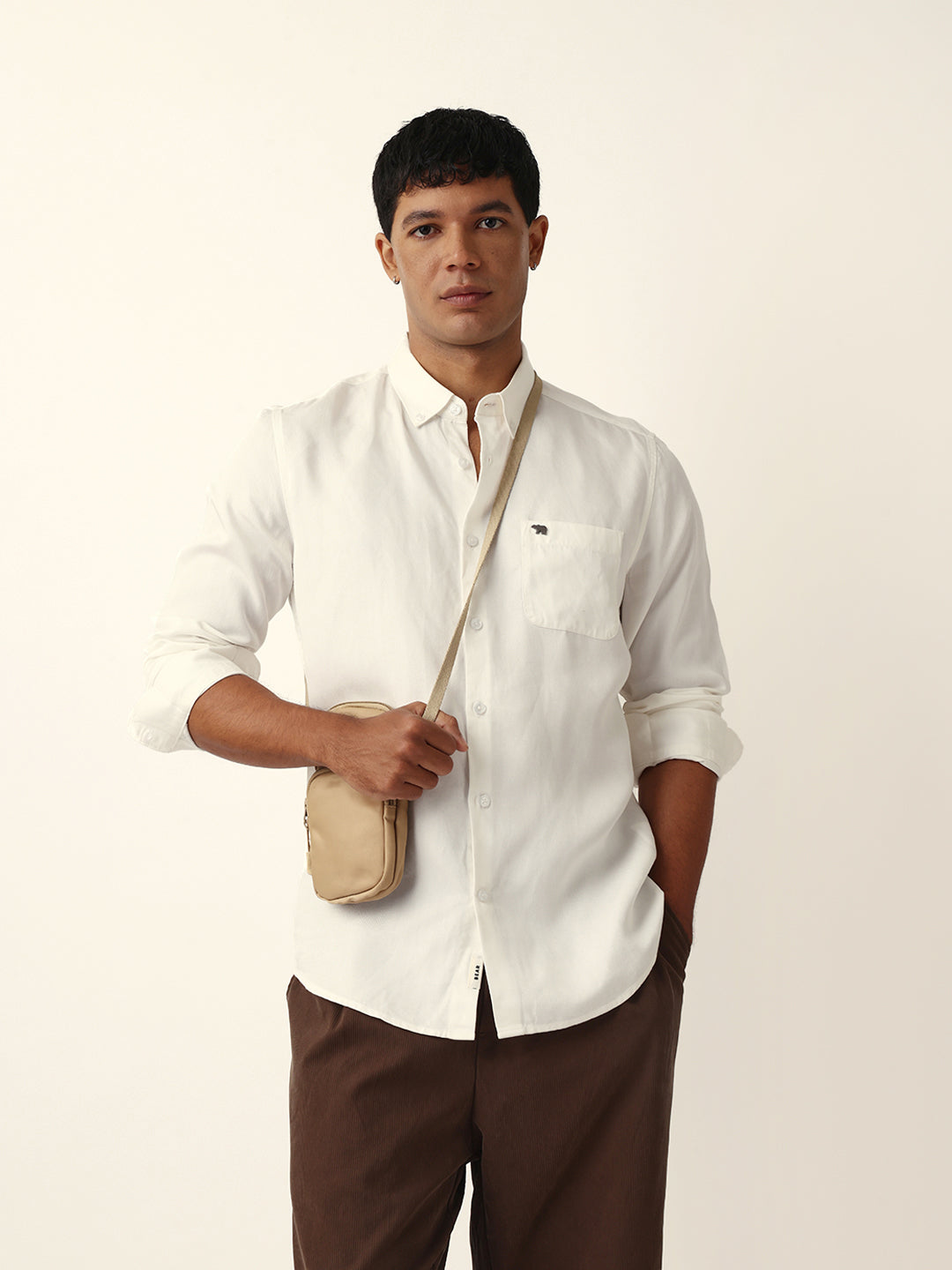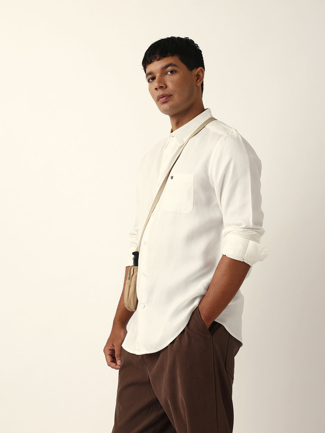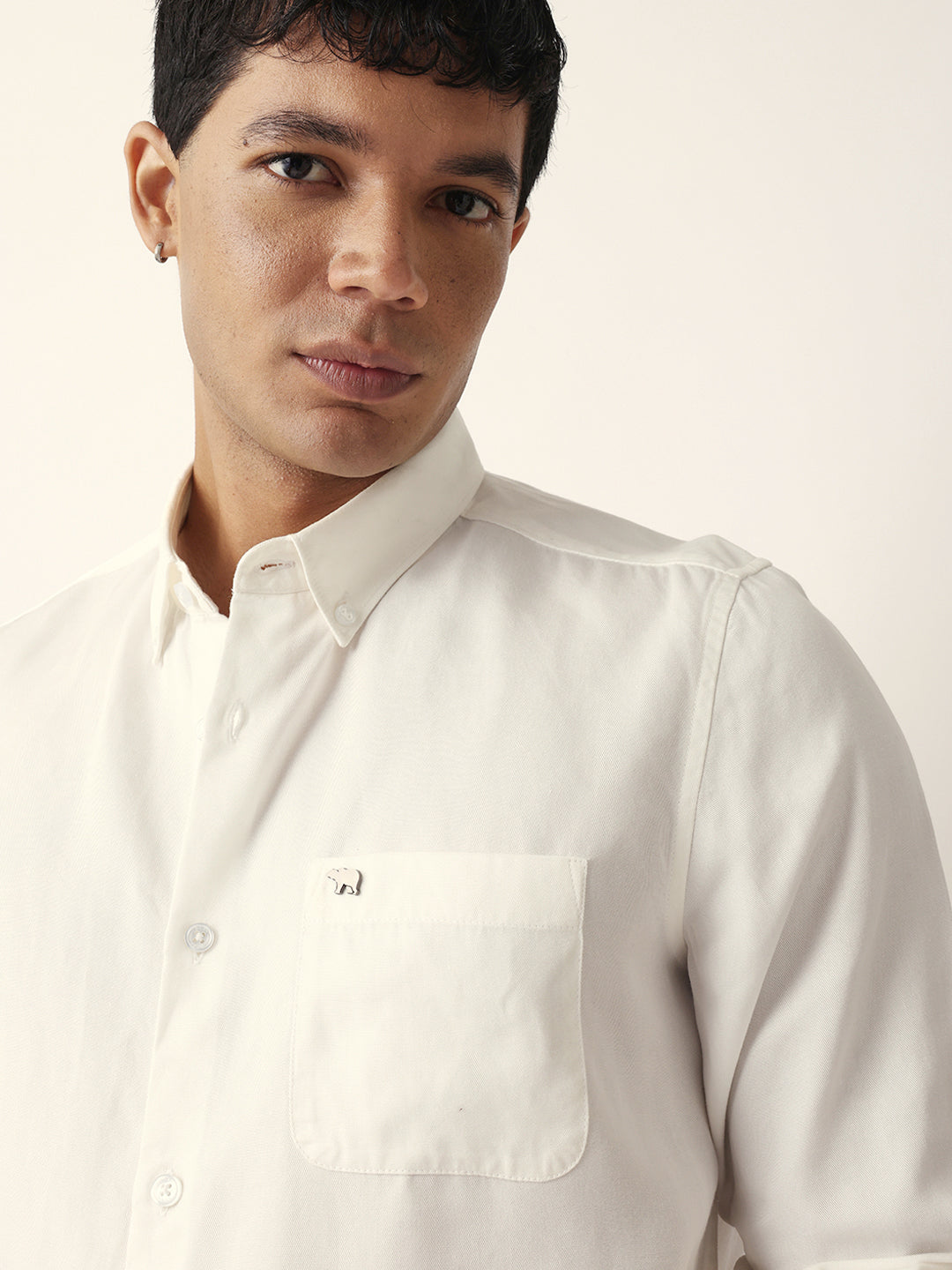 White Solid Slim-Fit Casual Shirt with Button-Down Collar