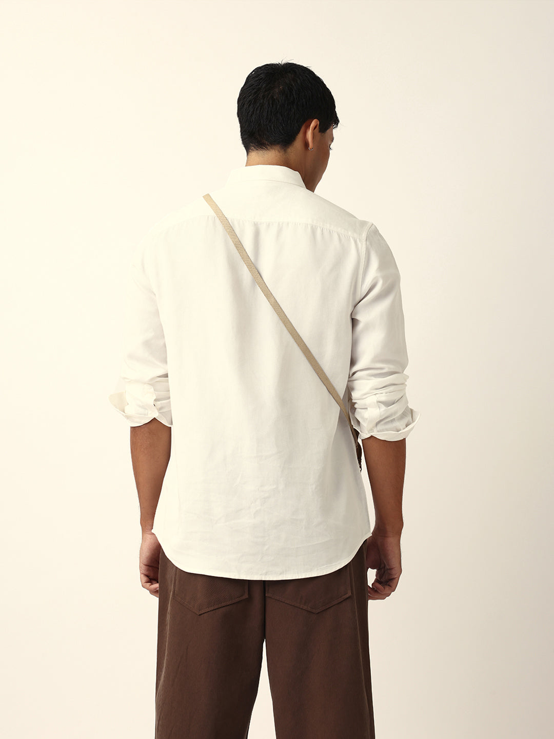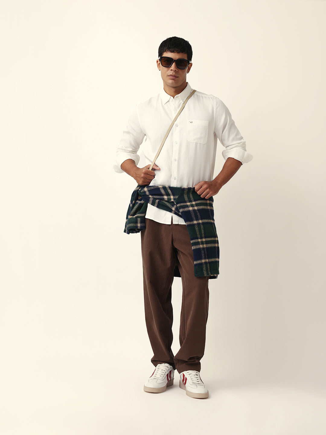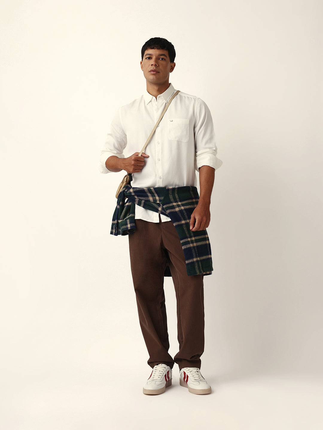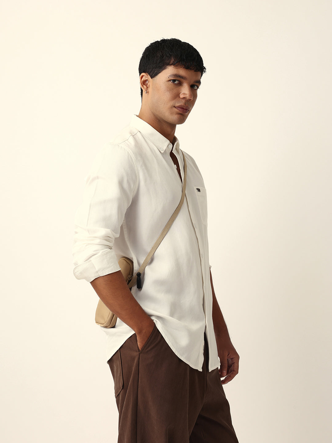White Solid Slim-Fit Casual Shirt with Button-Down Collar