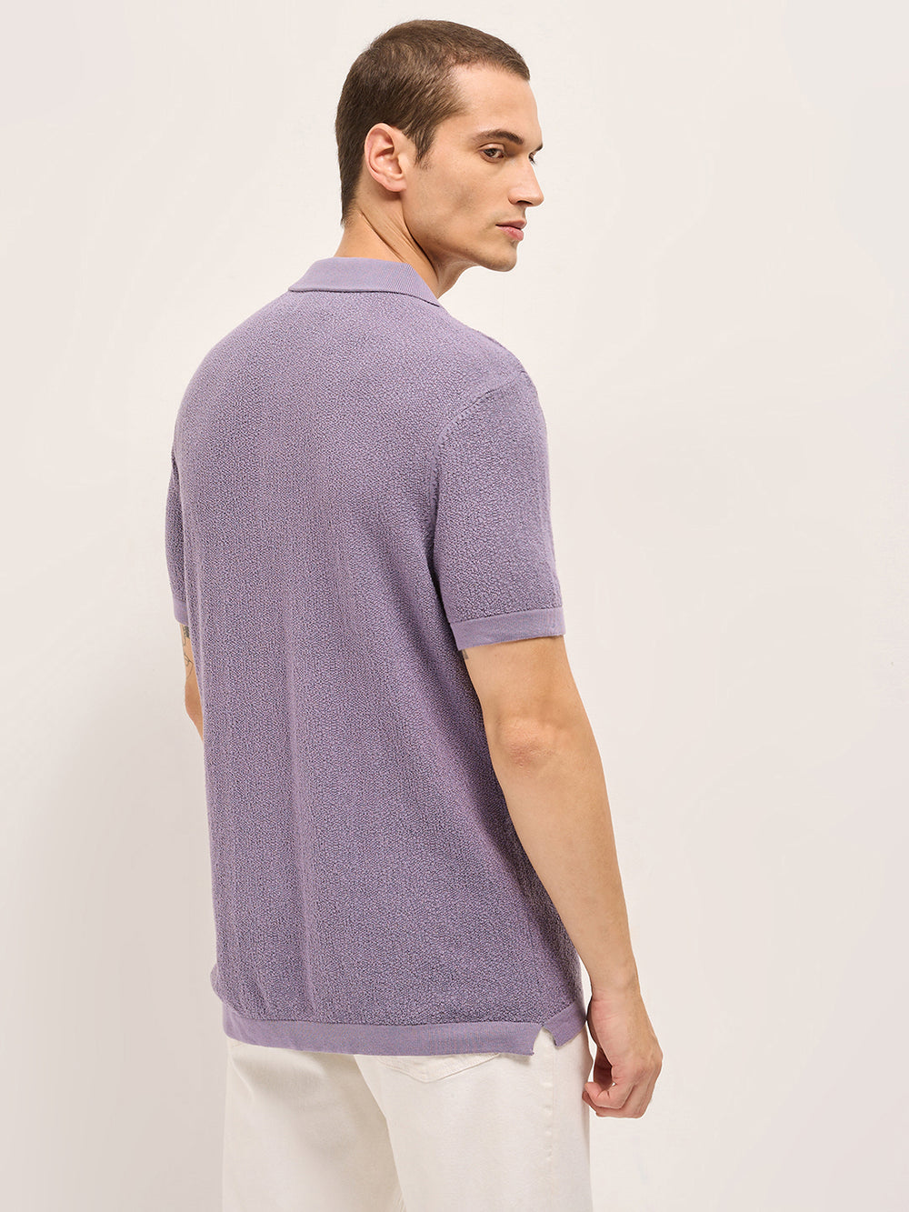 Beige Solid Texture Knit Design Regular Fit Polo