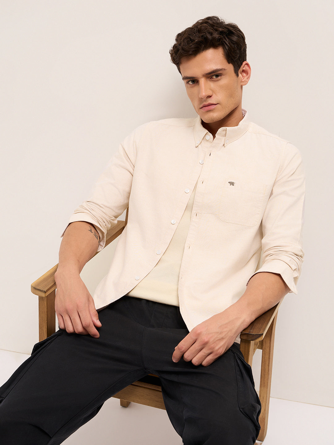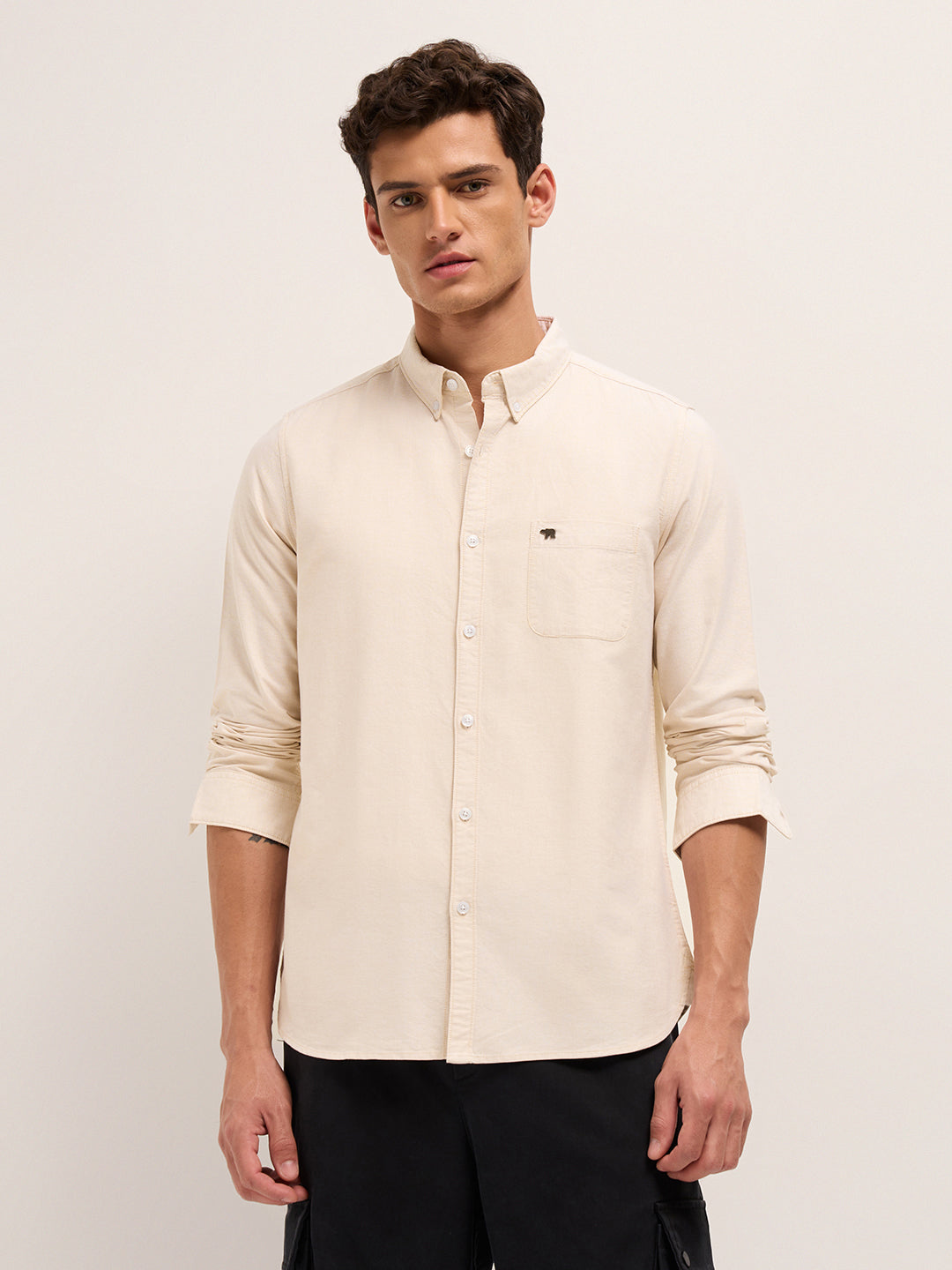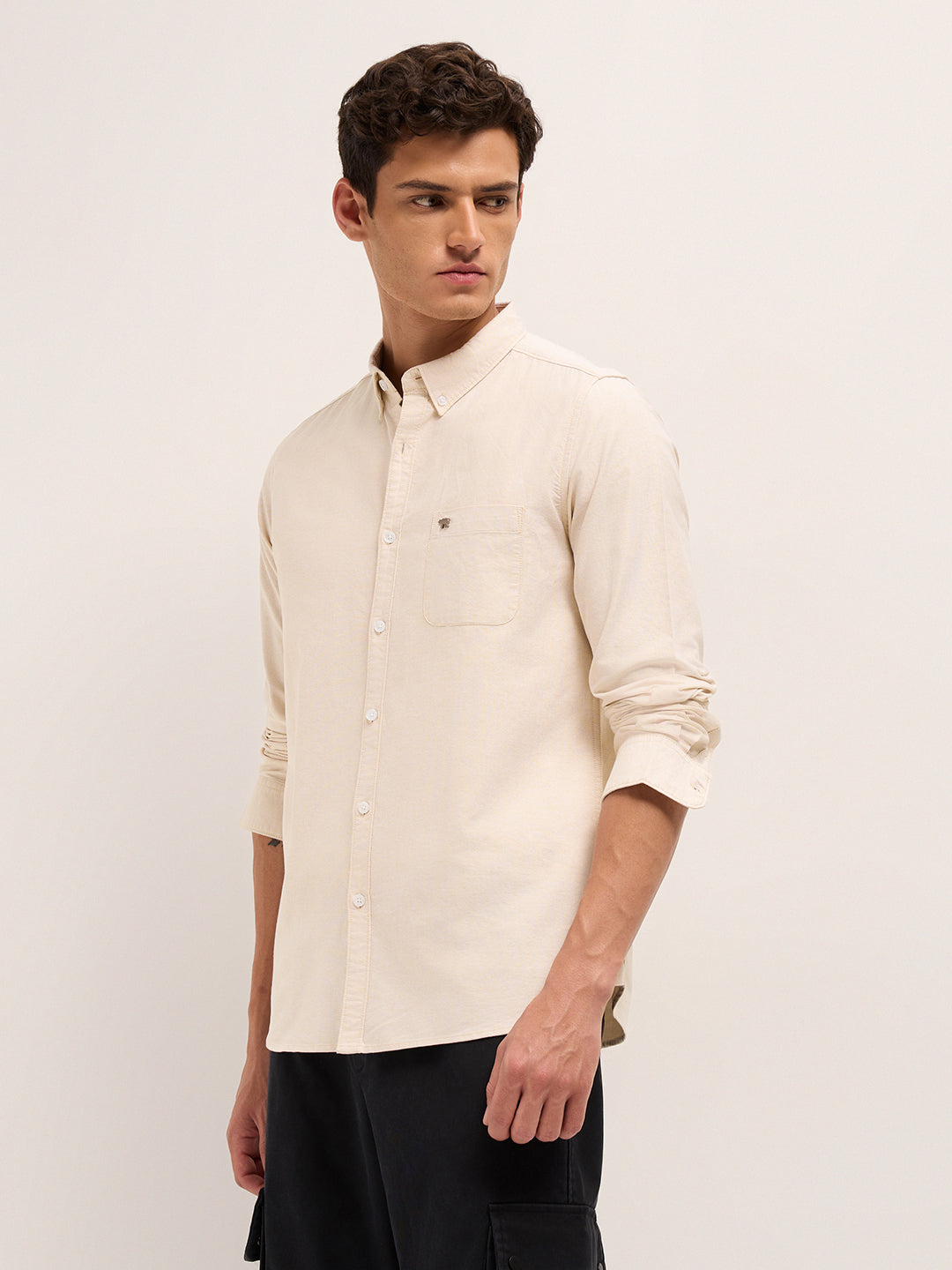 Shop Beige Solid Slim Fit Cotton Casual Shirt Online.