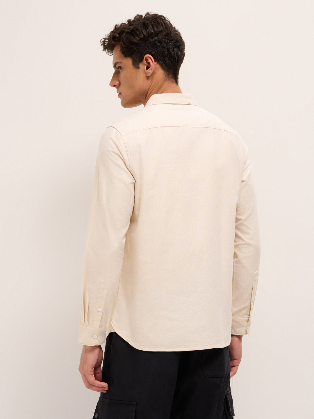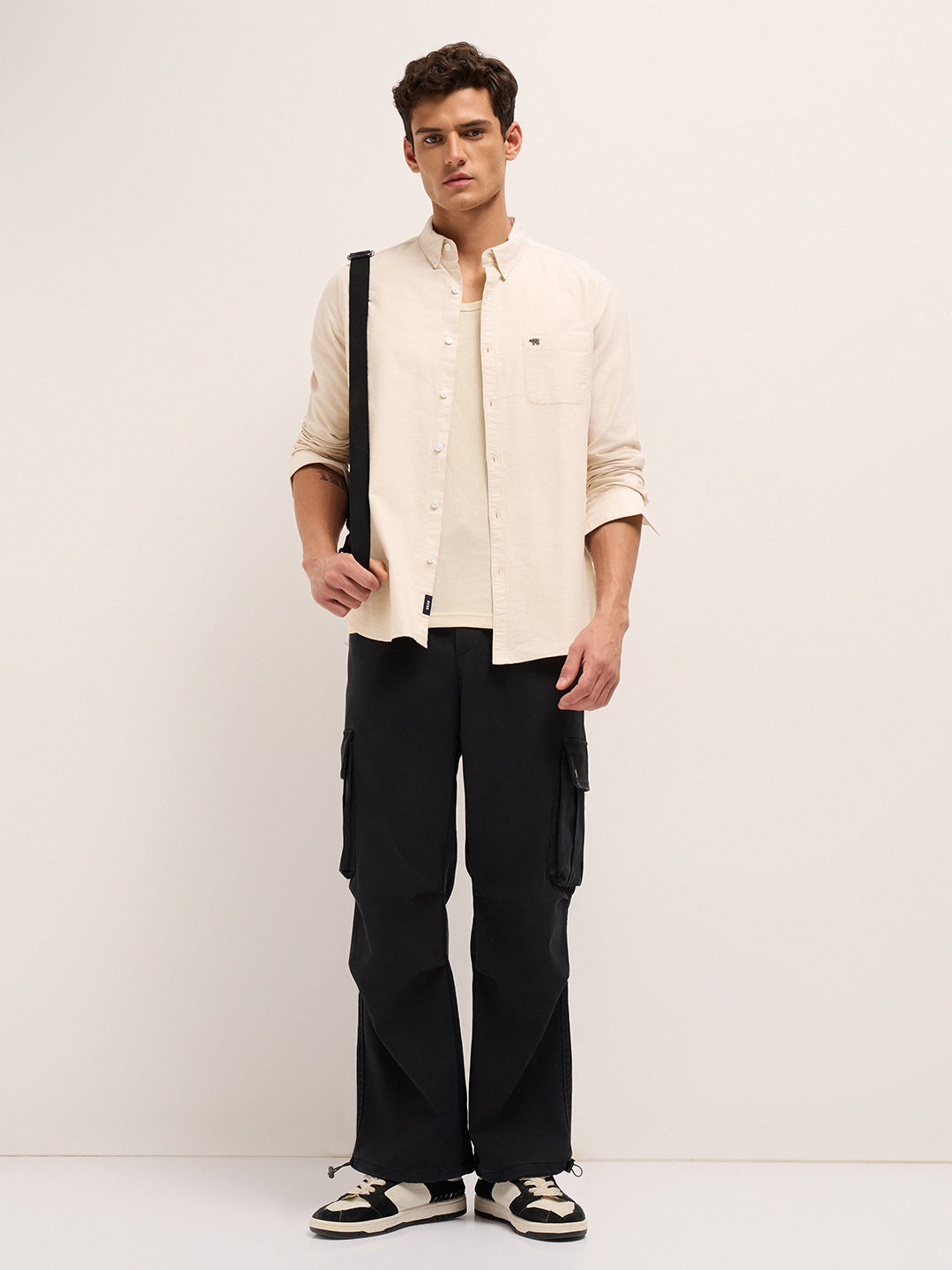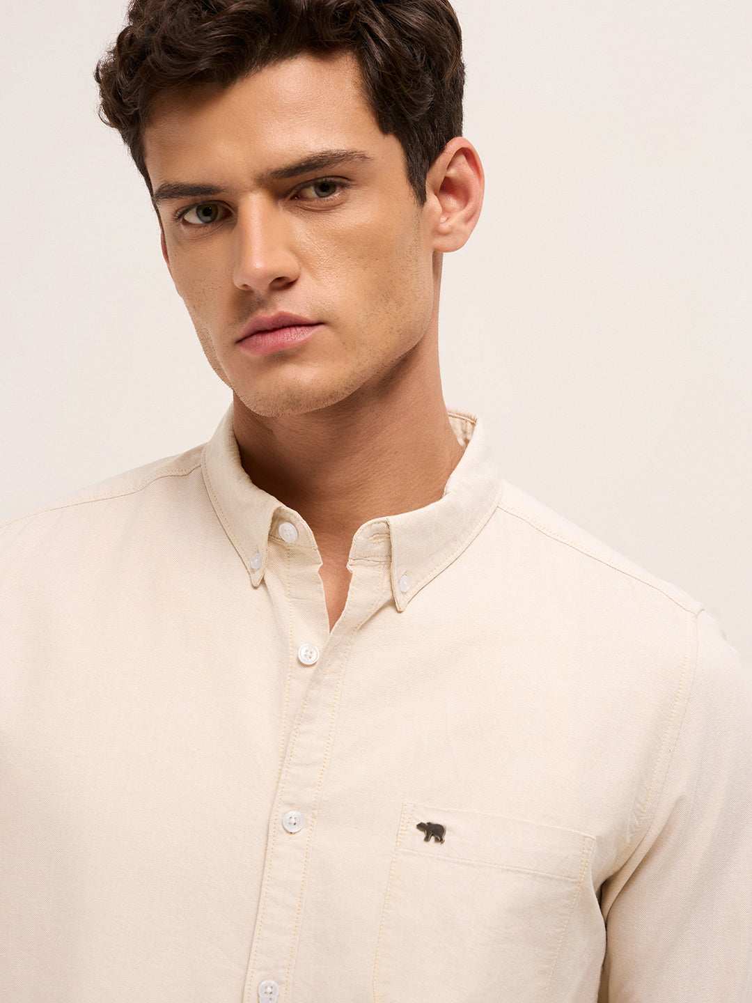 Shop Beige Solid Slim Fit Cotton Casual Shirt Online.