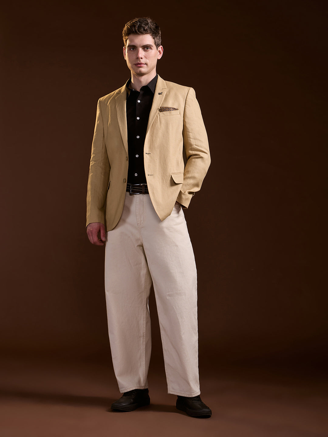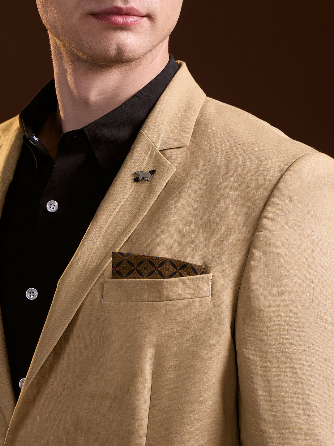 Men Beige Solid Tailored Fit Single-Breasted Formal Blazer