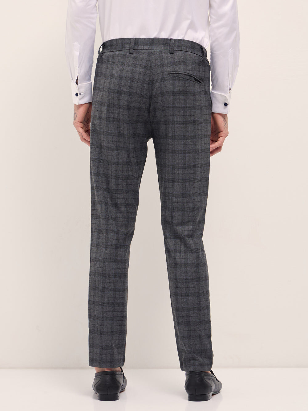 Grey Slim Fit Formal Trousers with Checked Design & Side-Elasticated Waistband