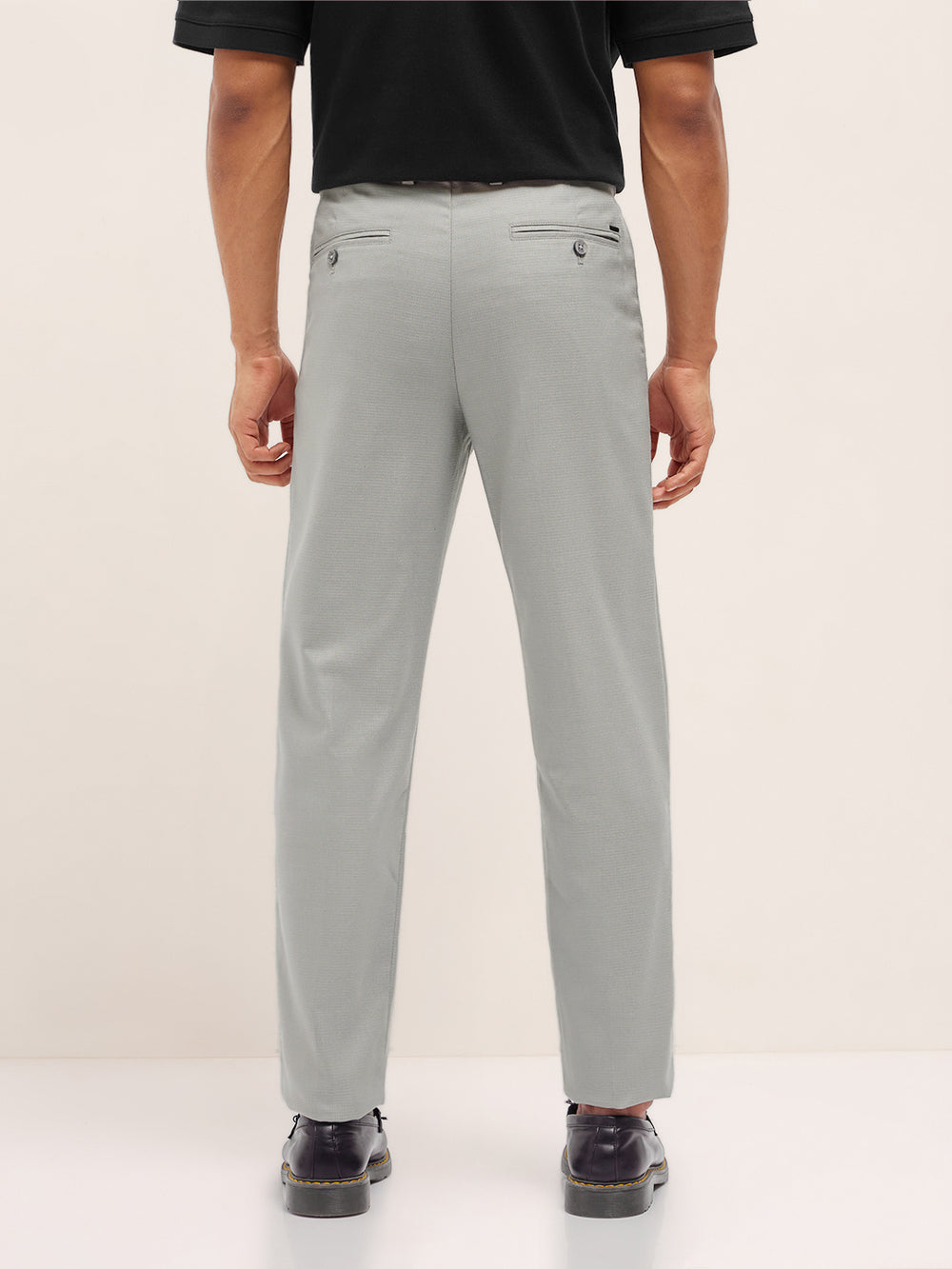 Light Grey Textured Weave Regular Fit Formal Trousers