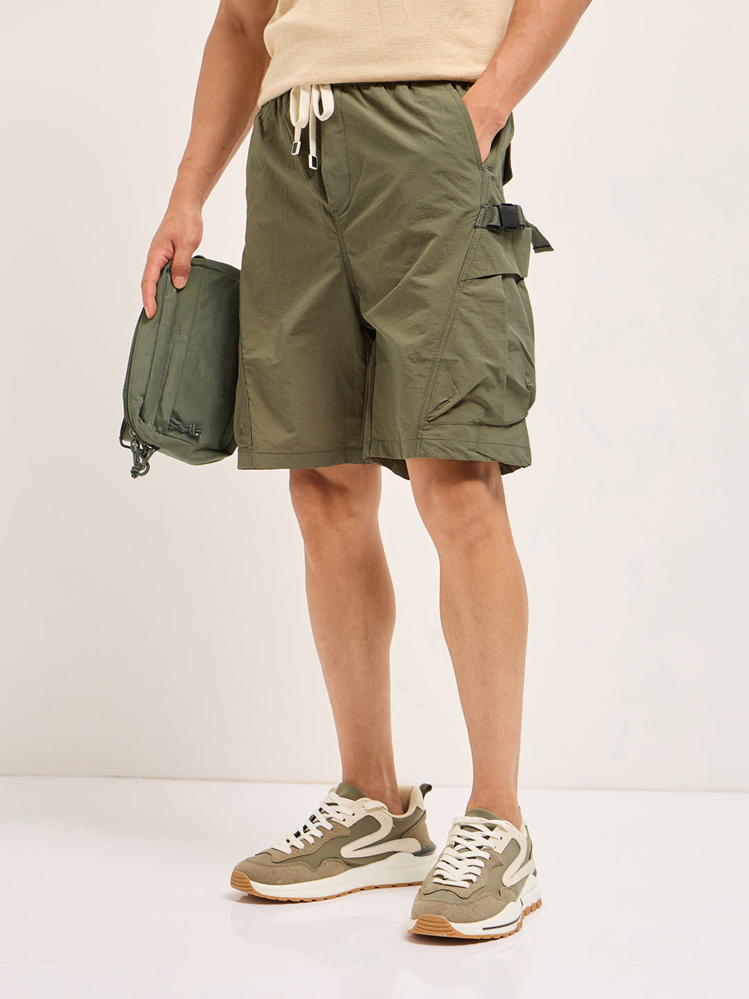 Green Regular Fit Knee-Length Utility Cargo Shorts