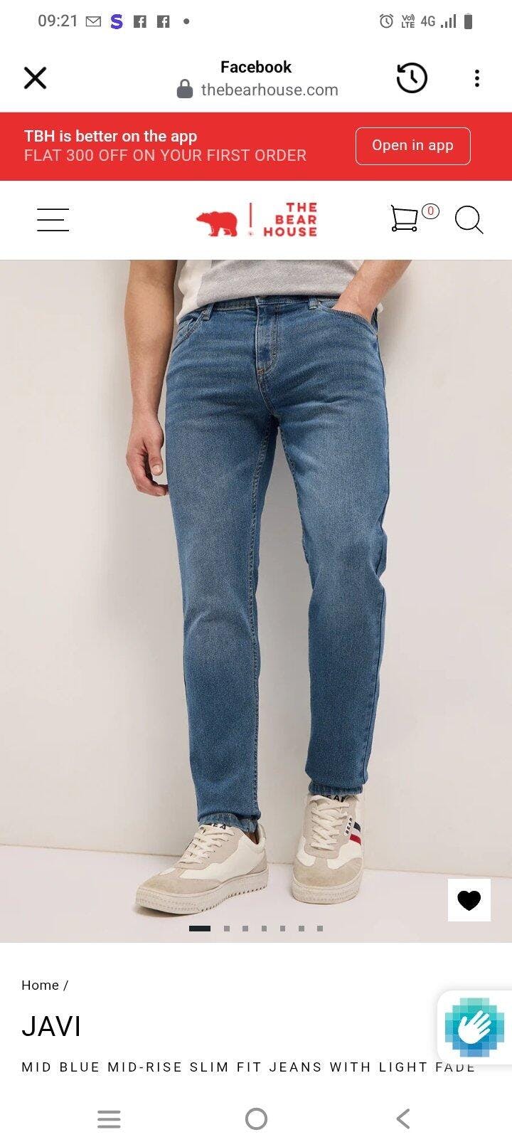 Shop Mid Blue Mid-Rise Slim Fit Jeans with Light Fade Online