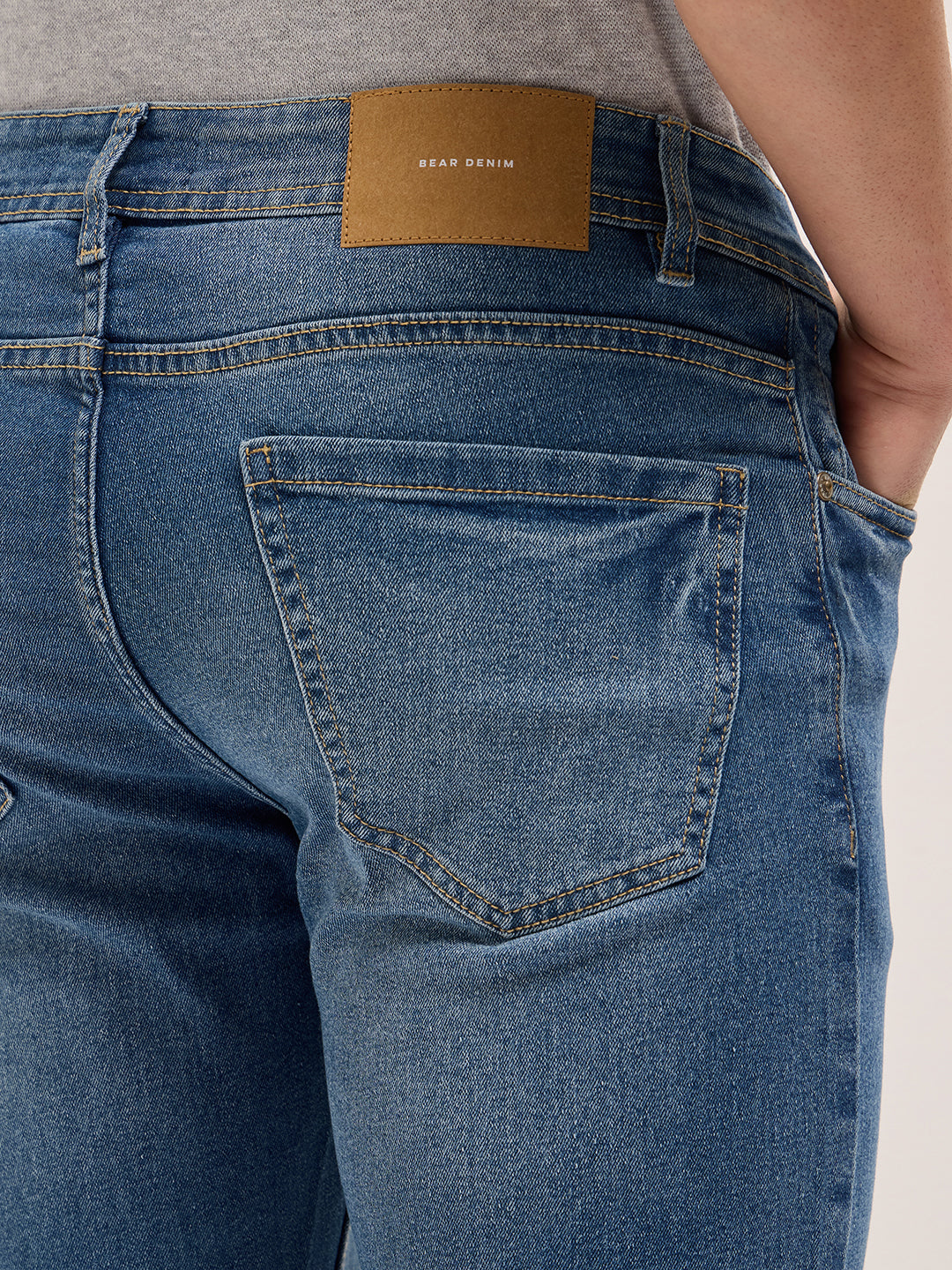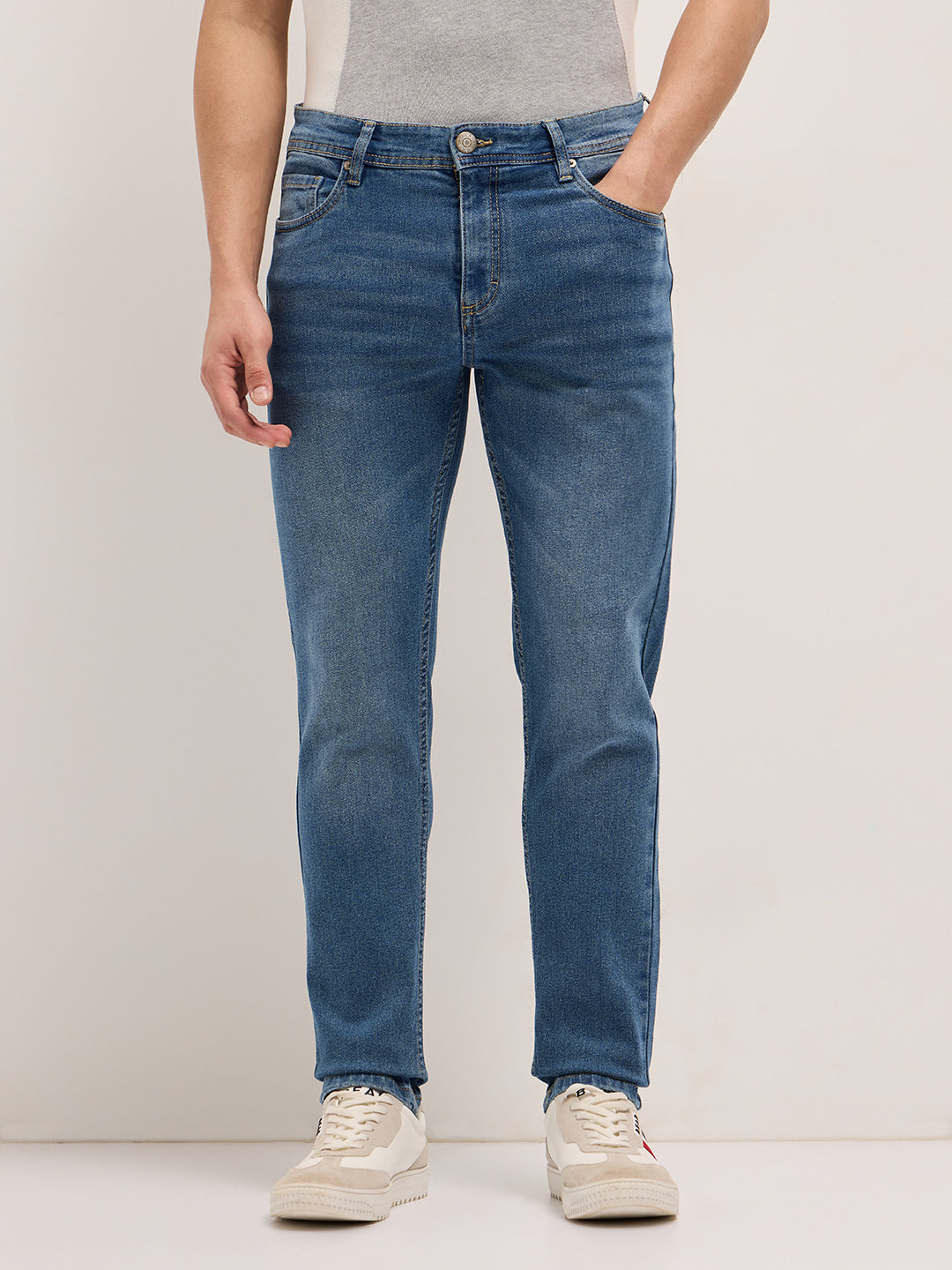 Mid Blue Mid-Rise Slim Fit Jeans with Light Fade