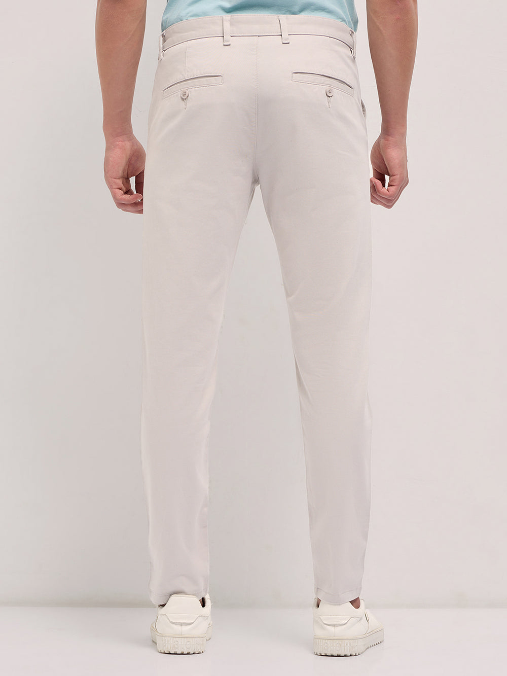Cream Solid Slim Fit Casual Chino Trouser