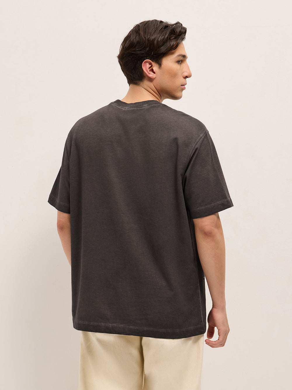 Brown Oversized Crew Neck T-Shirt with Storefront Graphic Print
