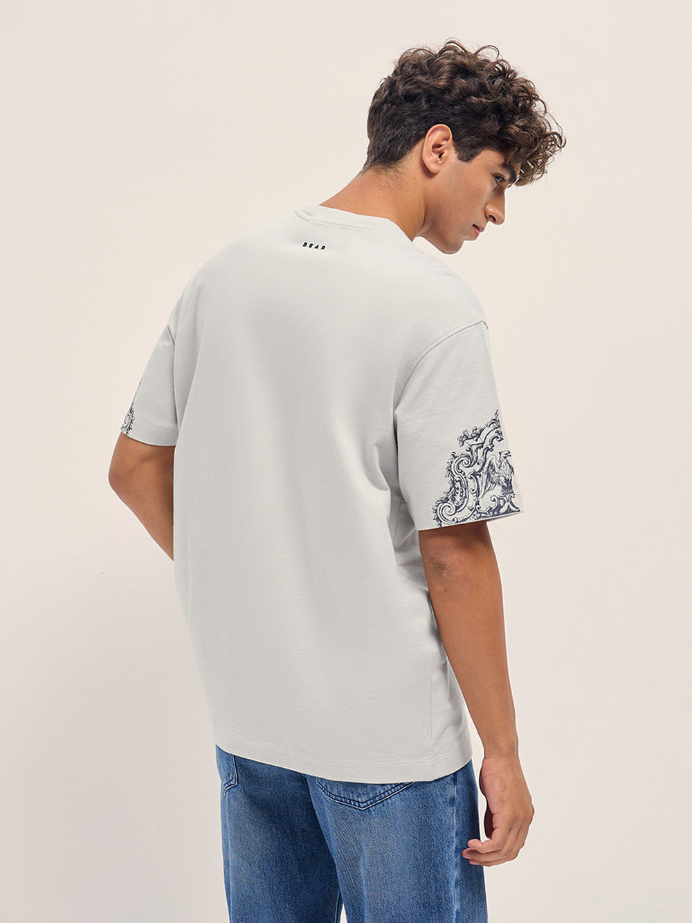 Light Grey Mythology Graphic Print Oversized Crew Neck T-Shirt