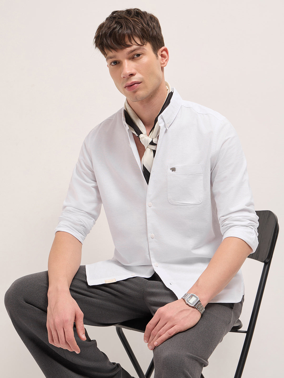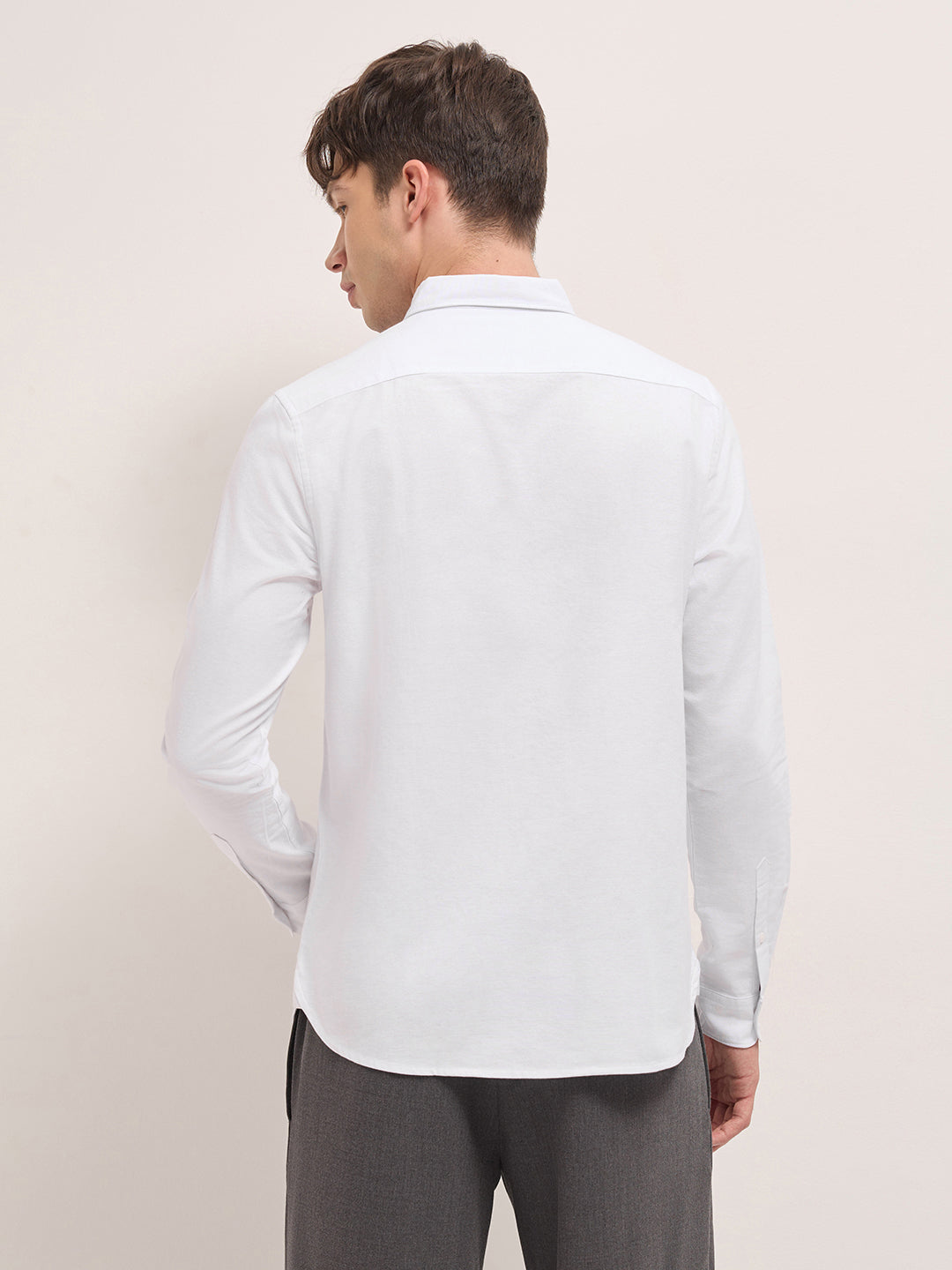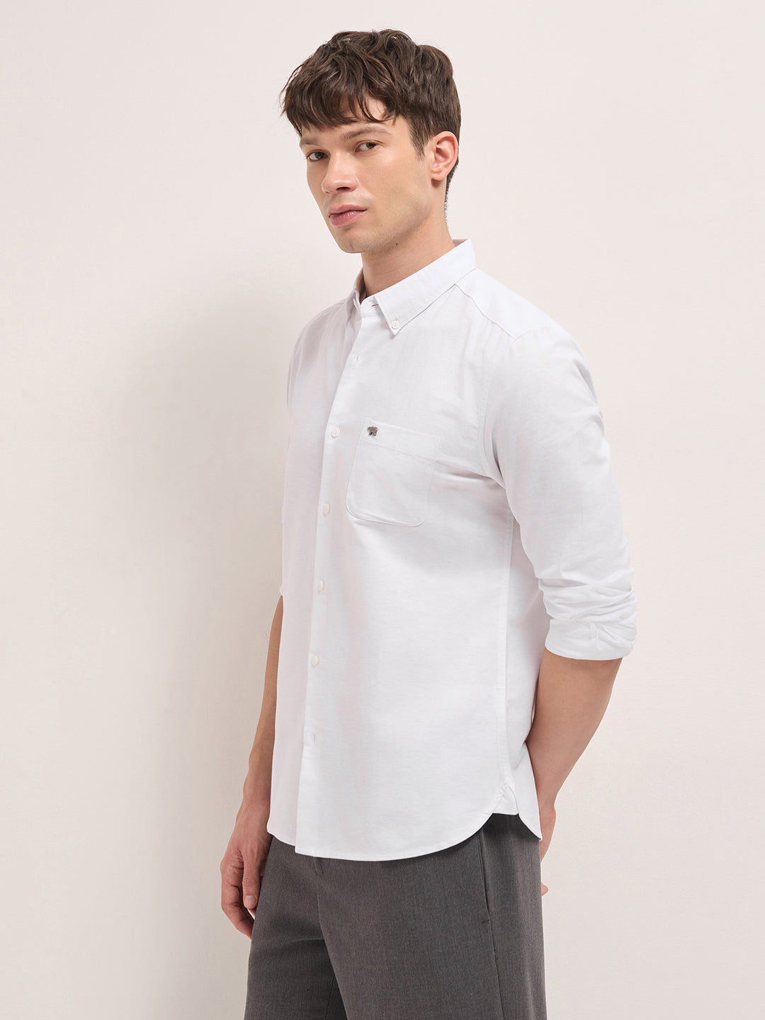 White Solid Cotton Slim Fit Casual Shirt with Button-Down Collar