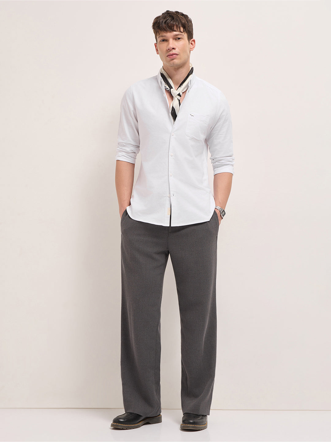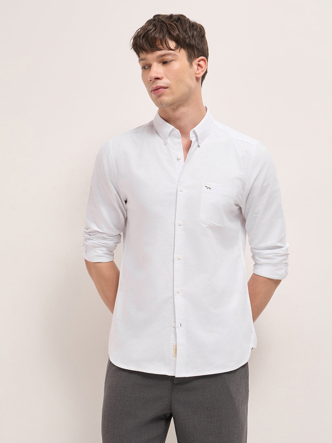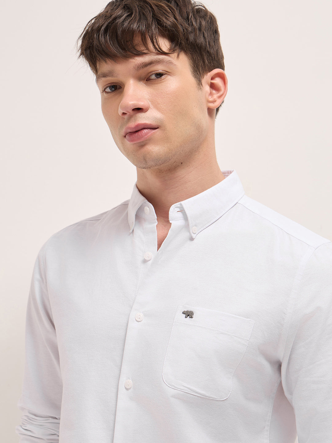 White Solid Cotton Slim Fit Casual Shirt with Button-Down Collar