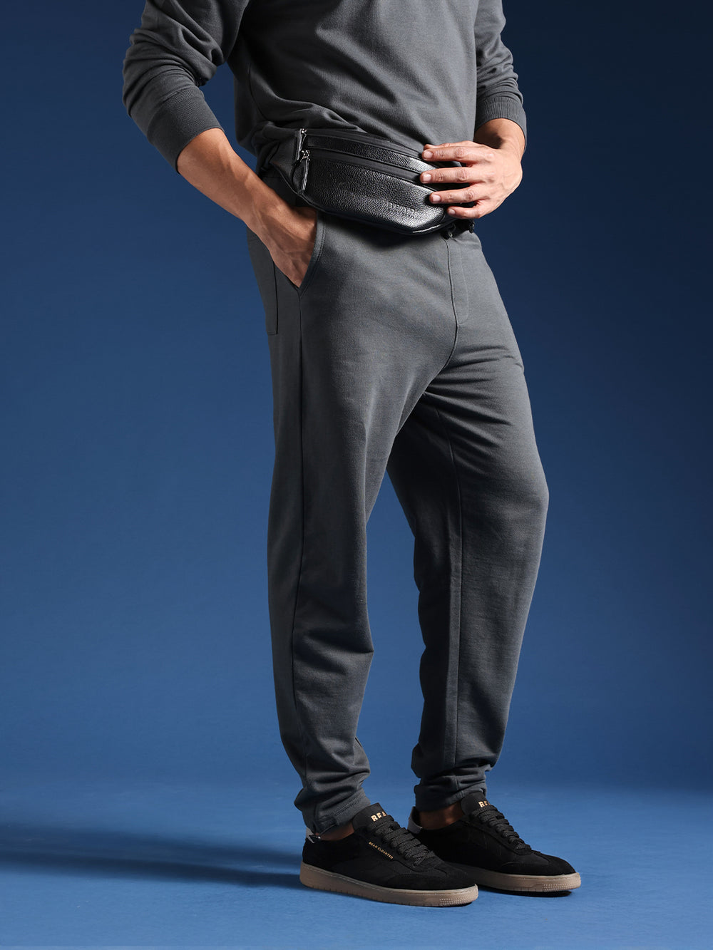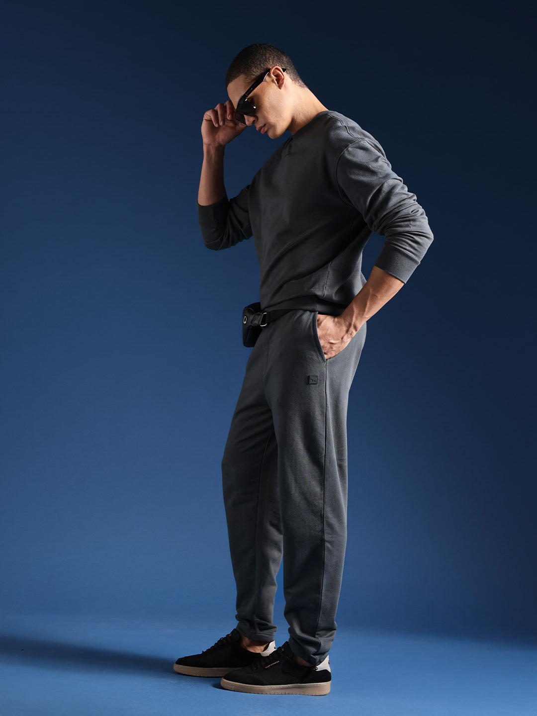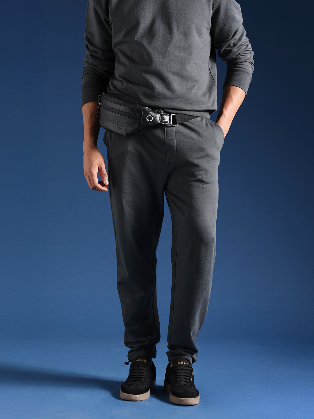Charcoal Grey Relaxed Fit Solid Track Pants with Toggle Adjustable Hem