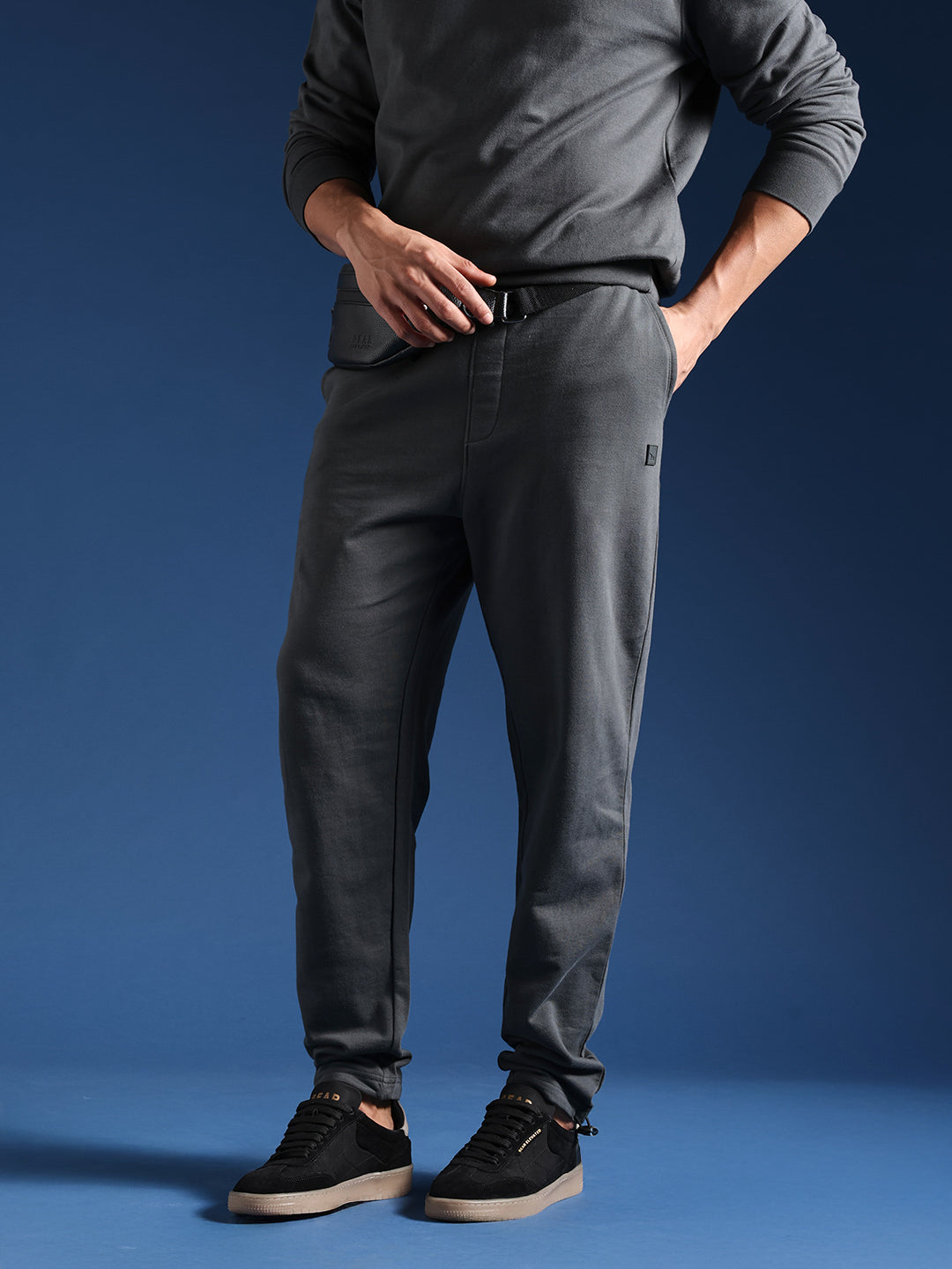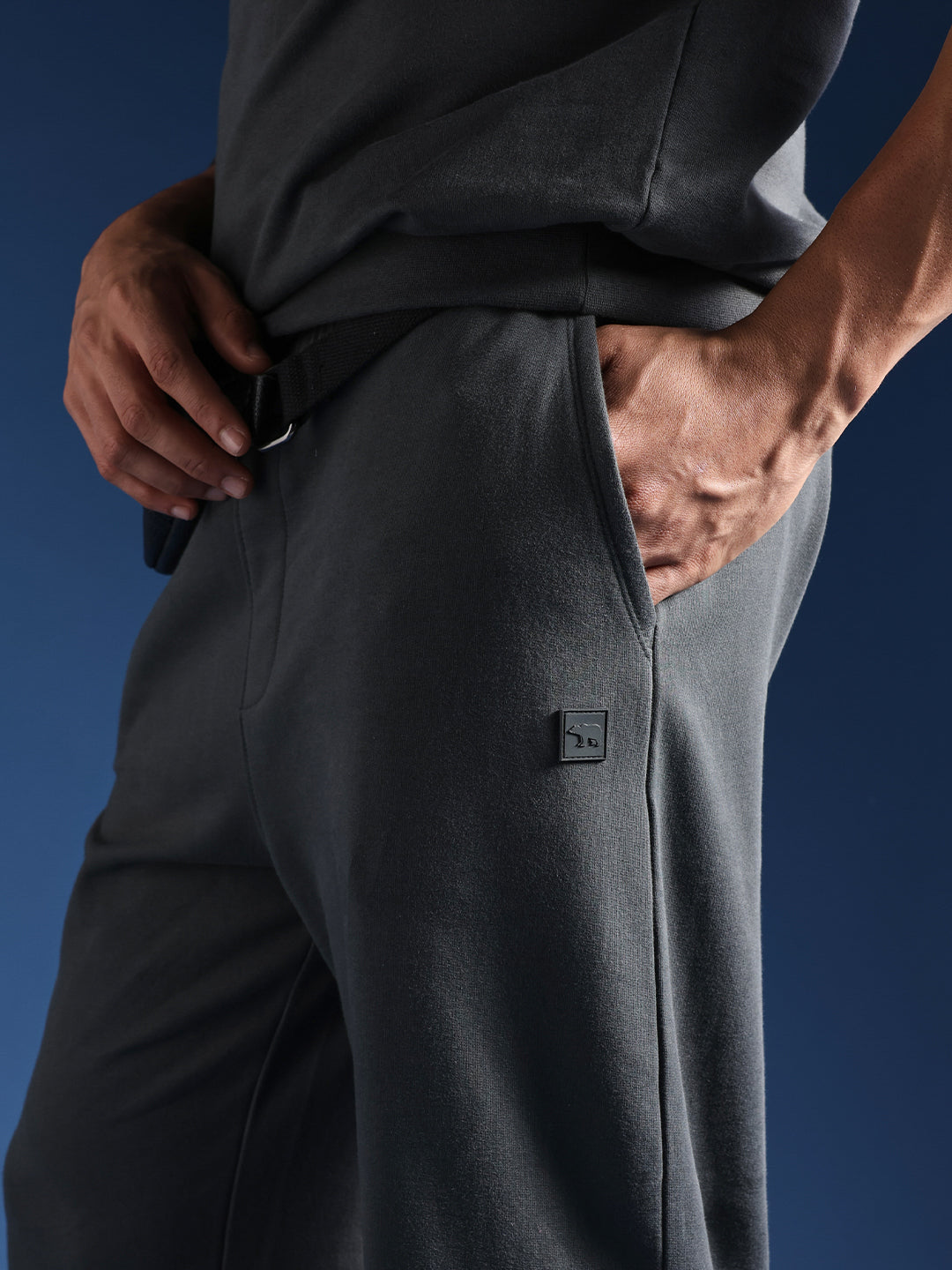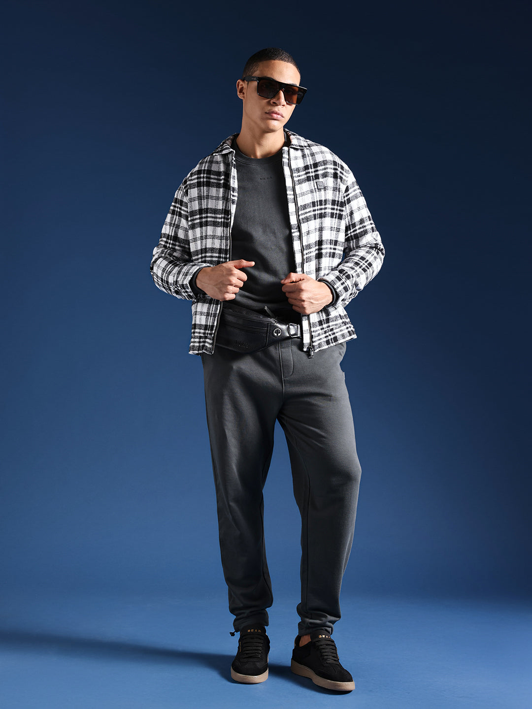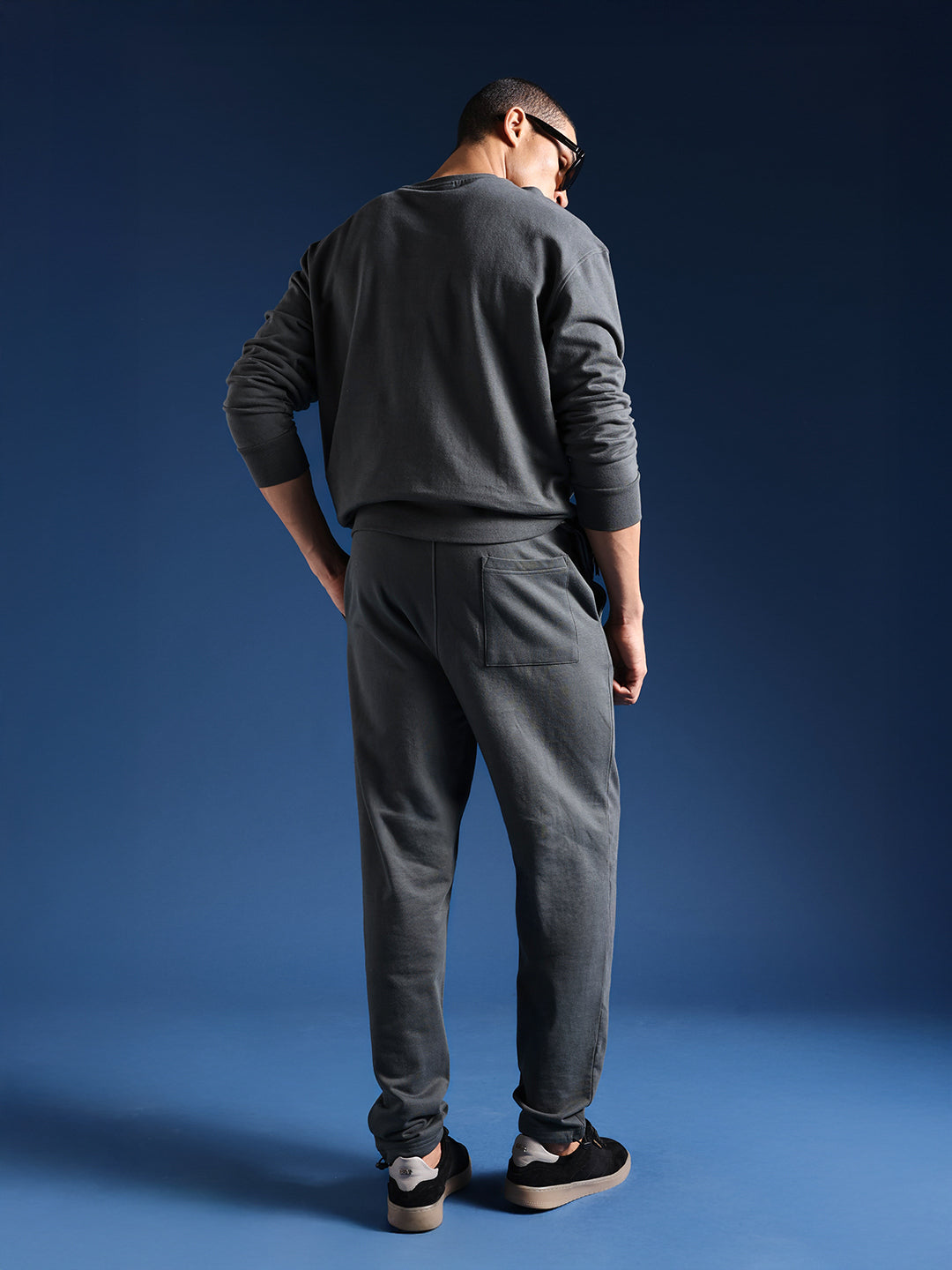 Charcoal Grey Relaxed Fit Solid Track Pants with Toggle Adjustable Hem