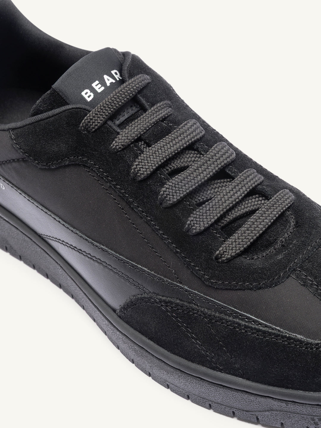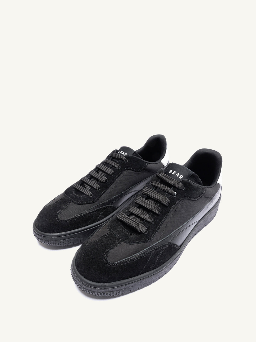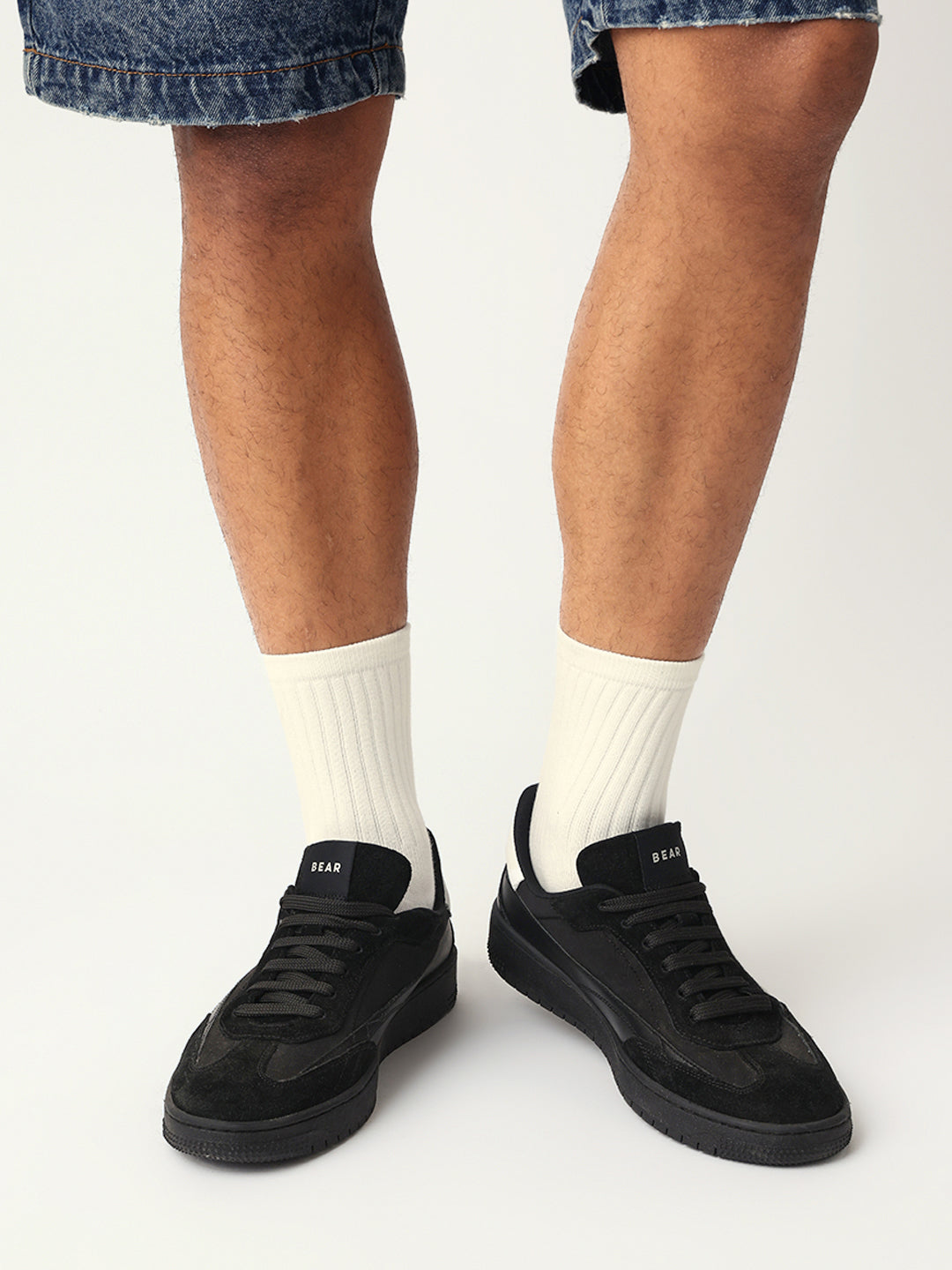 Black Suede Lace-Up Sneakers with Contrast White Leather Detail