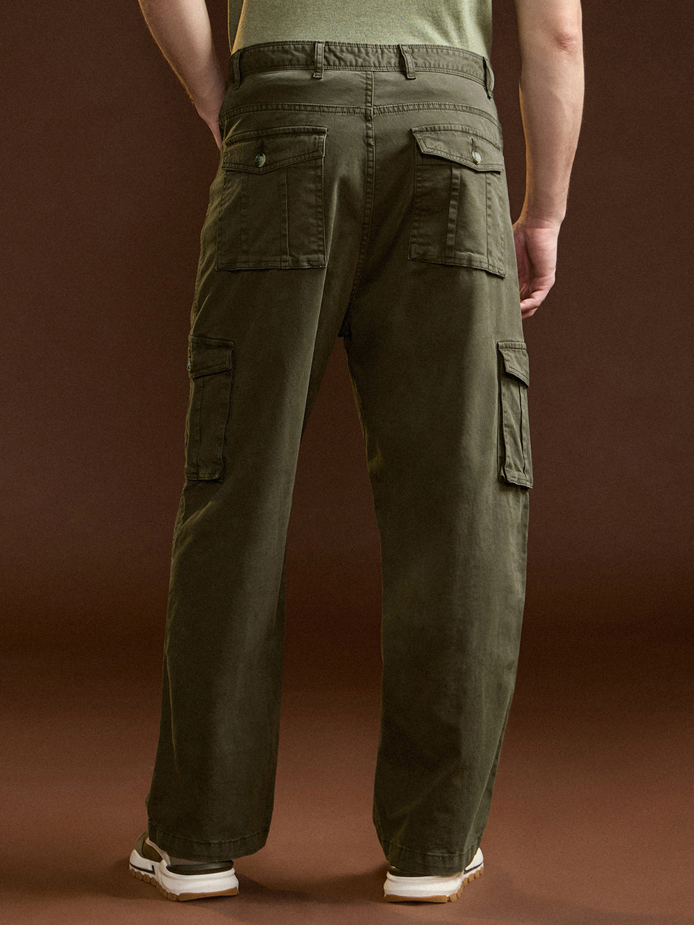 Olive Solid Straight Fit Functional & Stylish Cargo Pant