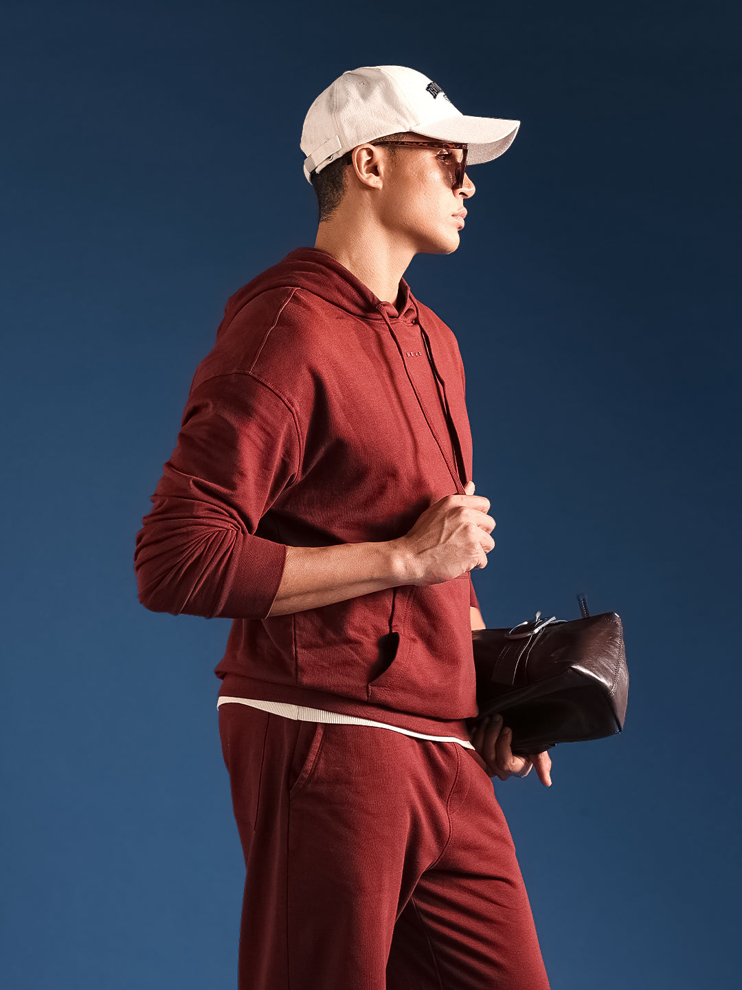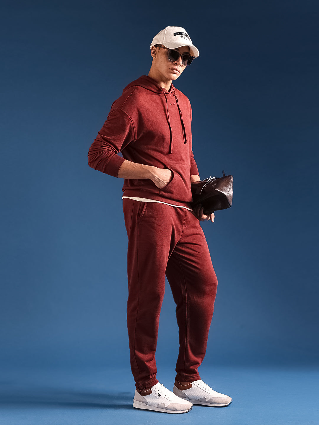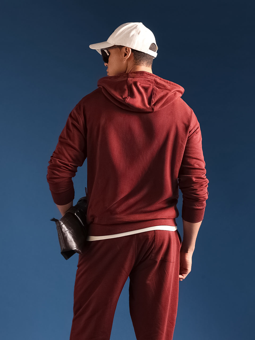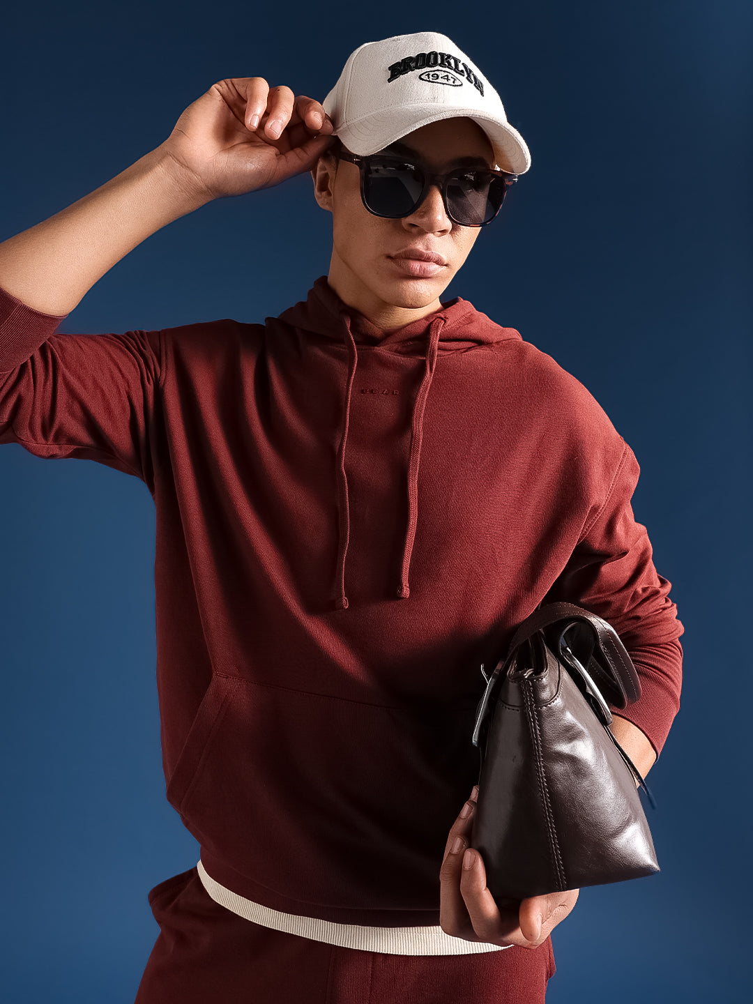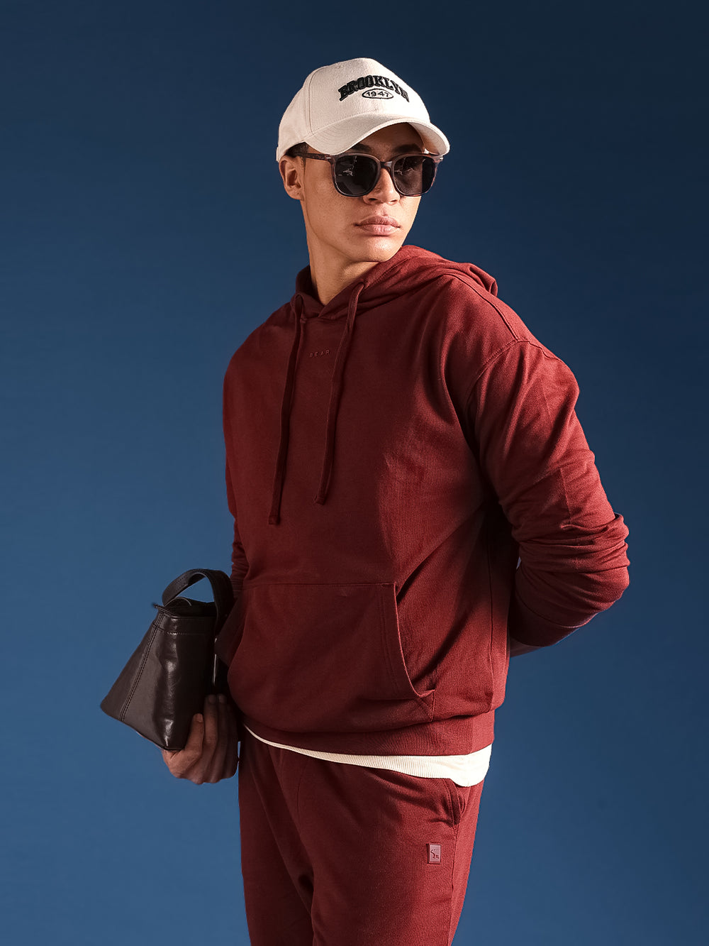 Maroon Solid Relax Fit Pullover Hoodie with Kangaroo Pocket