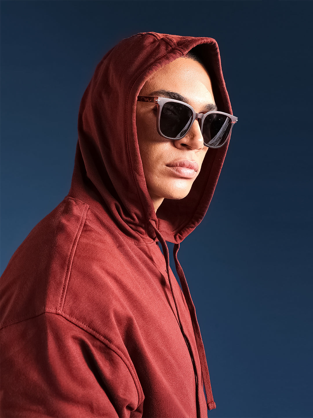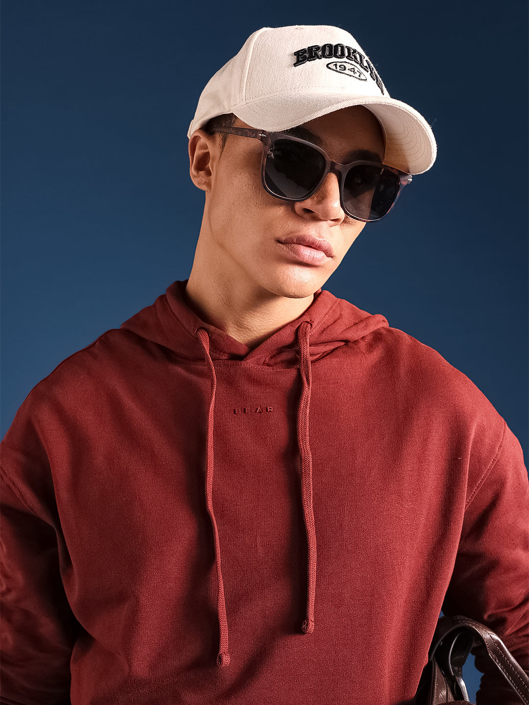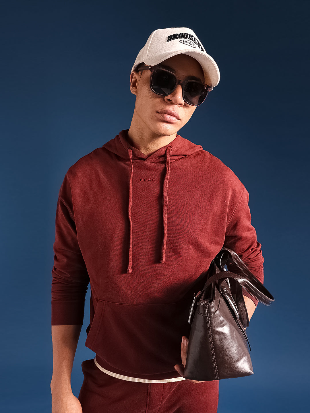 Shop Maroon Solid Relax Fit Pullover Hoodie with Kangaroo Pocket Online