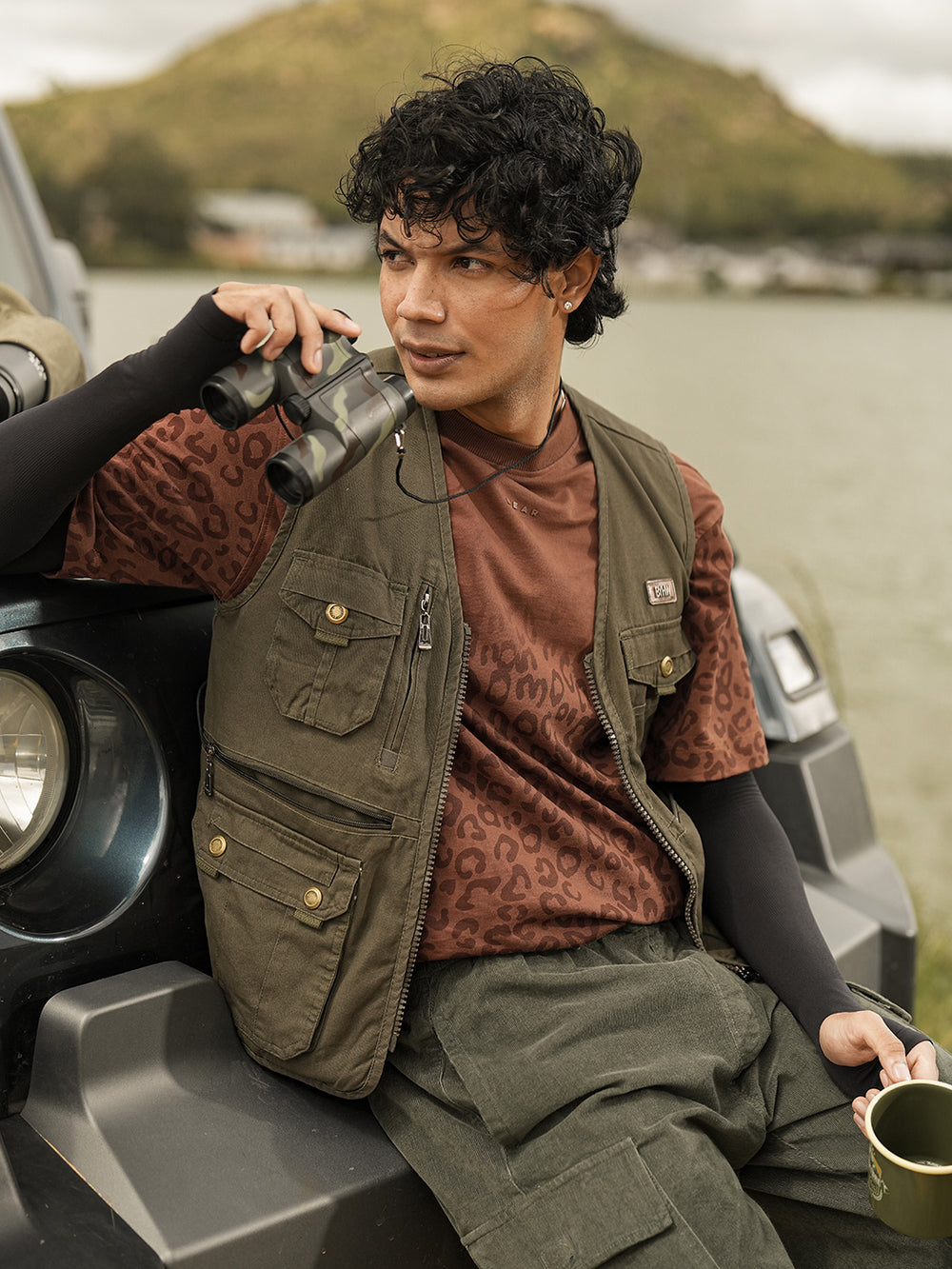 Olive Outdoor Utility Multi-Pocket Vest Jacket