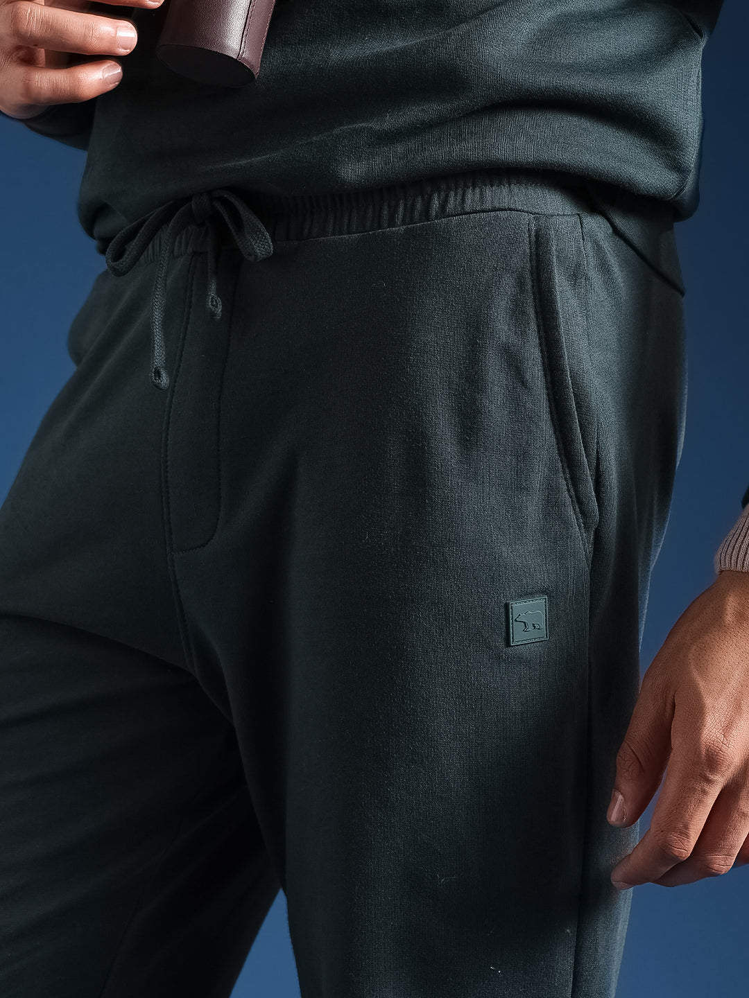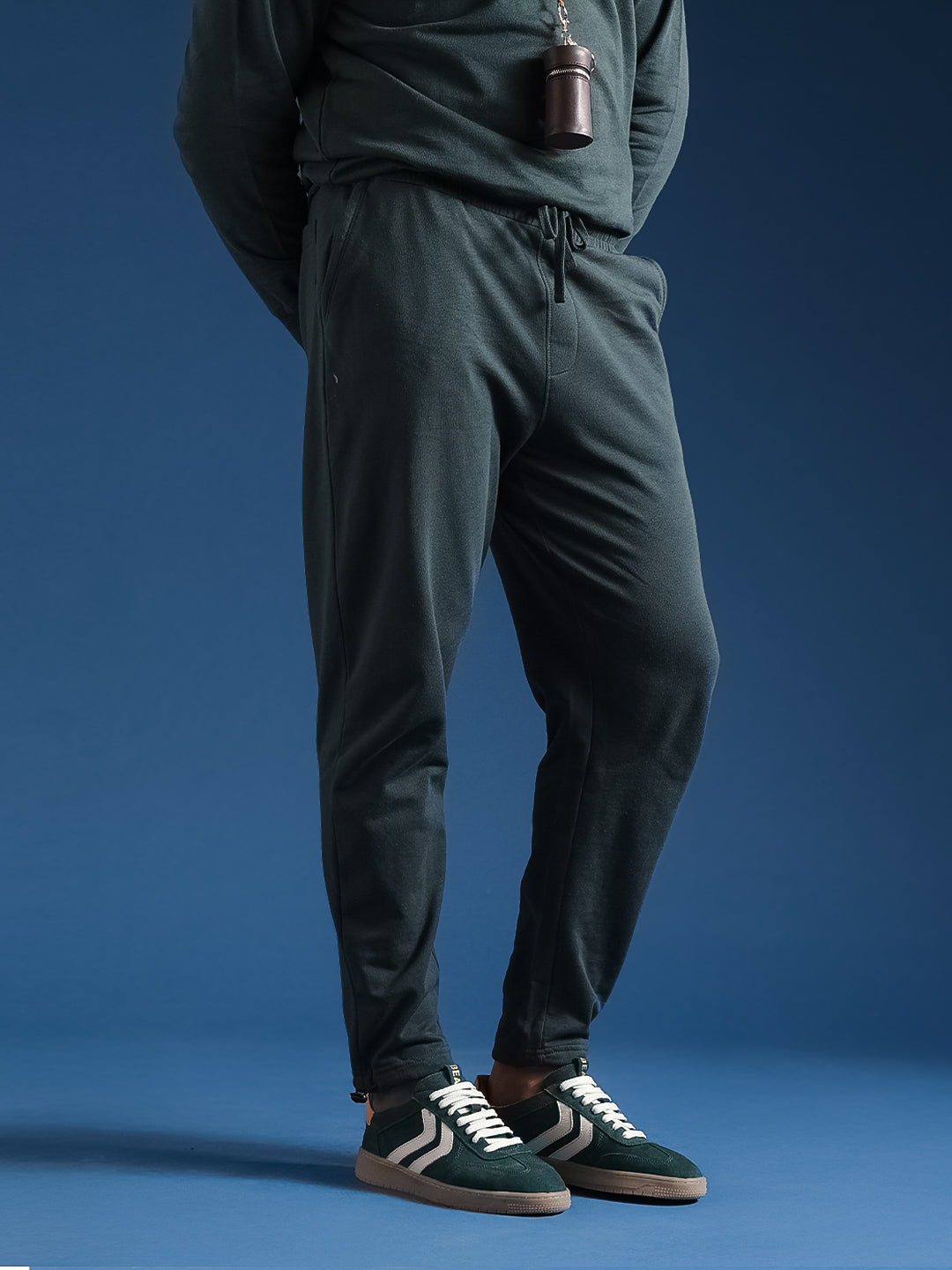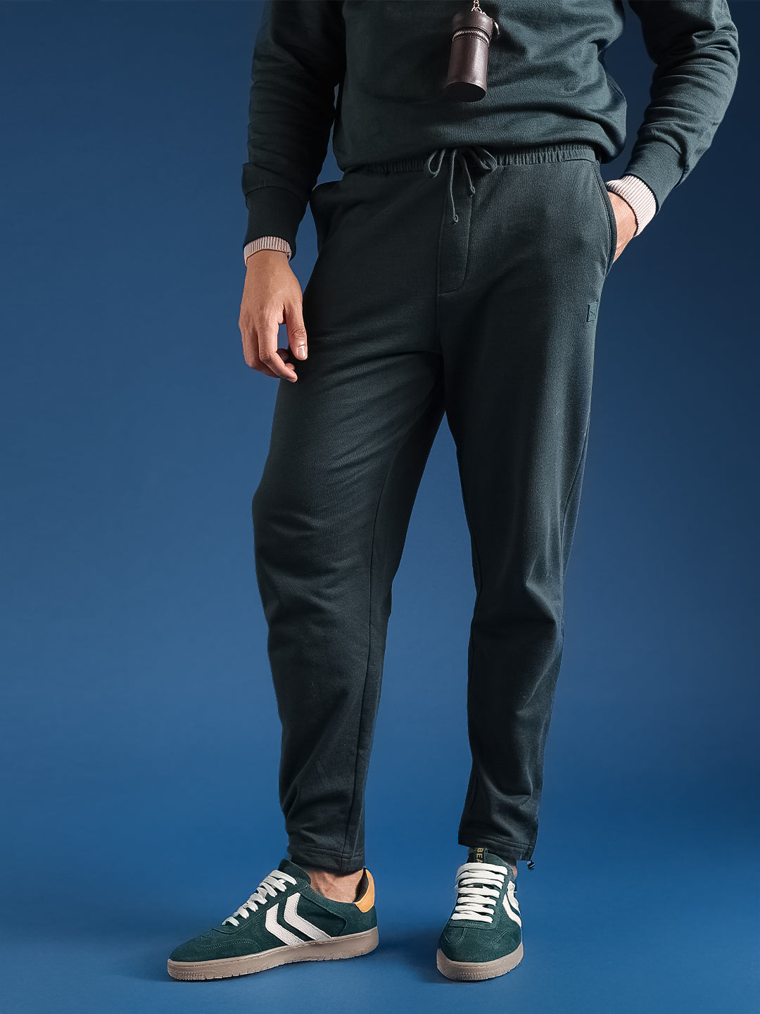 Forest Green Relaxed Fit Solid Track Pants with Toggle Adjustable Hem