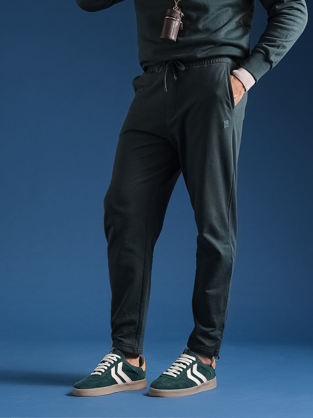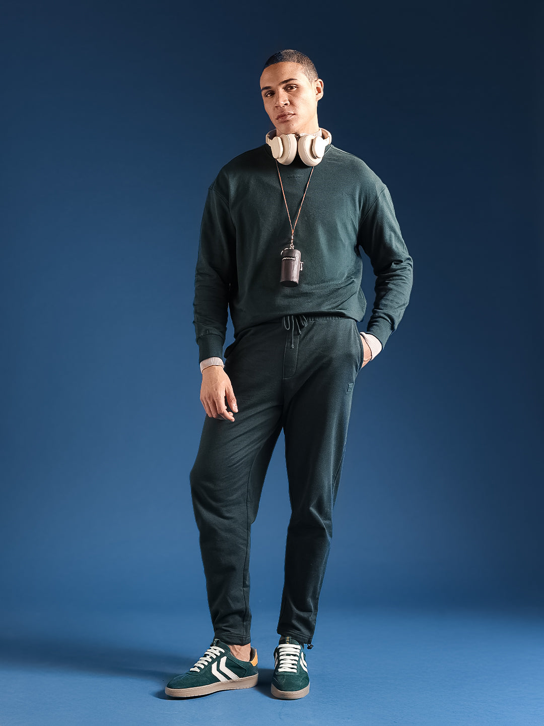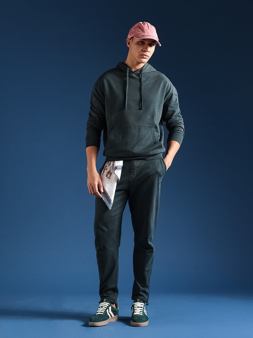 Forest Green Relaxed Fit Solid Track Pants with Toggle Adjustable Hem
