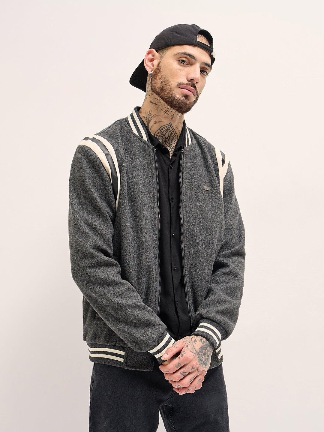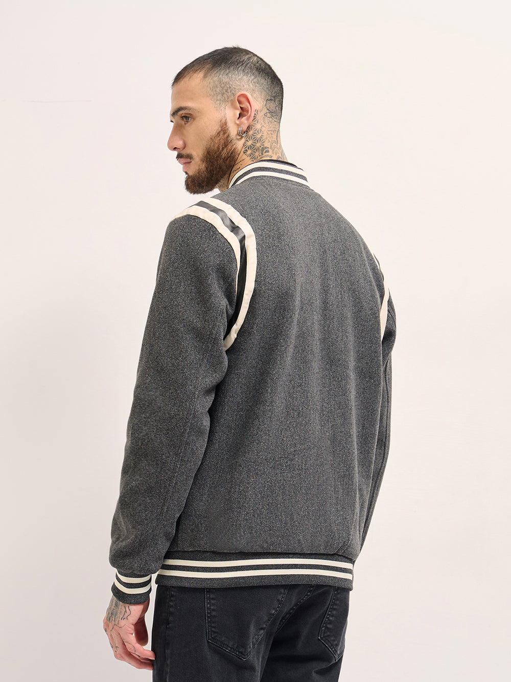 Shop Stylish Bomber Jacket in grey with Ribbed Stripes online