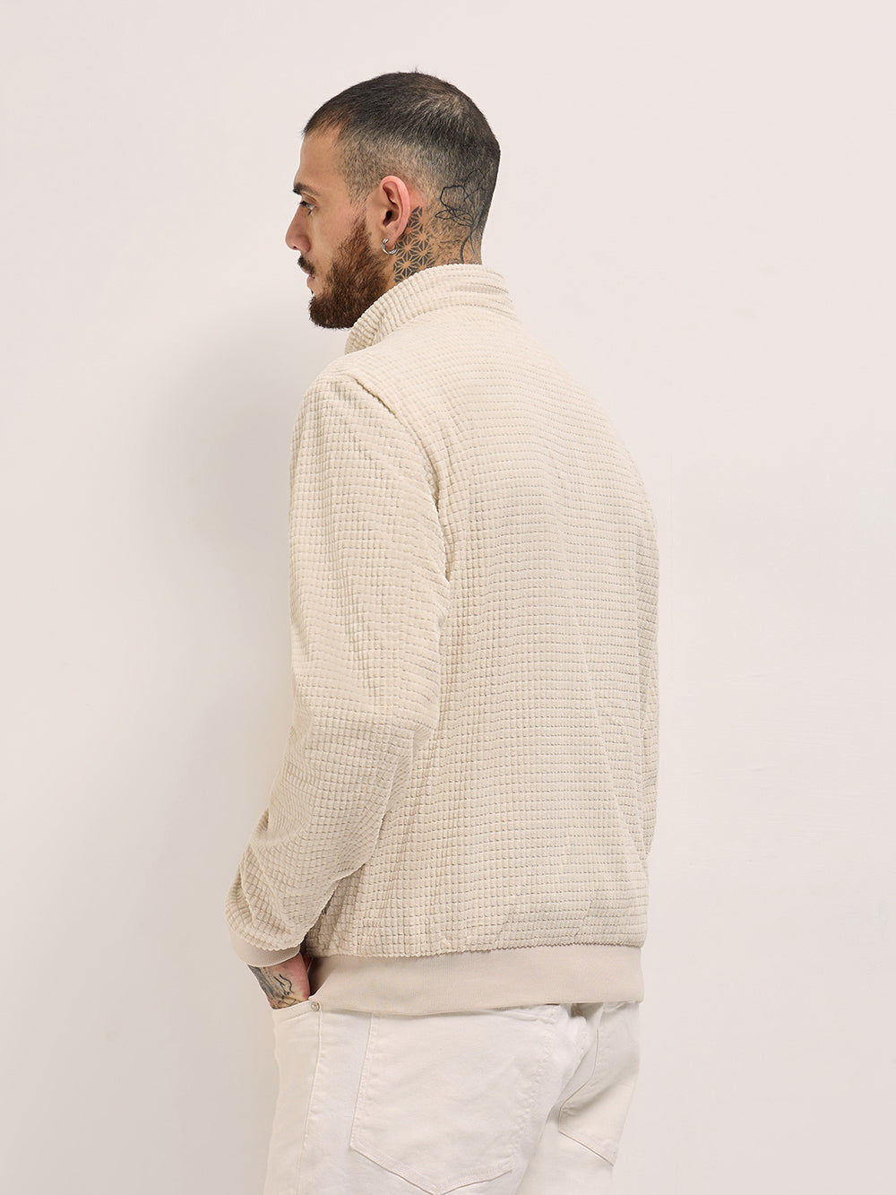 Classic Cream Jacket with Textured Design and Modern Features