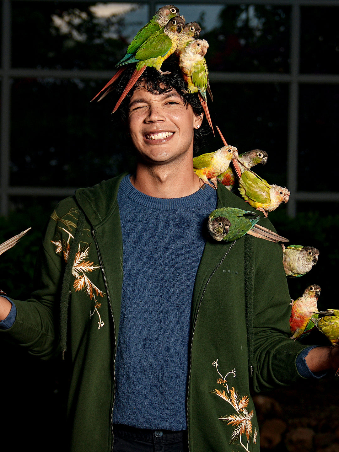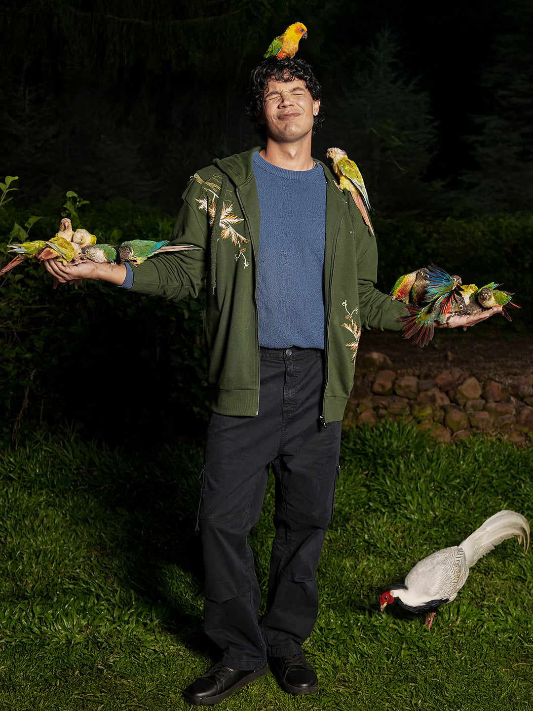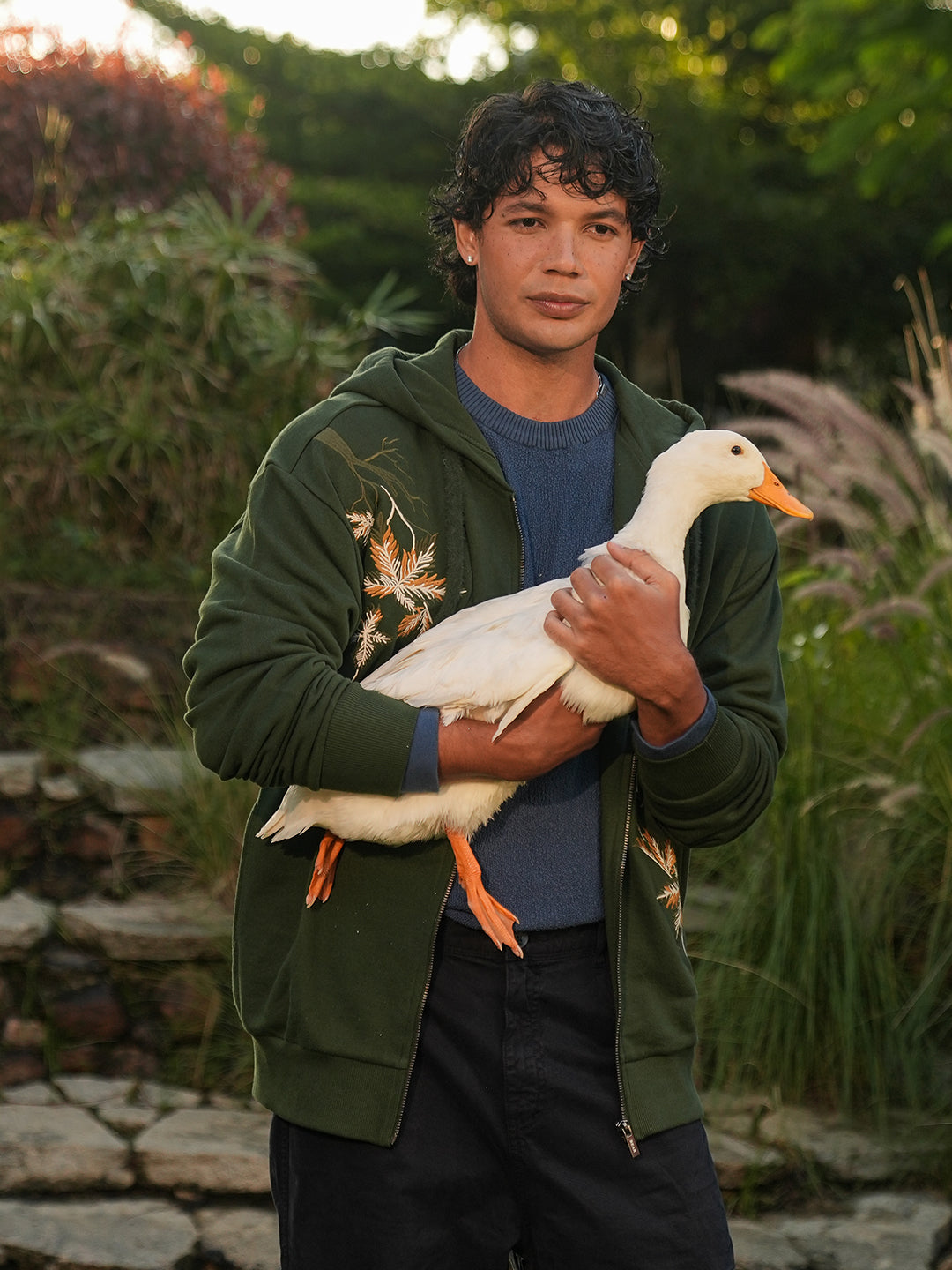 • Front Design: Delicate floral embroidery on the right chest and lower left side