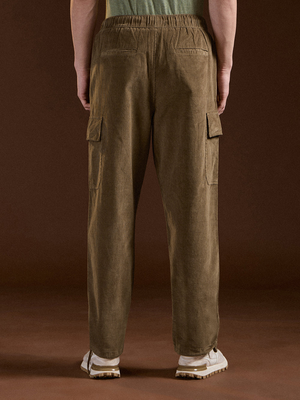 Shop Khaki Solid Baggy Fit Stylish Corduroy Cargo Pant Online