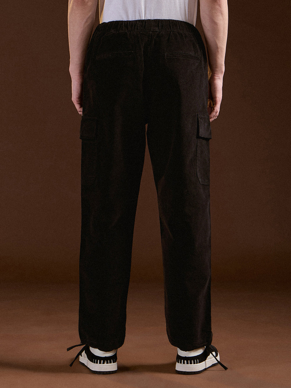 Black Solid Baggy Fit Stylish Corduroy Cargo Pant