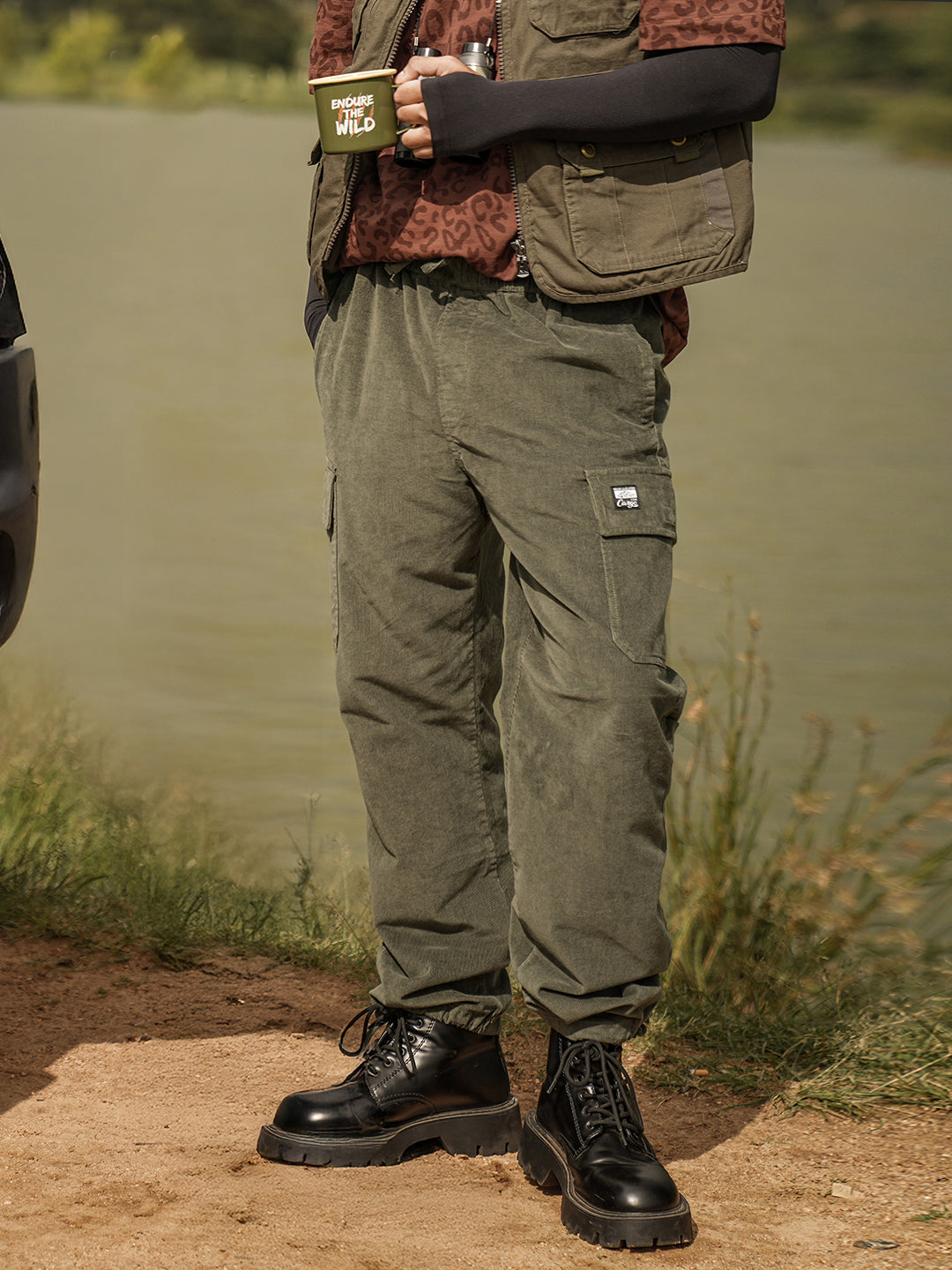 Green Solid Baggy Fit Stylish Corduroy Cargo Pant