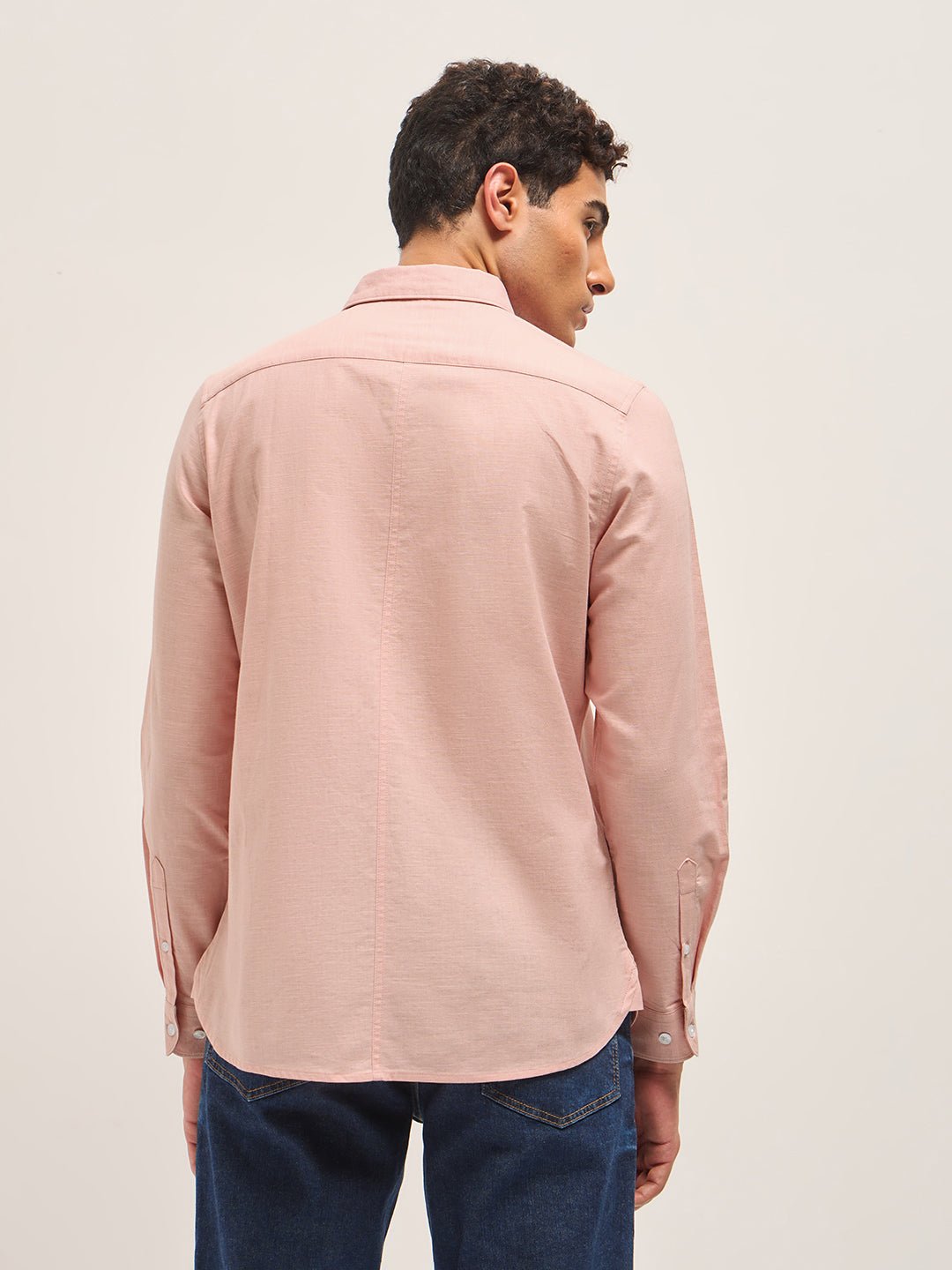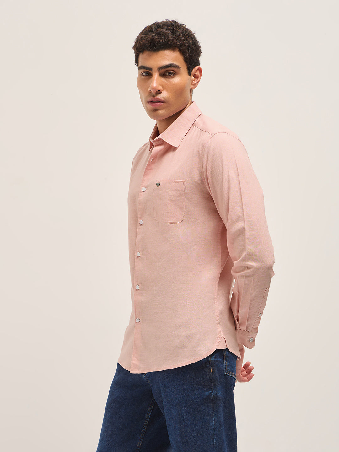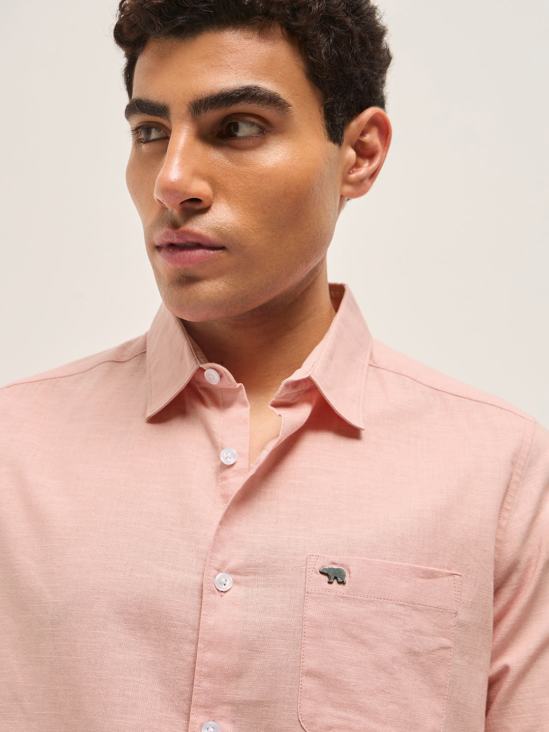 Pink Cotton Linen Slim Fit Solid Casual Shirt