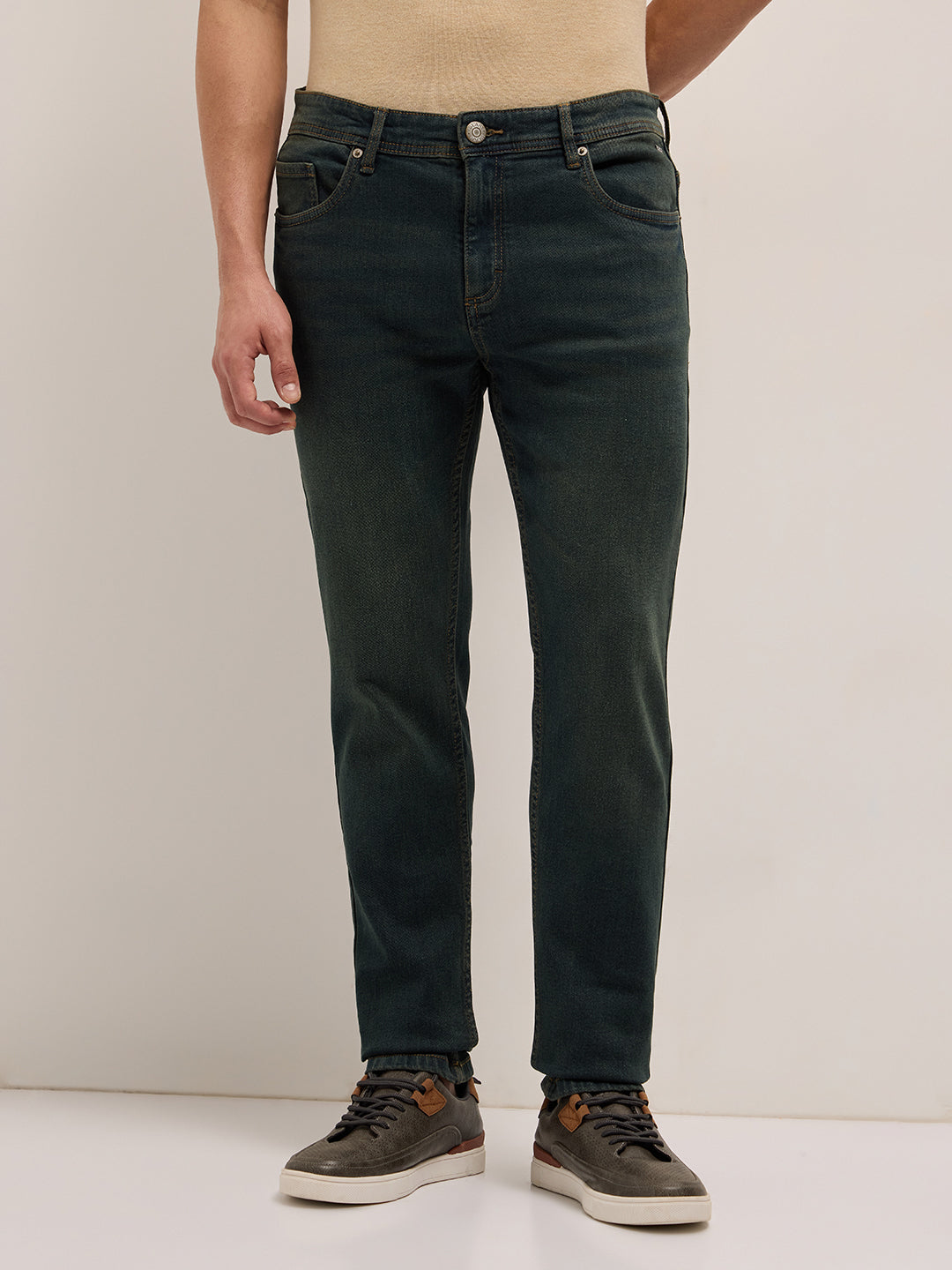 Dark Green Mid-Rise Slim Fit Jeans with Light Fade
