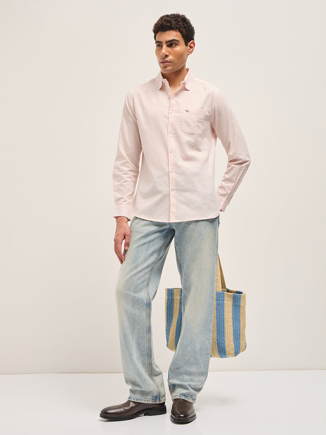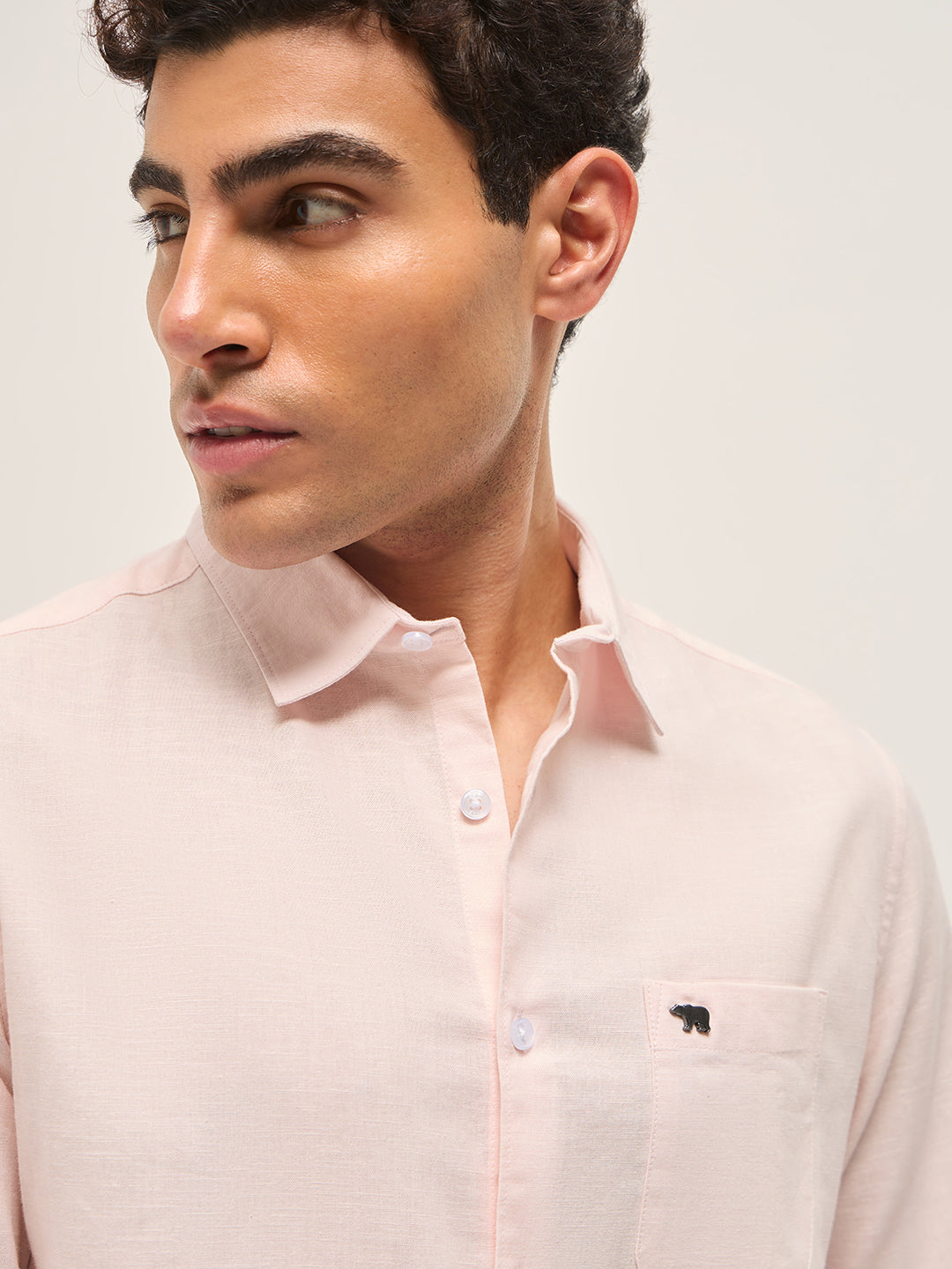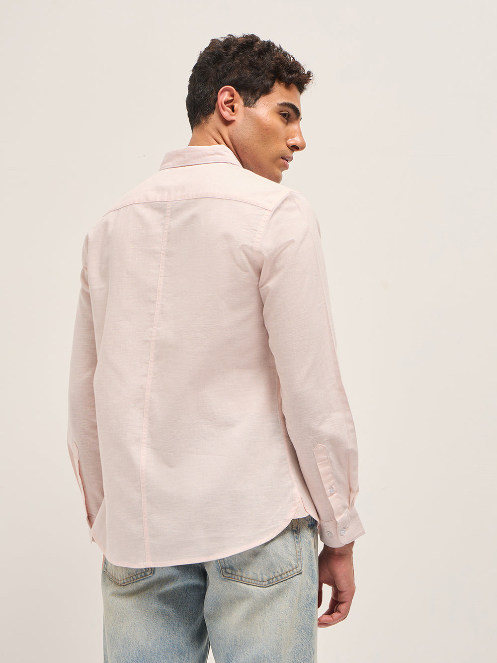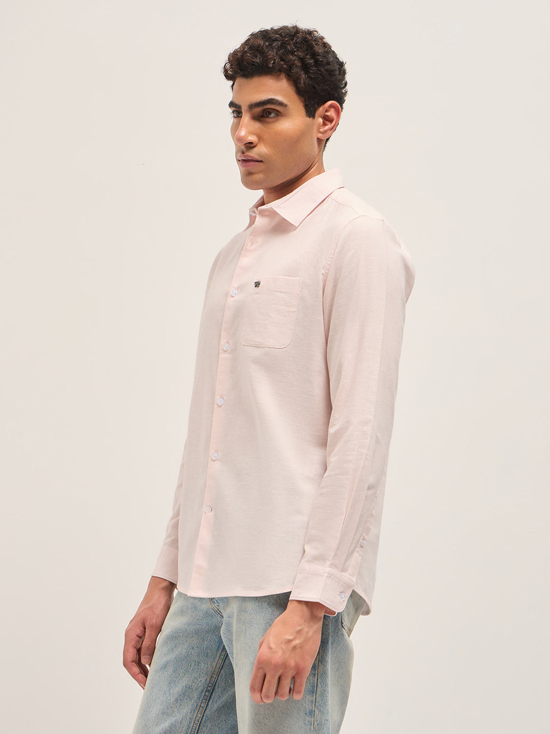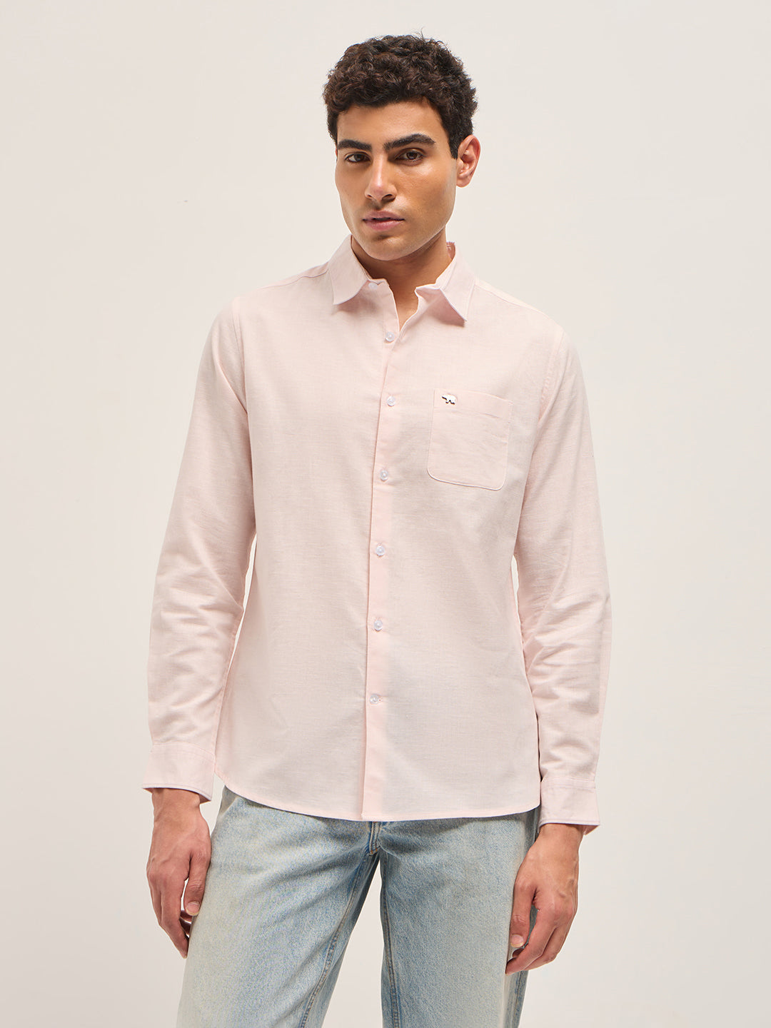 Pink Cotton Linen Slim Fit Solid Casual Shirt