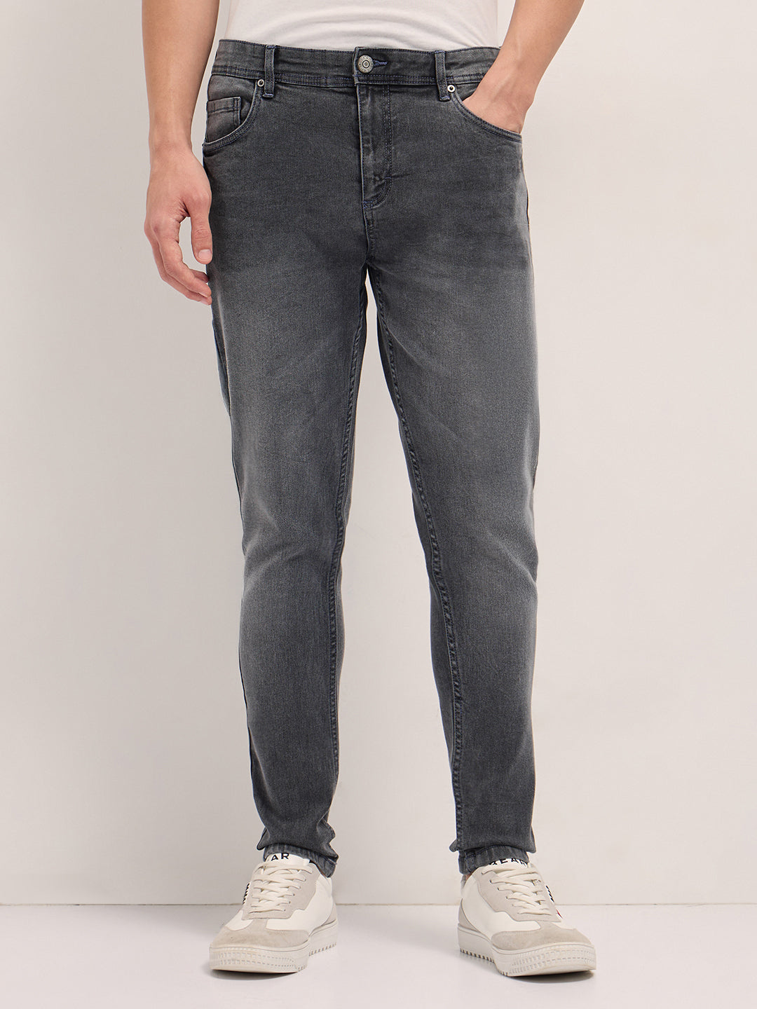 Grey Mid-Rise Skinny Fit Jeans with Light Fade