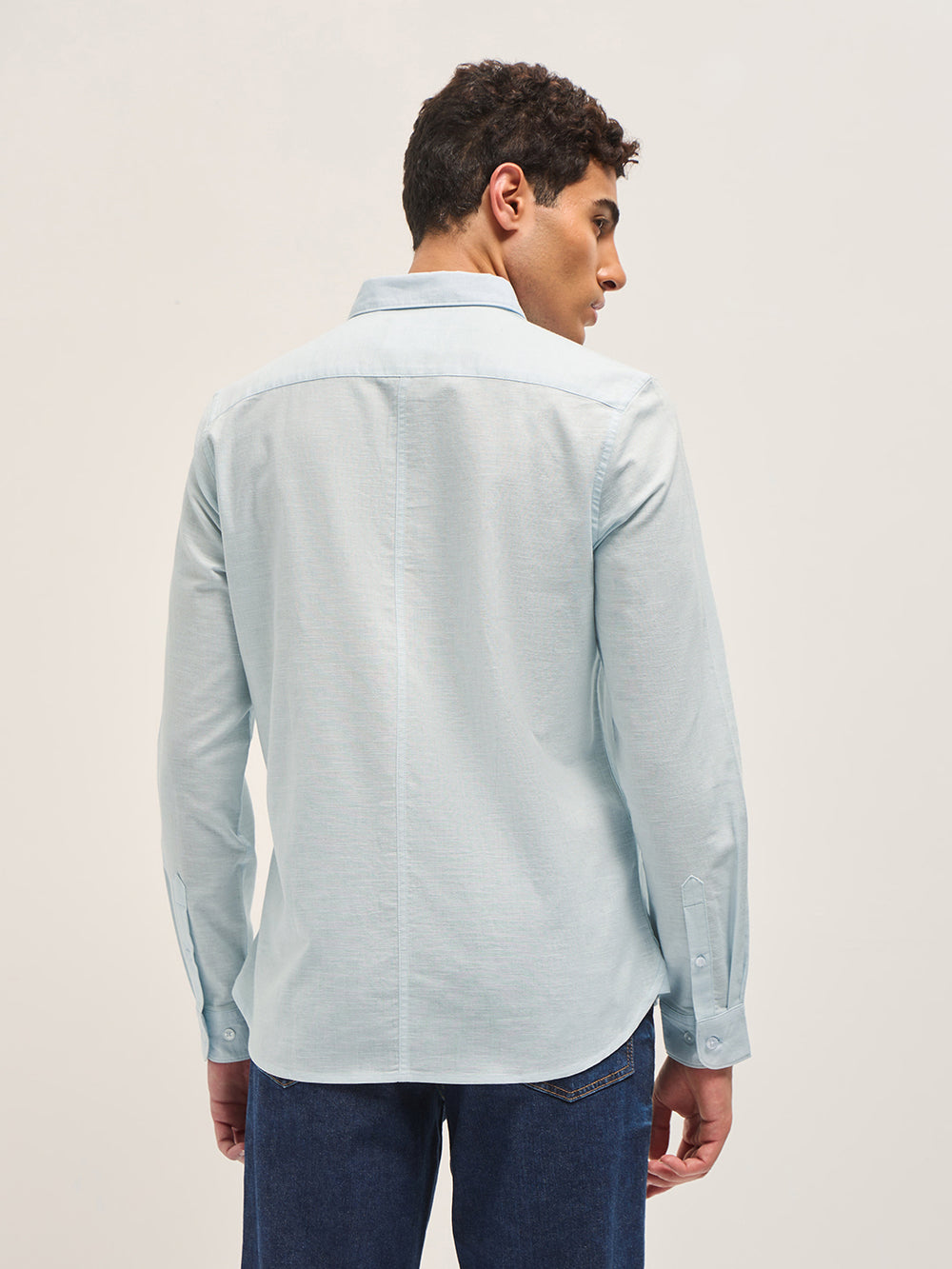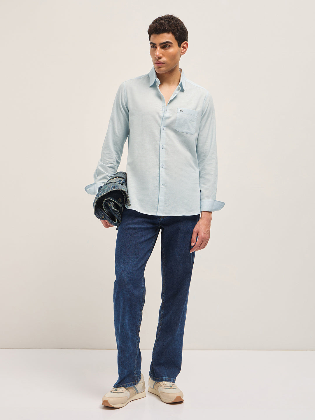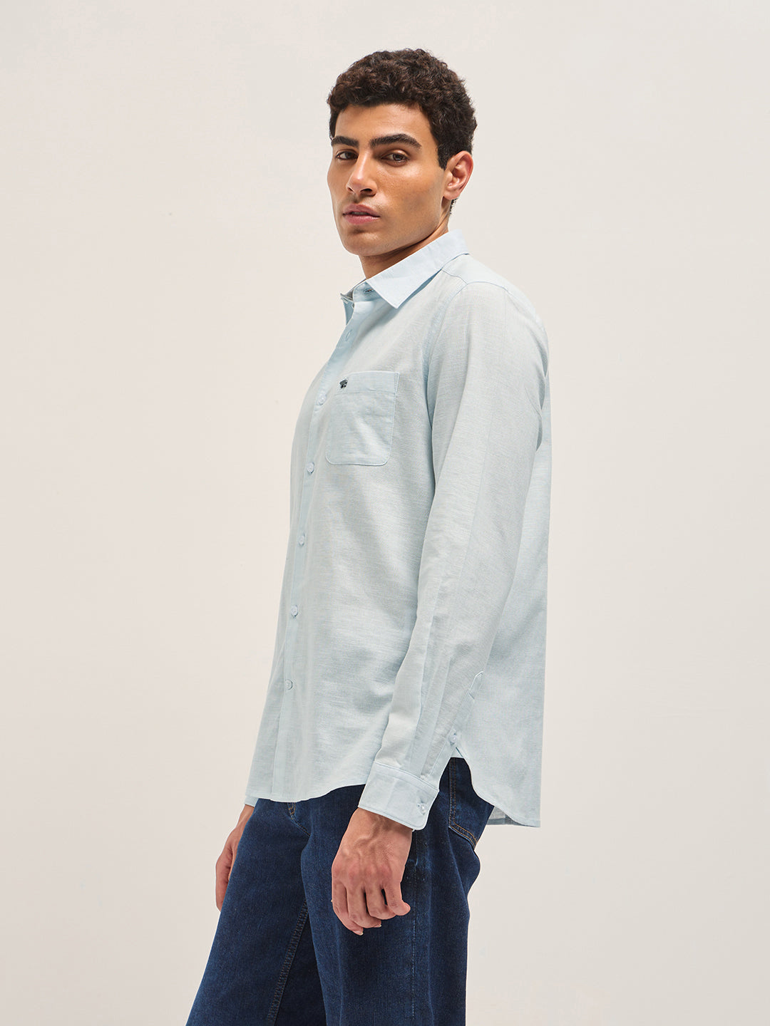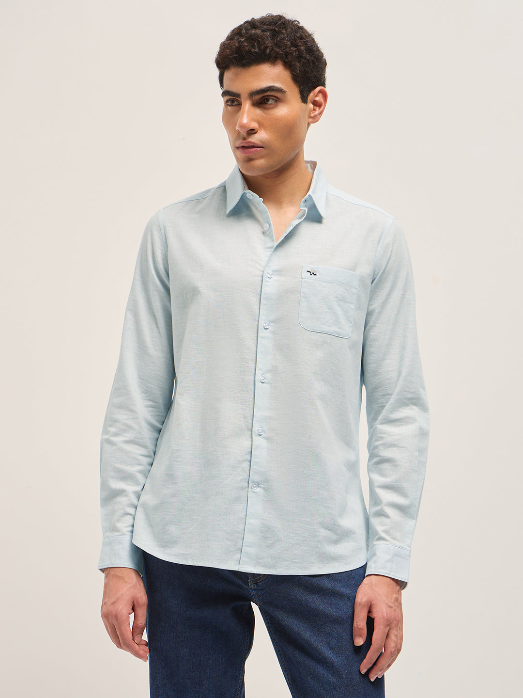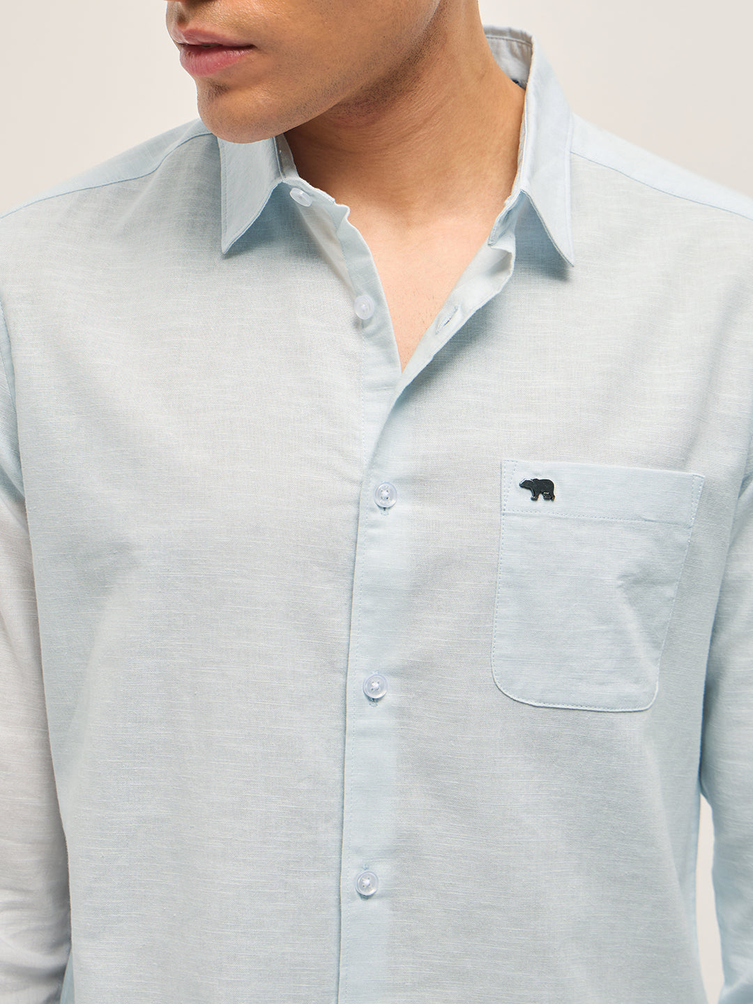 Light Blue Cotton Linen Slim Fit Solid Casual Shirt