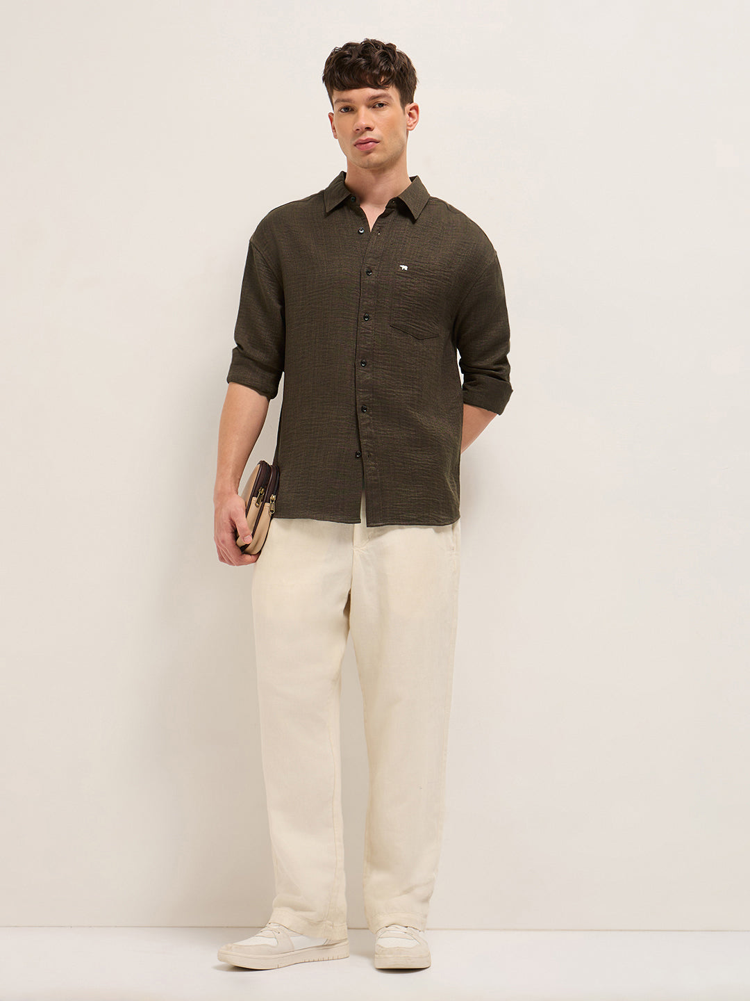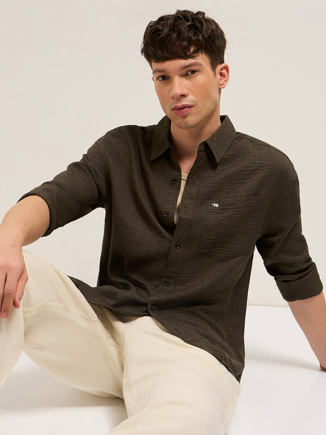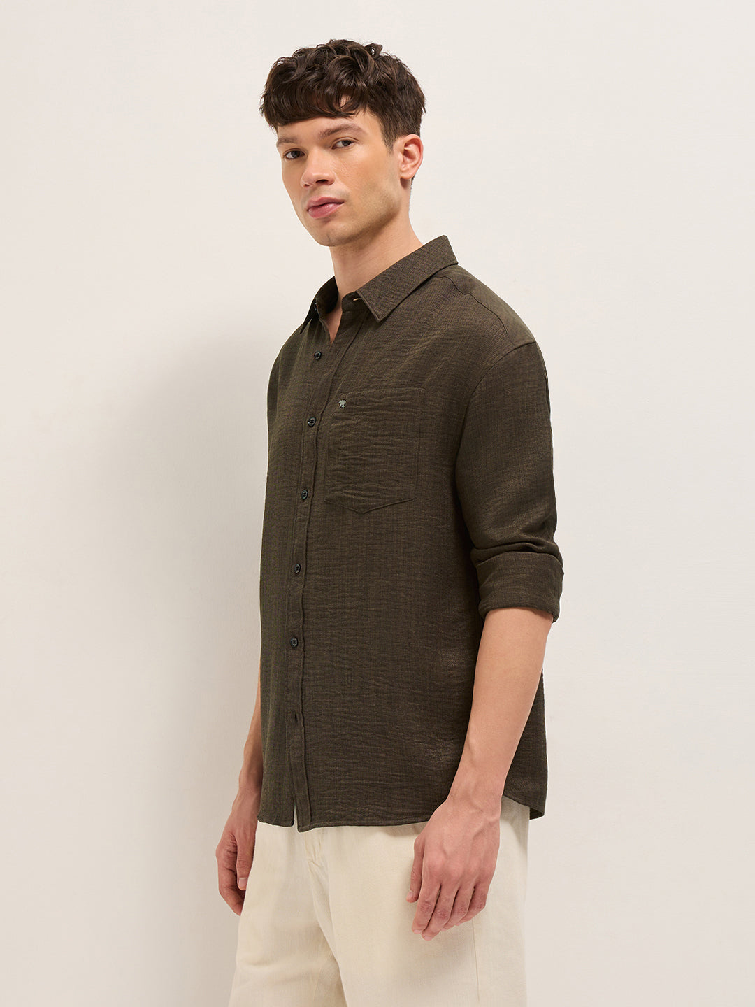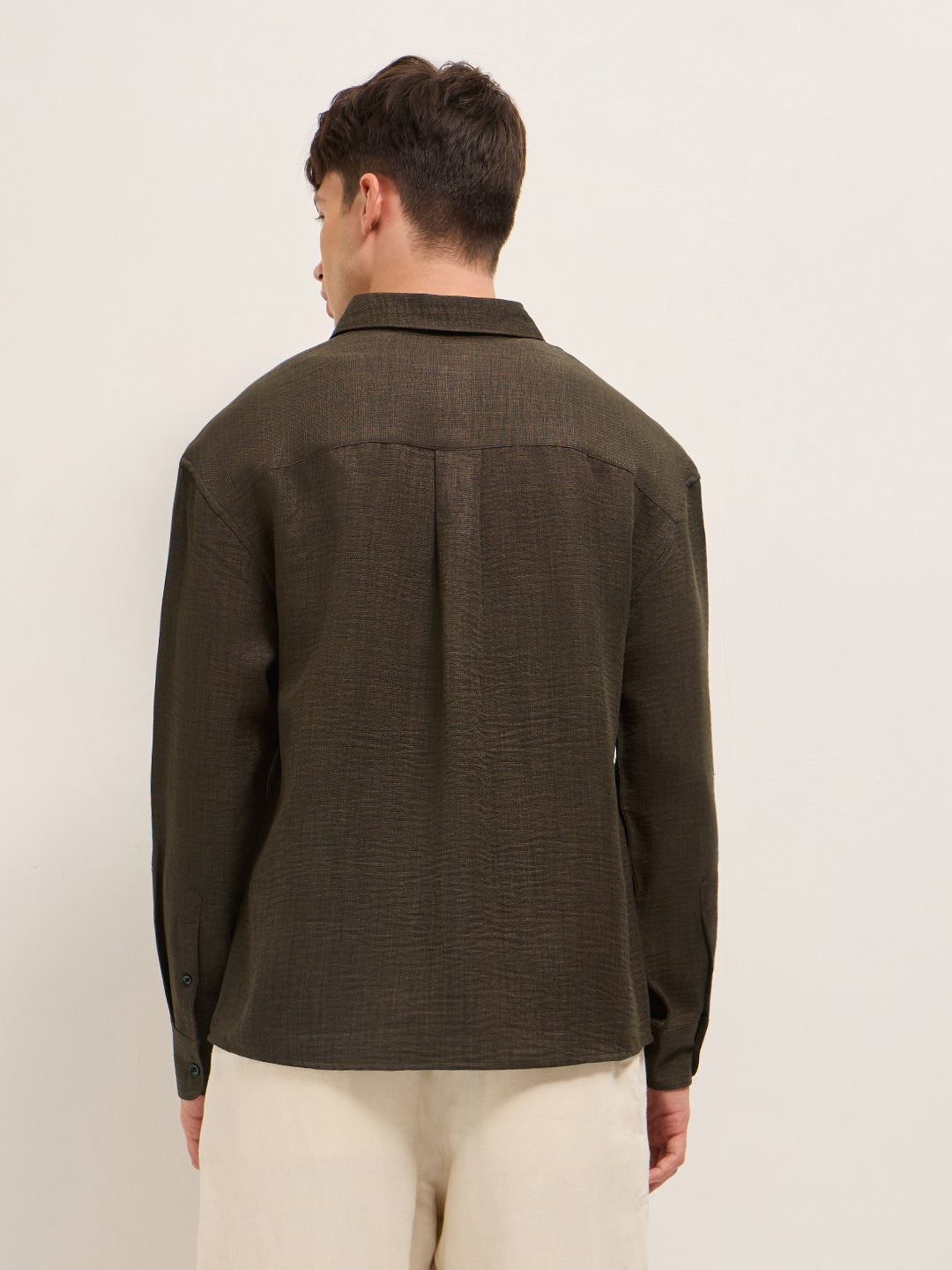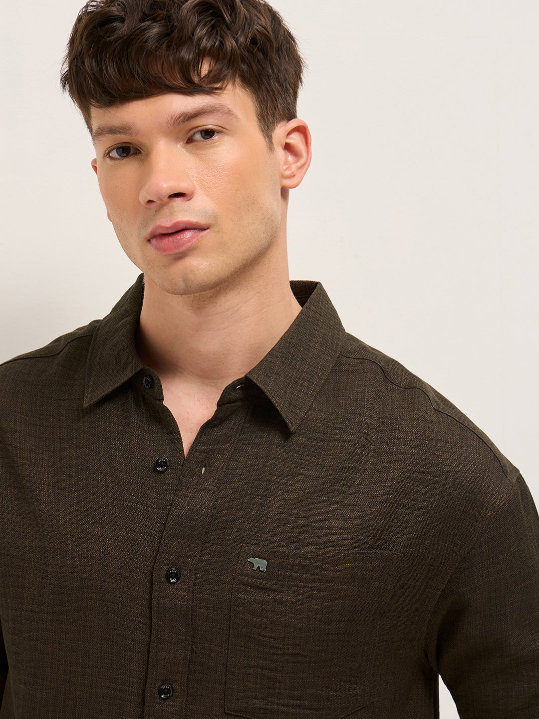 Brown Textured Relaxed Fit Casual Shirt