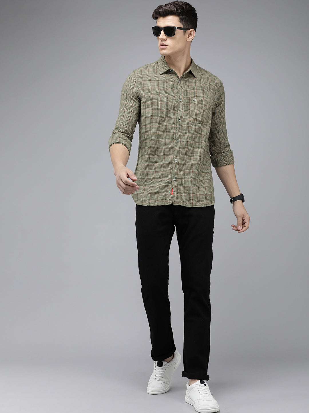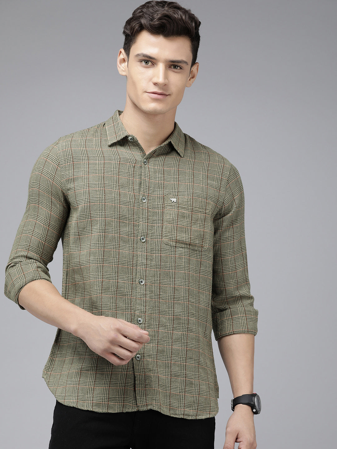 Shop Men Multi Checked Slim Fit Cotton Casual Shirt Online