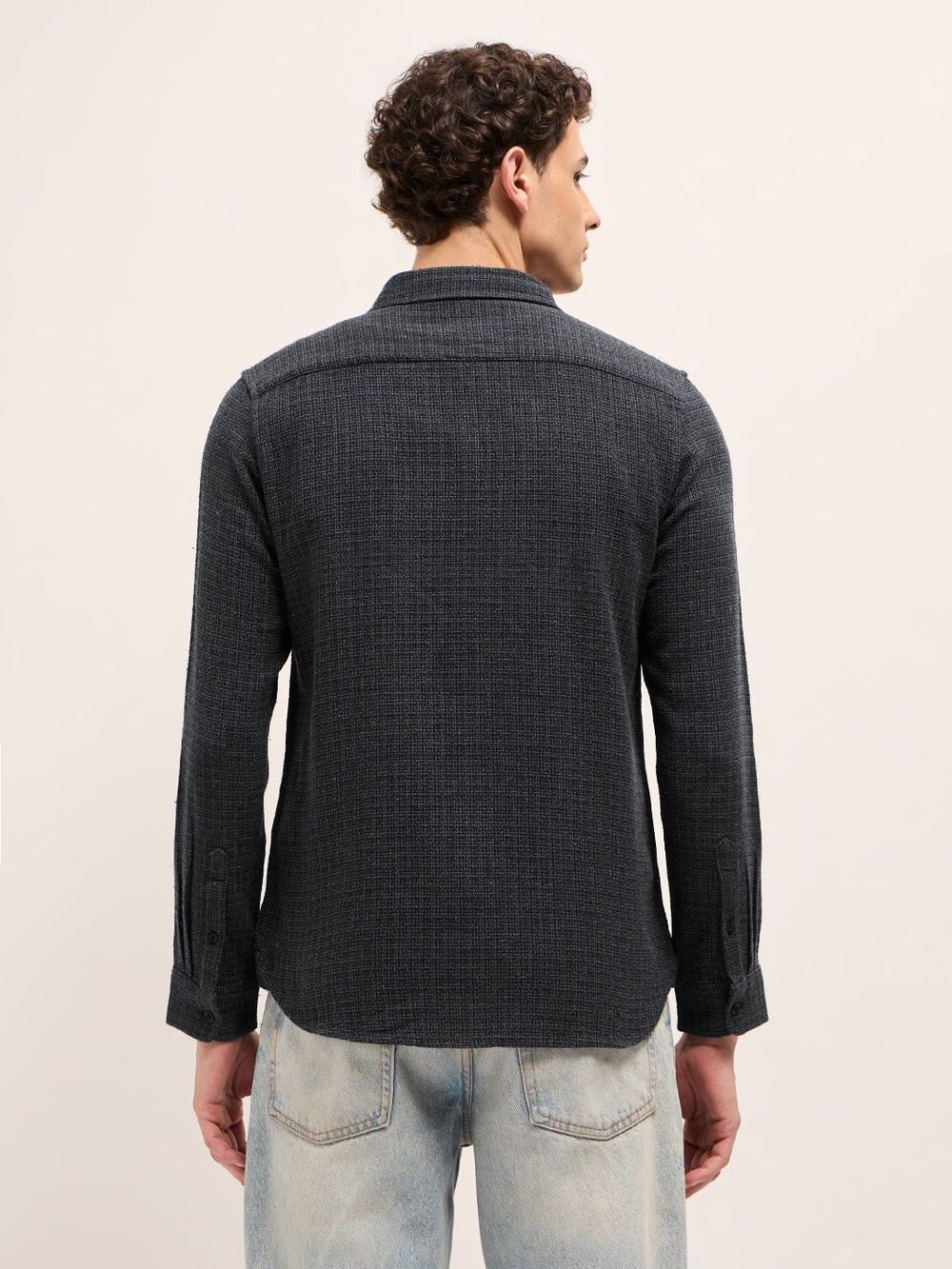 Grey Slim Fit Woven Textured Cotton Casual Shirt
